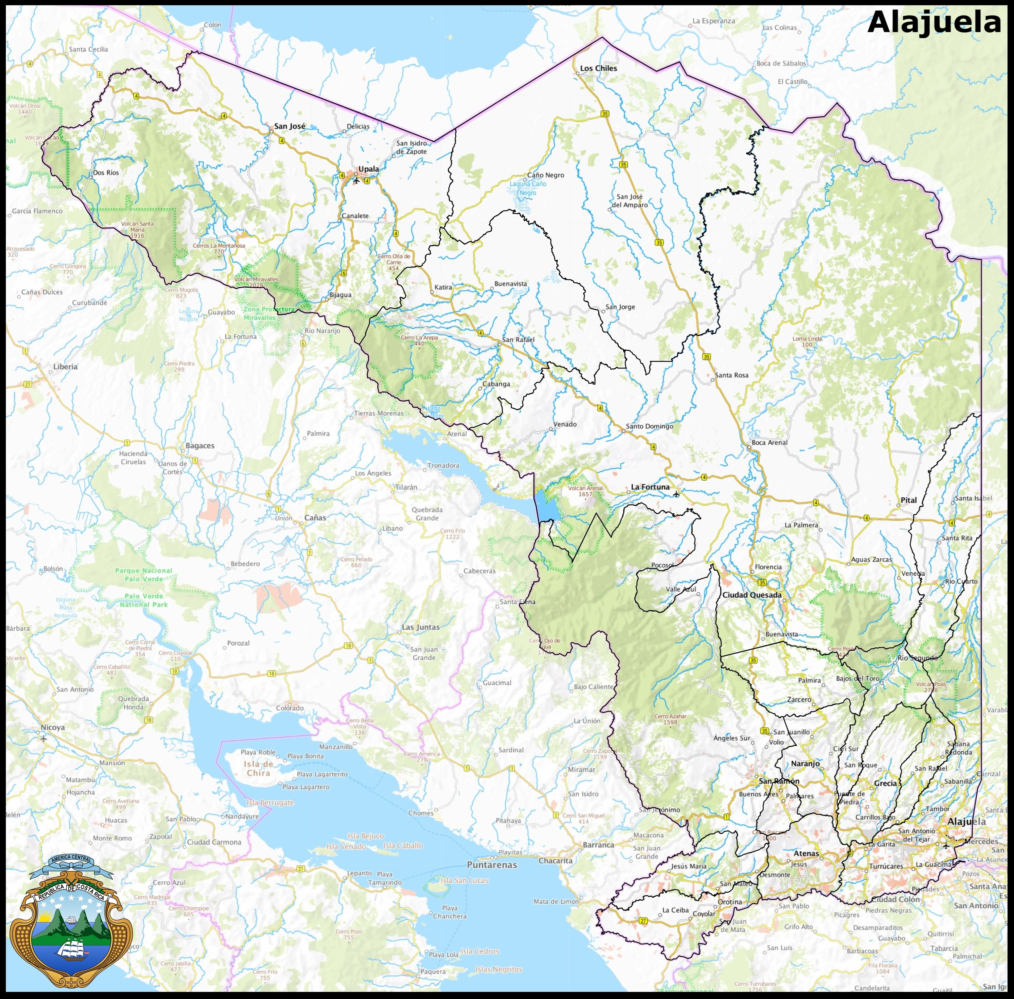 La Provincia de Alajuela con una superficie de 9.757,53 kilómetros cuadrados, es la provincia más extensa de Costa Rica y una de las más diversas en relieve, clima y ecosistemas.