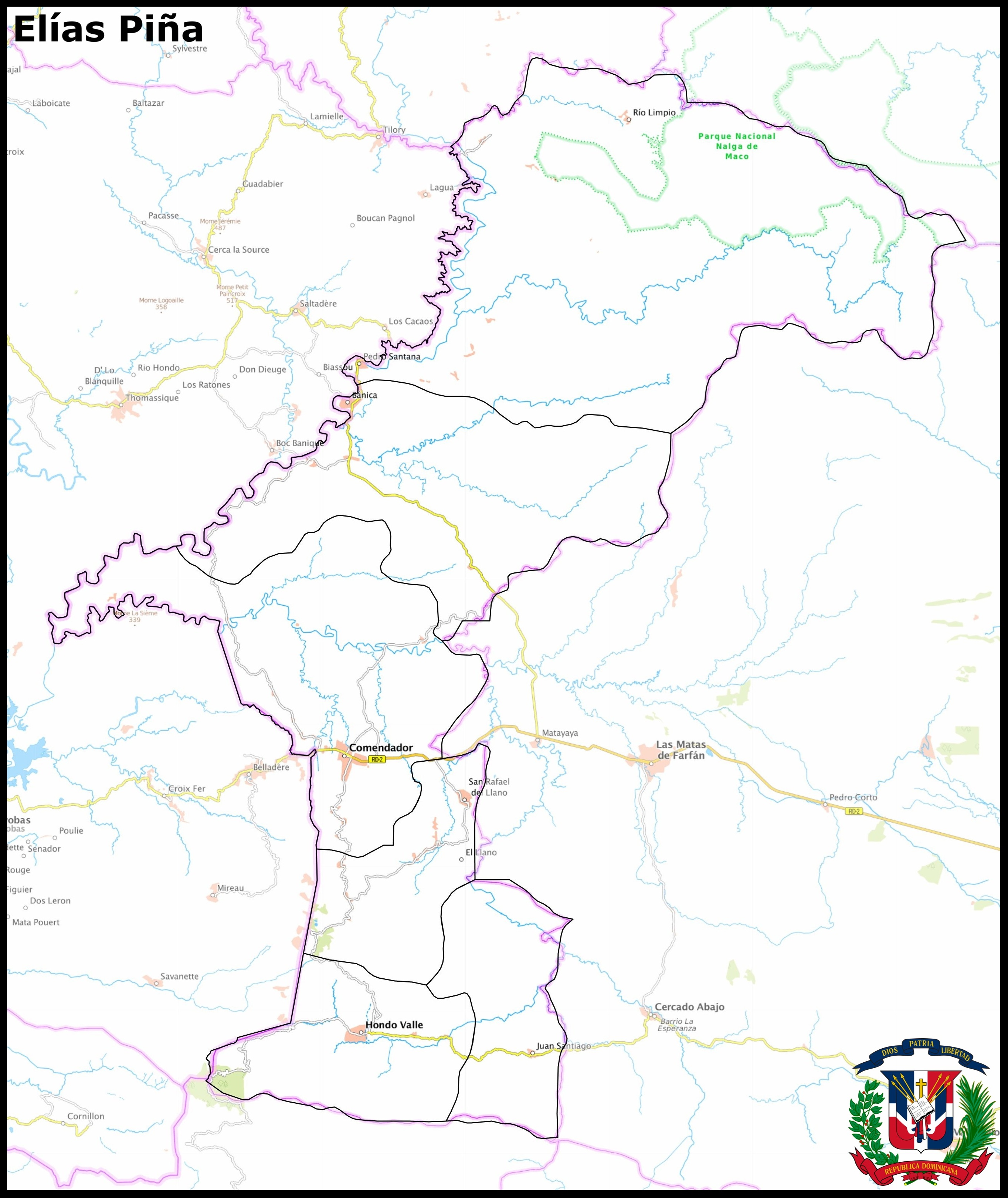 La provincia de ElÃas Piña está ubicada en el oeste de la República Dominicana, en la frontera con HaitÃ. Su capital es Comendador, y es una de las provincias más rurales del paÃs, con fuerte actividad agrÃcola y comercio fronterizo.
