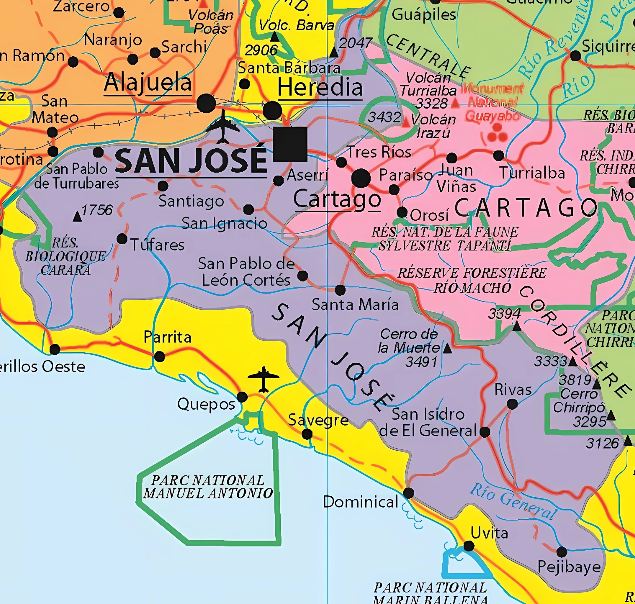 En el sur se encuentra parte de la Cordillera de Talamanca, donde se localizan zonas altas como el Cerro de la Muerte.