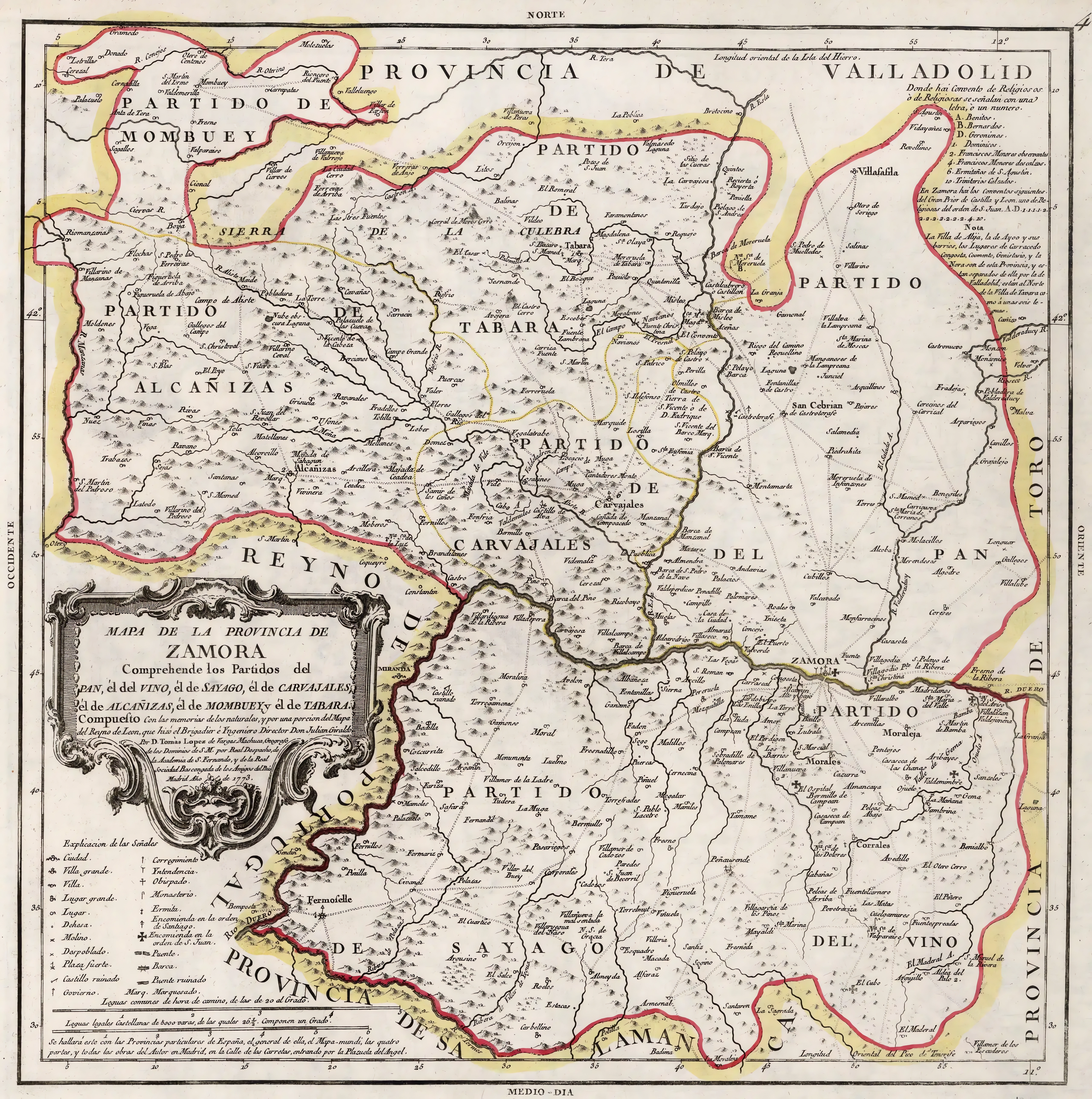 Mapa de la Provincia de Zamora (formato PDF) creado por el cartógrafo español Tomás López de Vargas Machuca en el año 1773 y publicado póstumamente por sus hijos dentro del “Atlas Geográfico de España” de 1804. El mapa representa la Provincia de Zamora con los límites territoriales antes de la reforma de la administración provincial de Javier de Burgos en 1833.