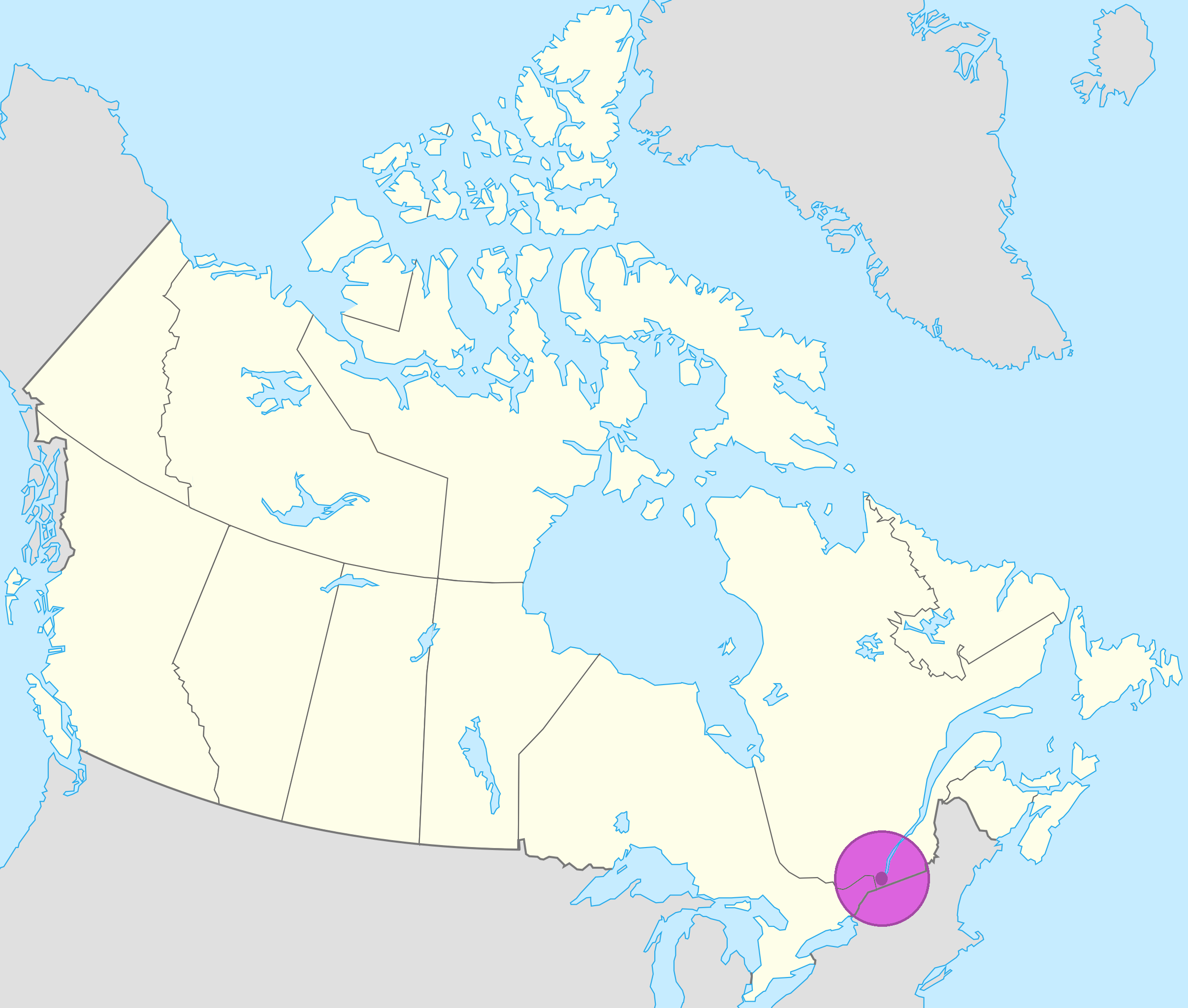 Ubicación geográfica: en una isla formada por la confluencia de los ríos San Lorenzo y Ottawa.