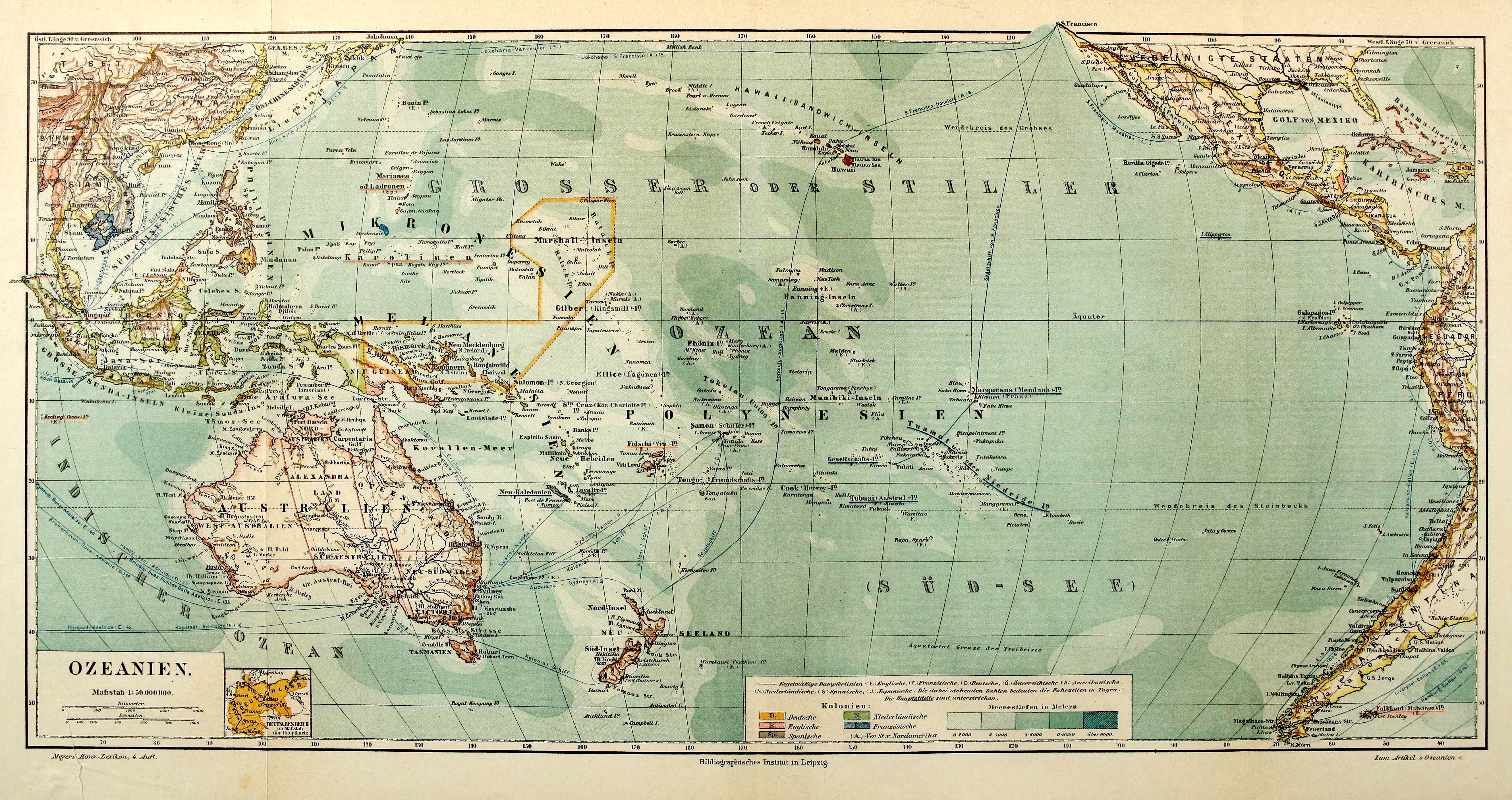 Australia abarca la mayor parte de su superficie terrestre y población, mientras que el resto de Oceanía es un conjunto de 25.000 islas; el territorio continental de Australia a veces se considera una masa continental en sí mismo. Las dos islas más grandes de Nueva Zelanda (la Isla Norte y la Isla Sur) y Nueva Guinea son las otras islas principales de Oceanía. Los territorios que componen el resto del continente son estados insulares (Islas Salomón, Fiyi, Vanuatu, Samoa, etc.) o territorios anexados a antiguas potencias coloniales, como Francia (Polinesia Francesa, Nueva Caledonia, Wallis y Futuna), Estados Unidos (Hawái, Guam, Islas Marianas del Norte, Samoa Americana) o el Reino Unido (Islas Pitcairn).