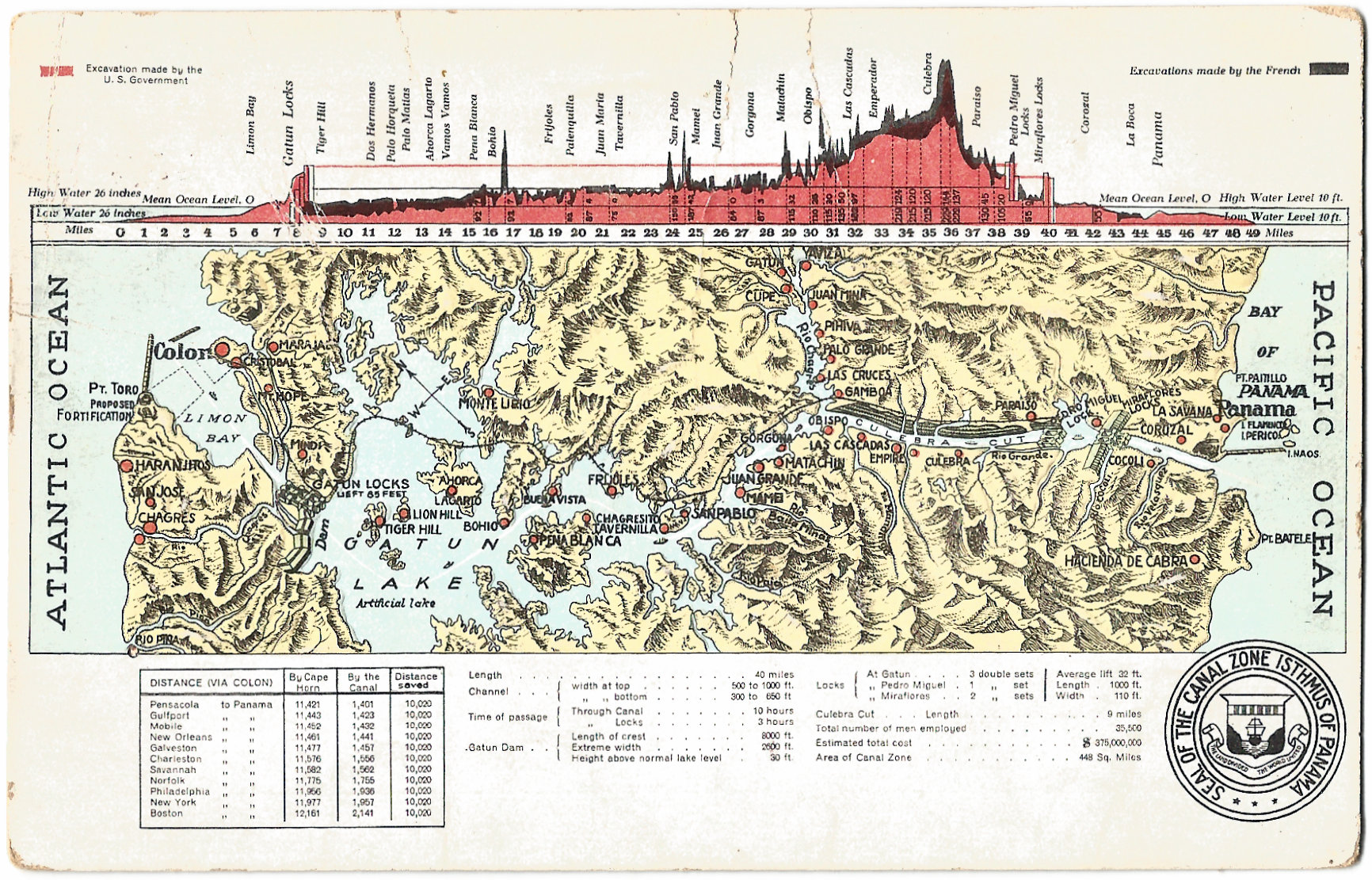 El canal utiliza un sistema de esclusas para elevar los barcos hasta un lago artificial y luego bajarlos al otro océano.