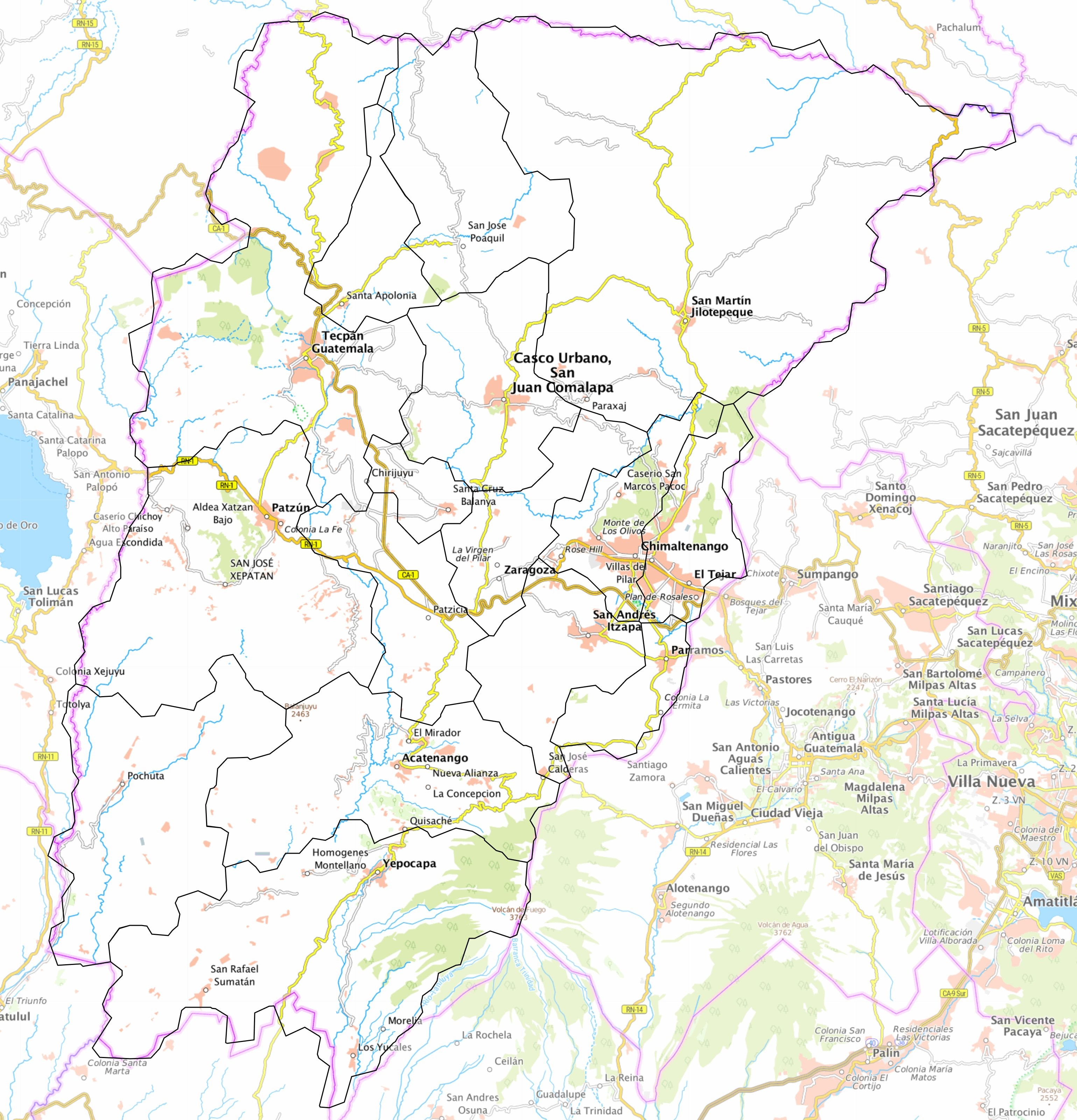 Además de la ciudad de Chimaltenango, el departamento alberga los pueblos de Santa Apolonia (conocida por su cerámica), San Juan Comalapa y Patzún (conocido por sus elaboradas celebraciones del Corpus Christi en junio). Chimaltenango también alberga las ruinas de la civilización maya de Iximché y Mixco Viejo, además de muchos sitios más pequeños.