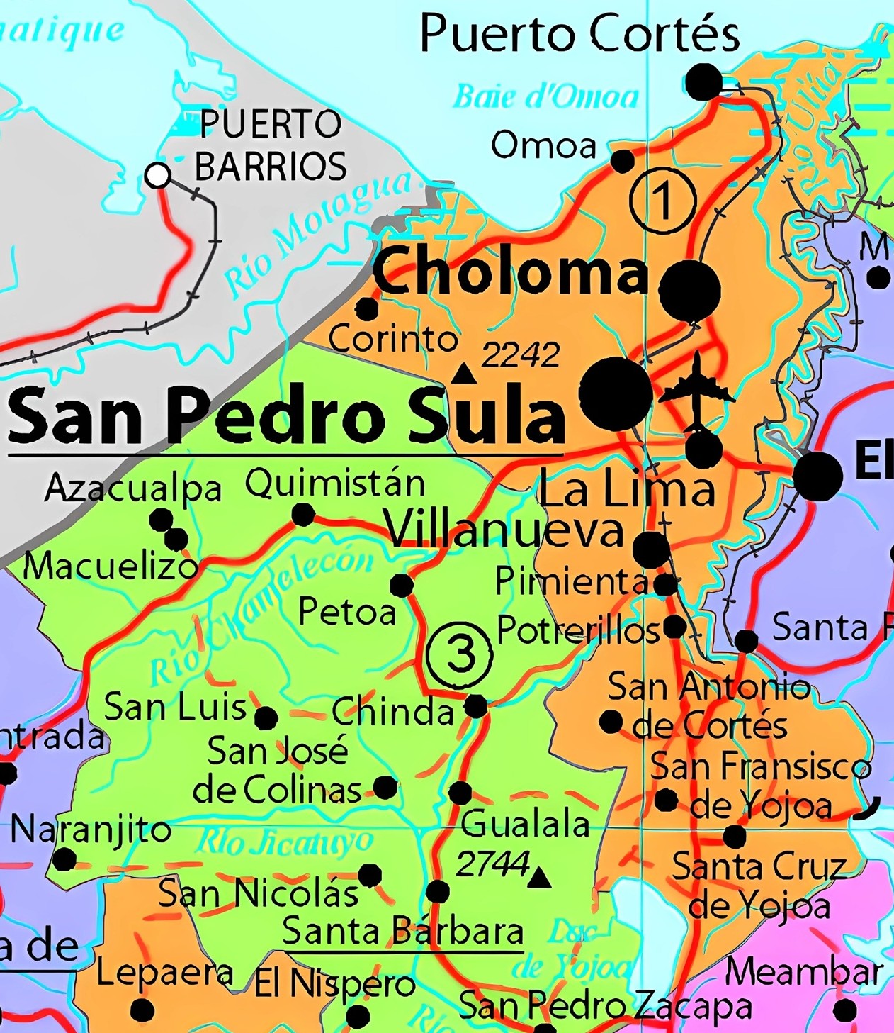 Importantes ríos: Ulúa y Chamelecón.