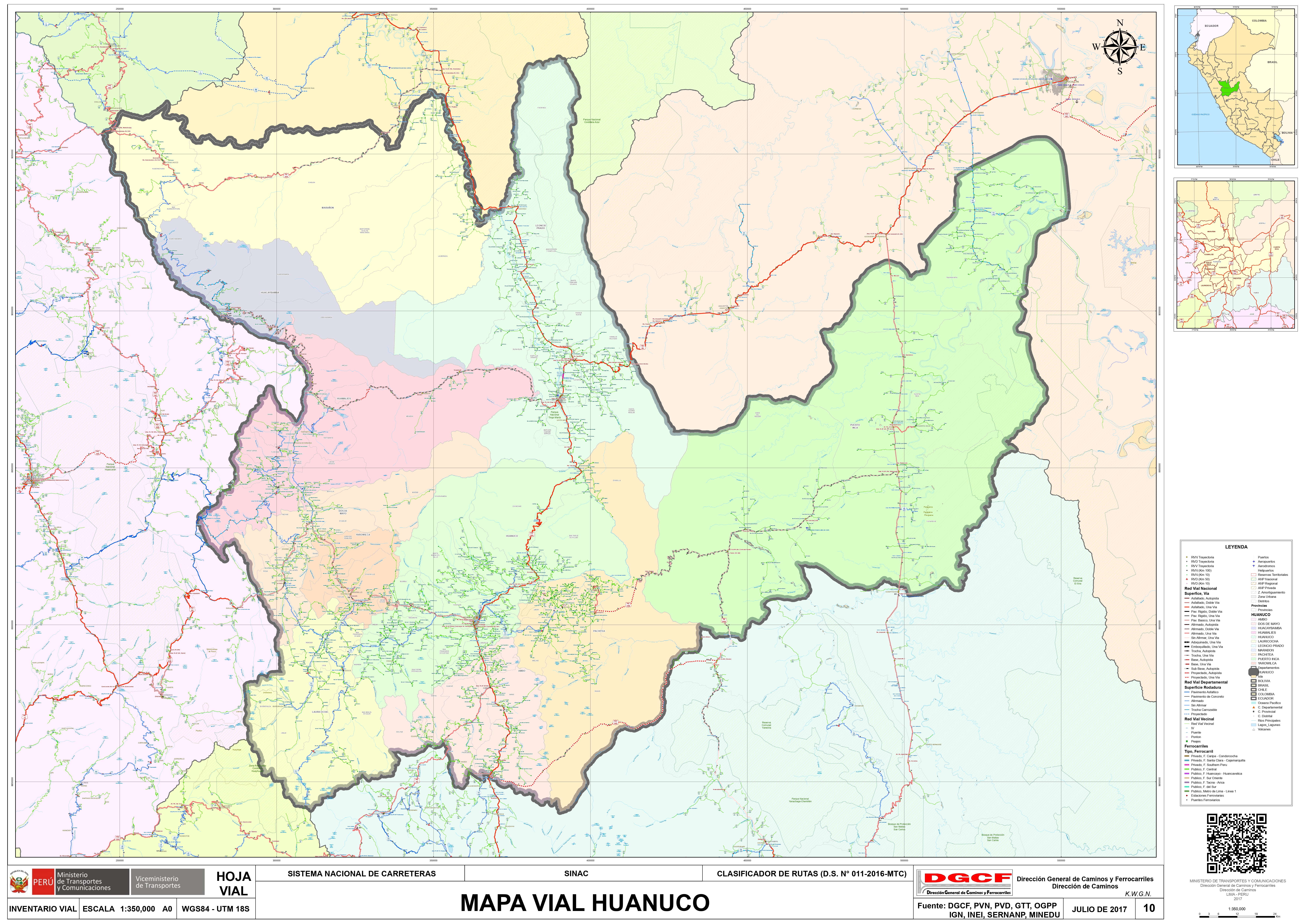 De la red de carreteras sin pavimento en Huánuco (6 866 km.), el 83 por ciento corresponde a la red vecinal, el 11 por ciento a la red departamental y el 6 por ciento restante a la red nacional.