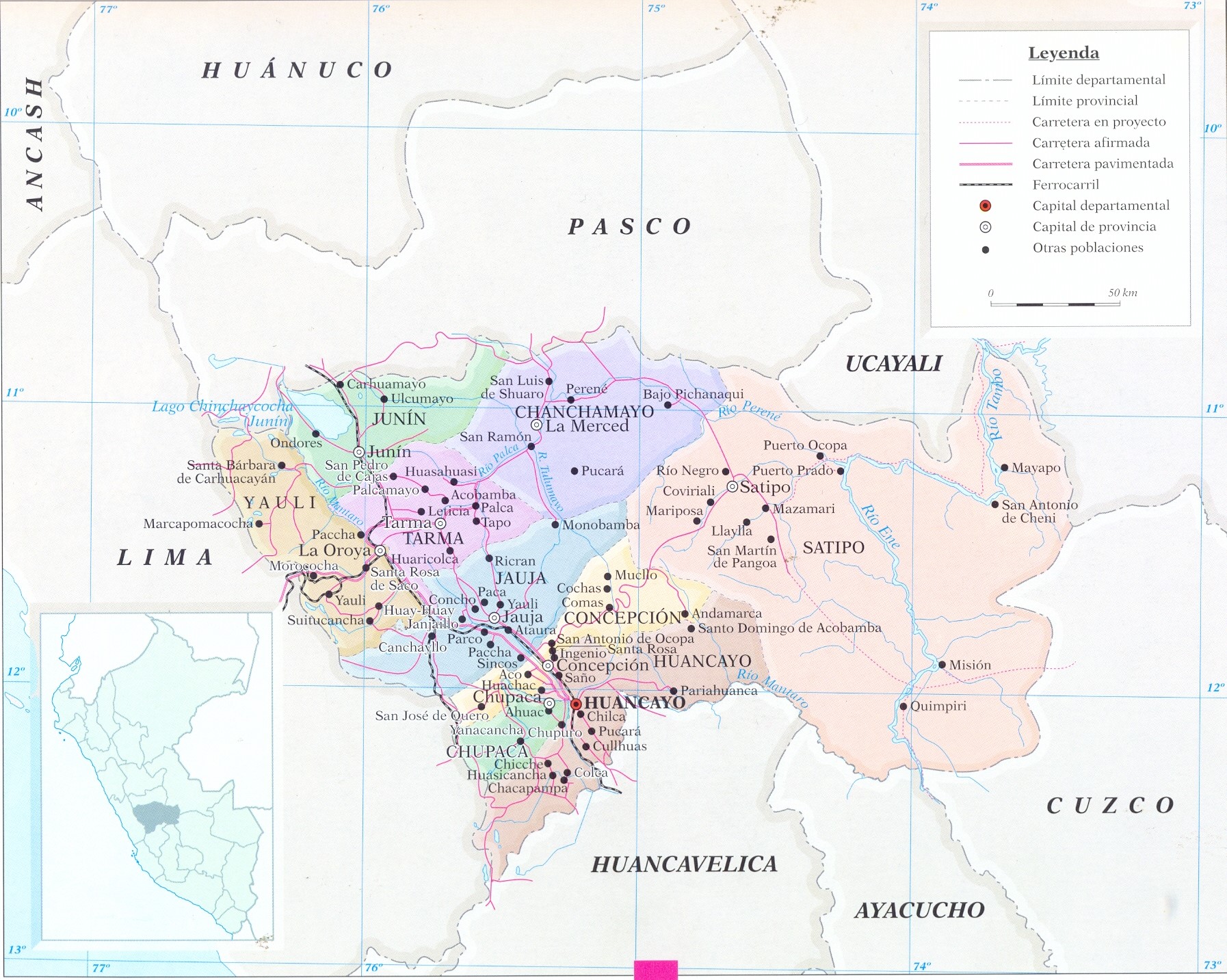 hacia el norte, a pocos kilómetros de La Oroya se encuentra una división, llamado “Las Vegas”, de donde parte la principal carretera que conecta a la Selva Central (provincias de Chanchamayo y Satipo – Junín, y Oxapampa – Pasco) con el centro del país y Lima. Debido a estas características, Junín se convierte en importante punto de paso, al unir diversas zonas de la región centro con Lima.
