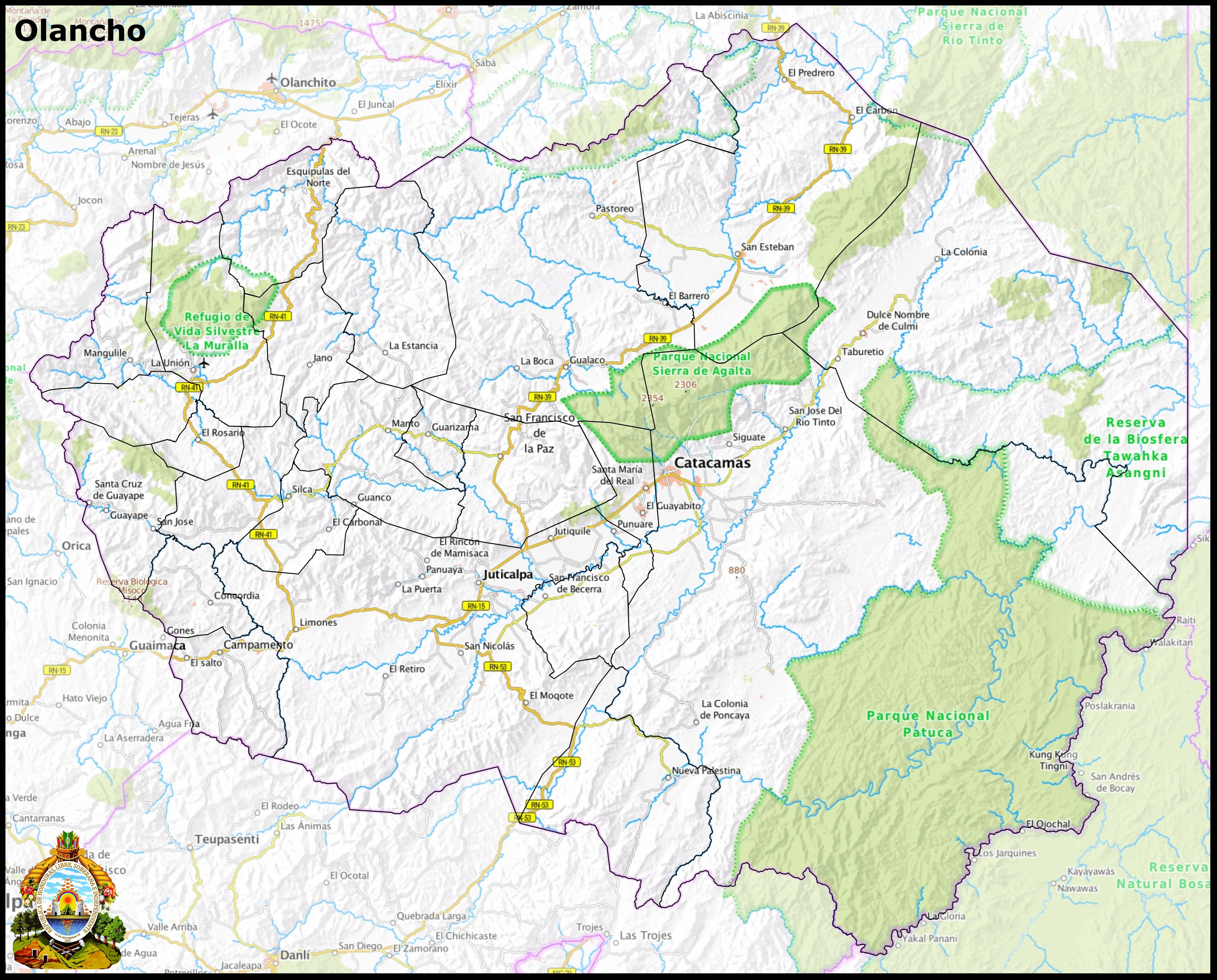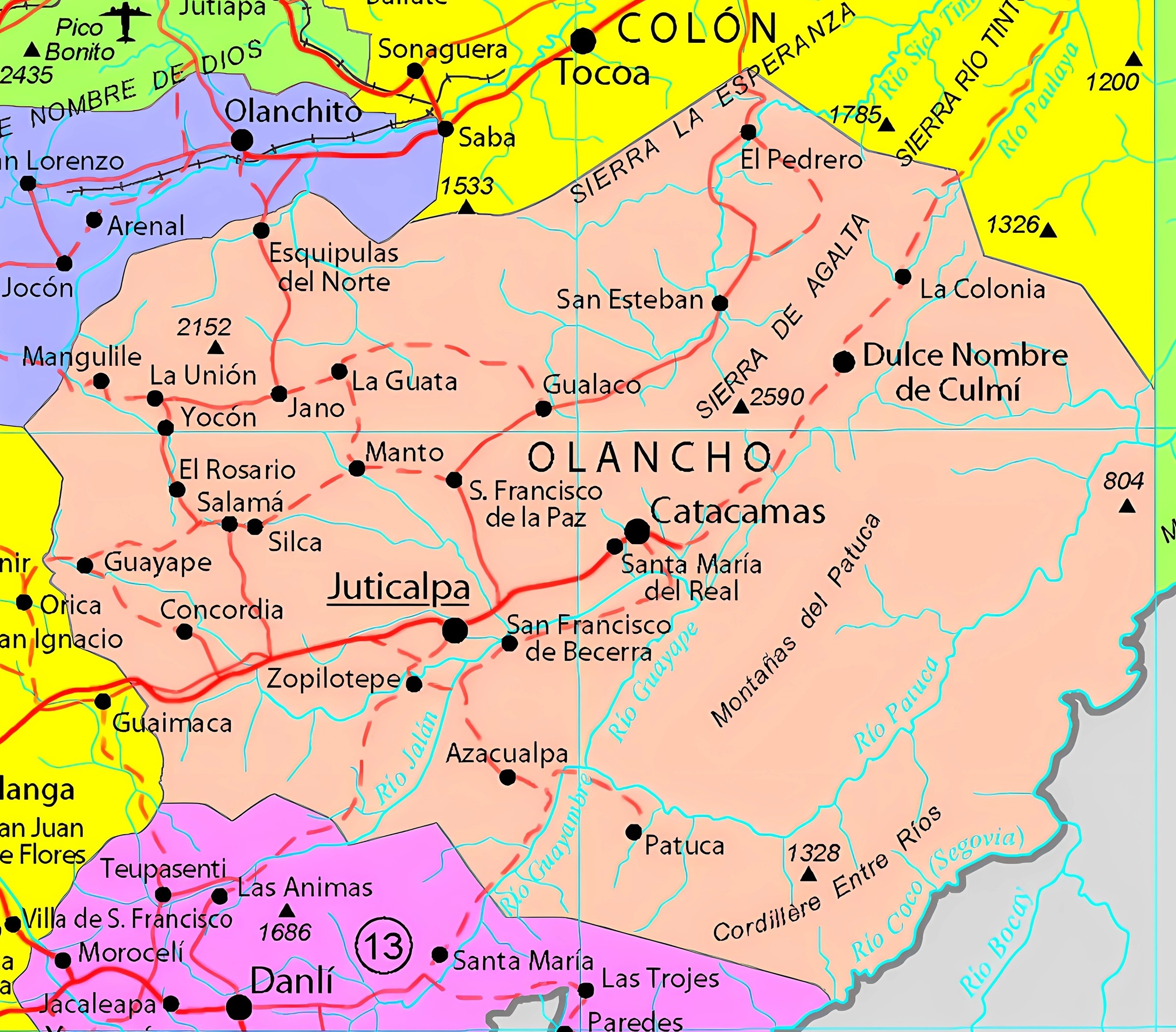 Limita con Yoro, Colón, Gracias a Dios, El Paraíso y Francisco Morazán