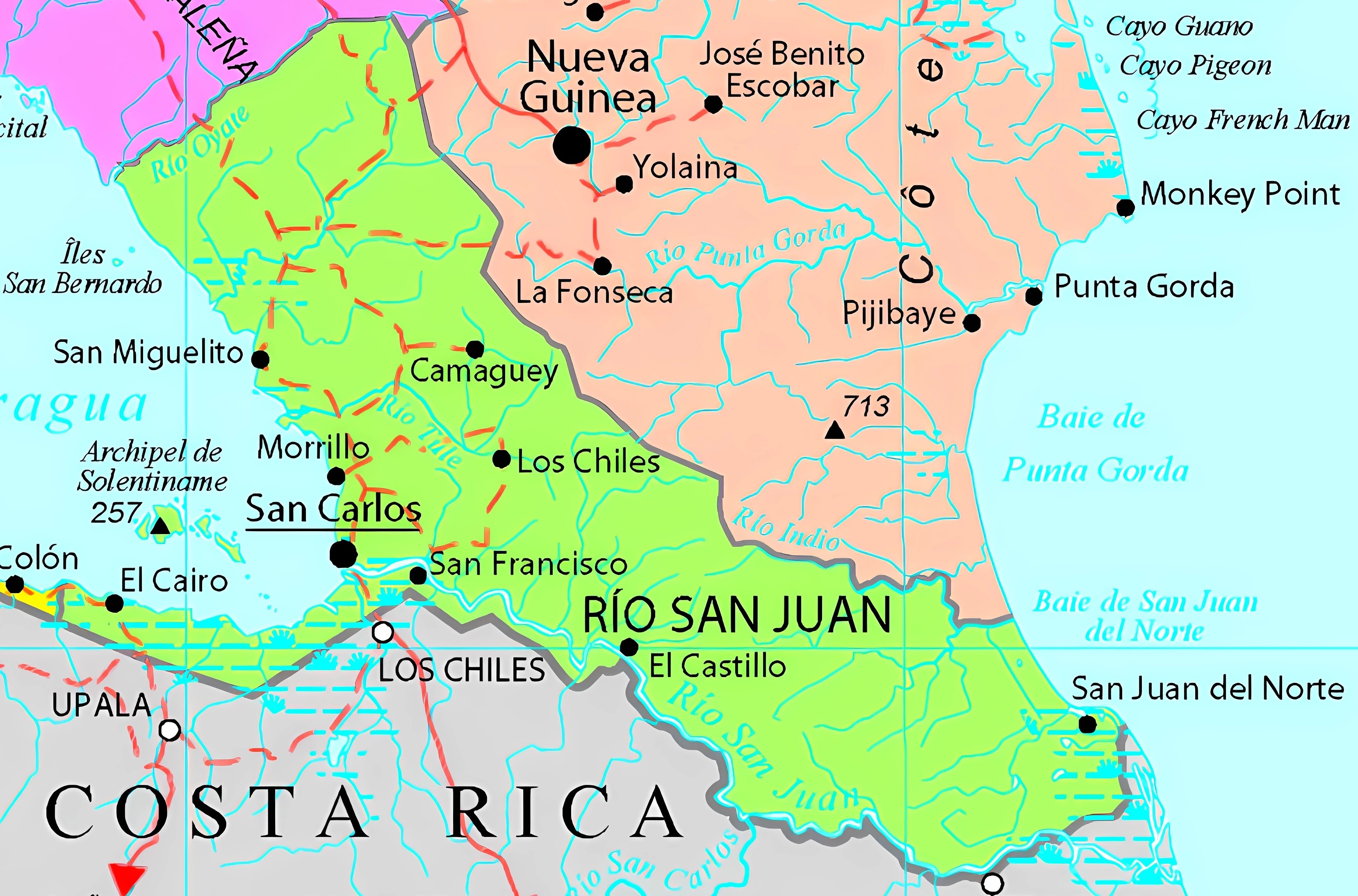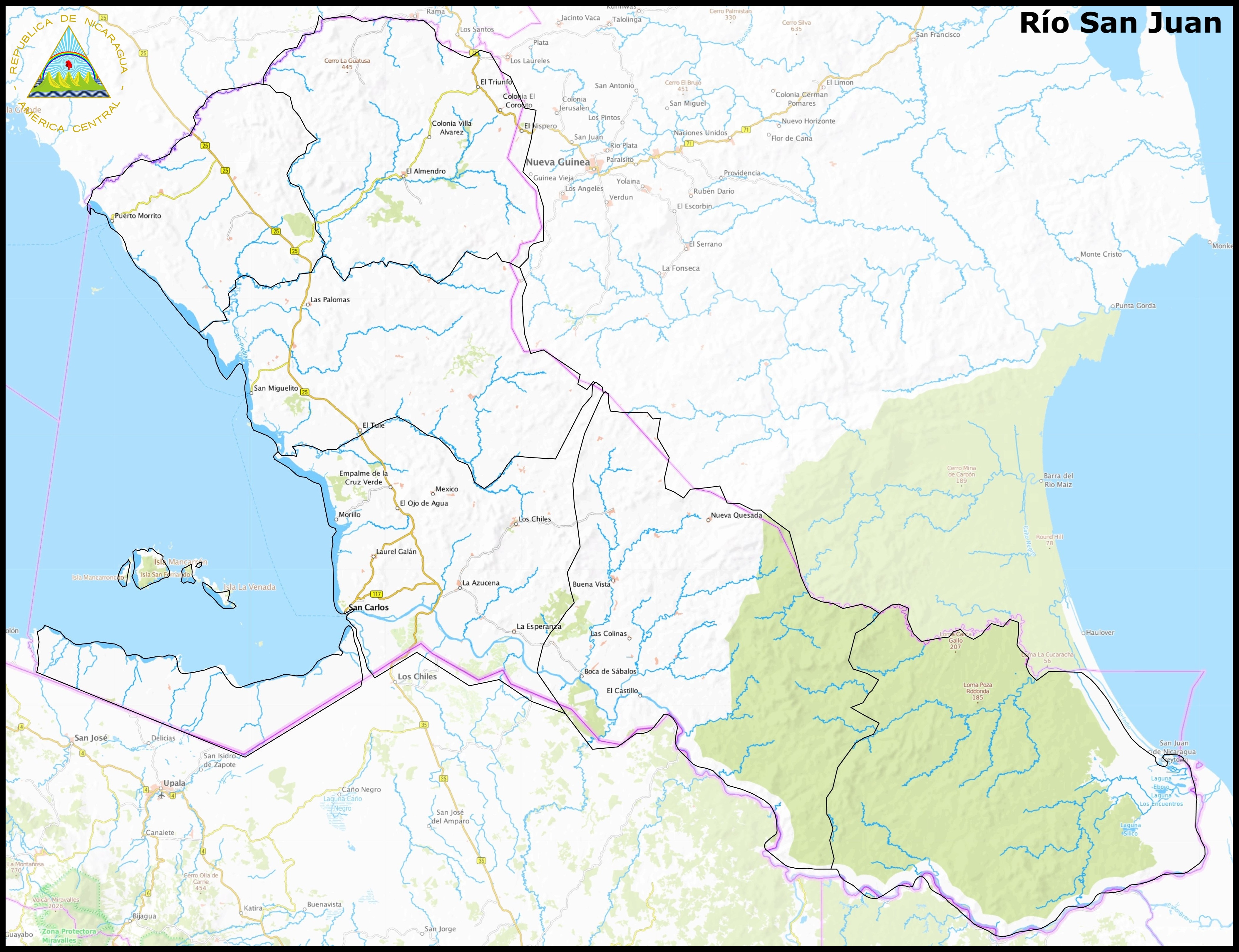 El Departamento de Río San Juan se ubica en el extremo sureste de Nicaragua, en la frontera con Costa Rica. Es una región de gran riqueza natural y estratégica por su conexión entre el Lago de Nicaragua y el mar Caribe.