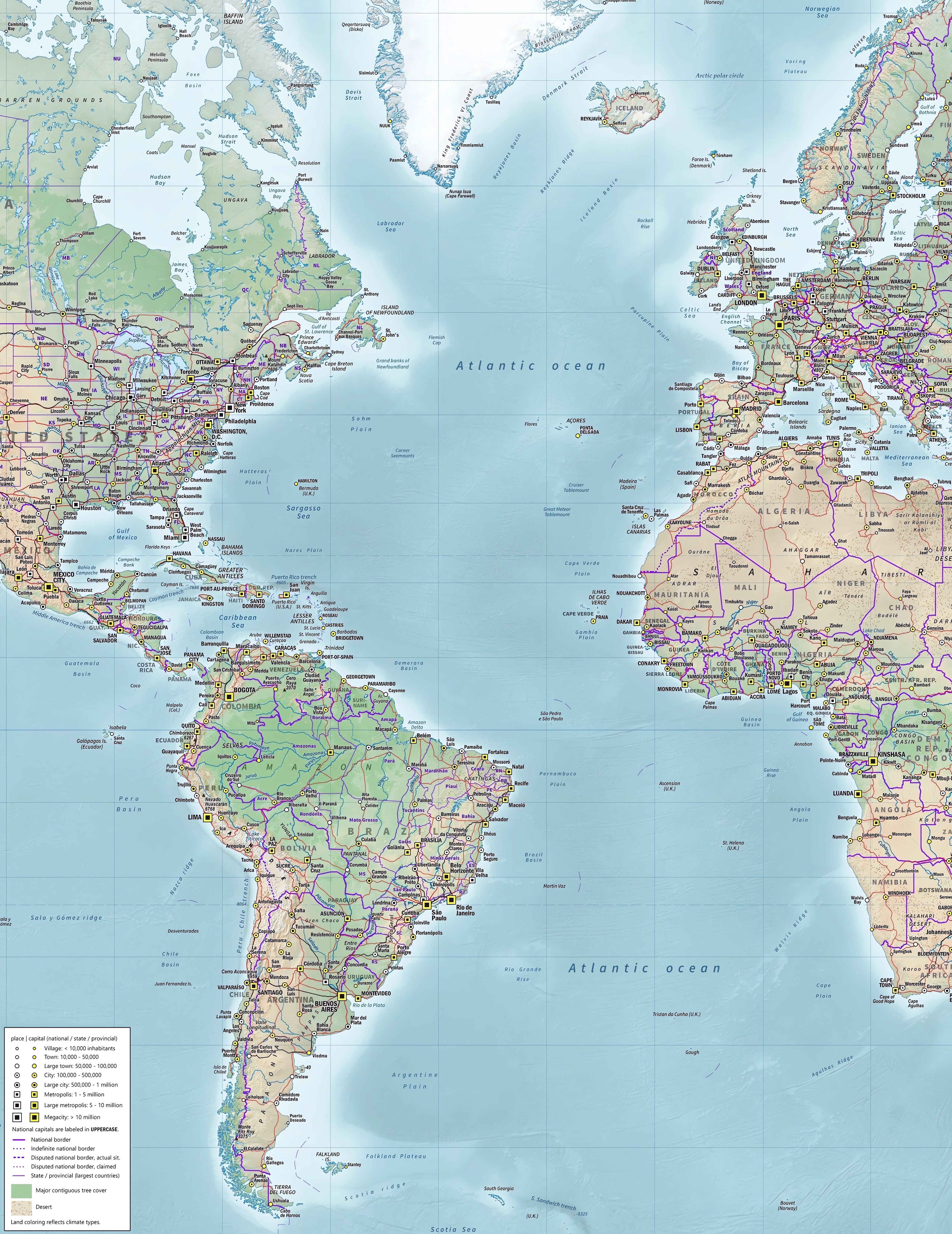 Mapa mundial con las principales ciudades (formato PDF). Principales ciud...
