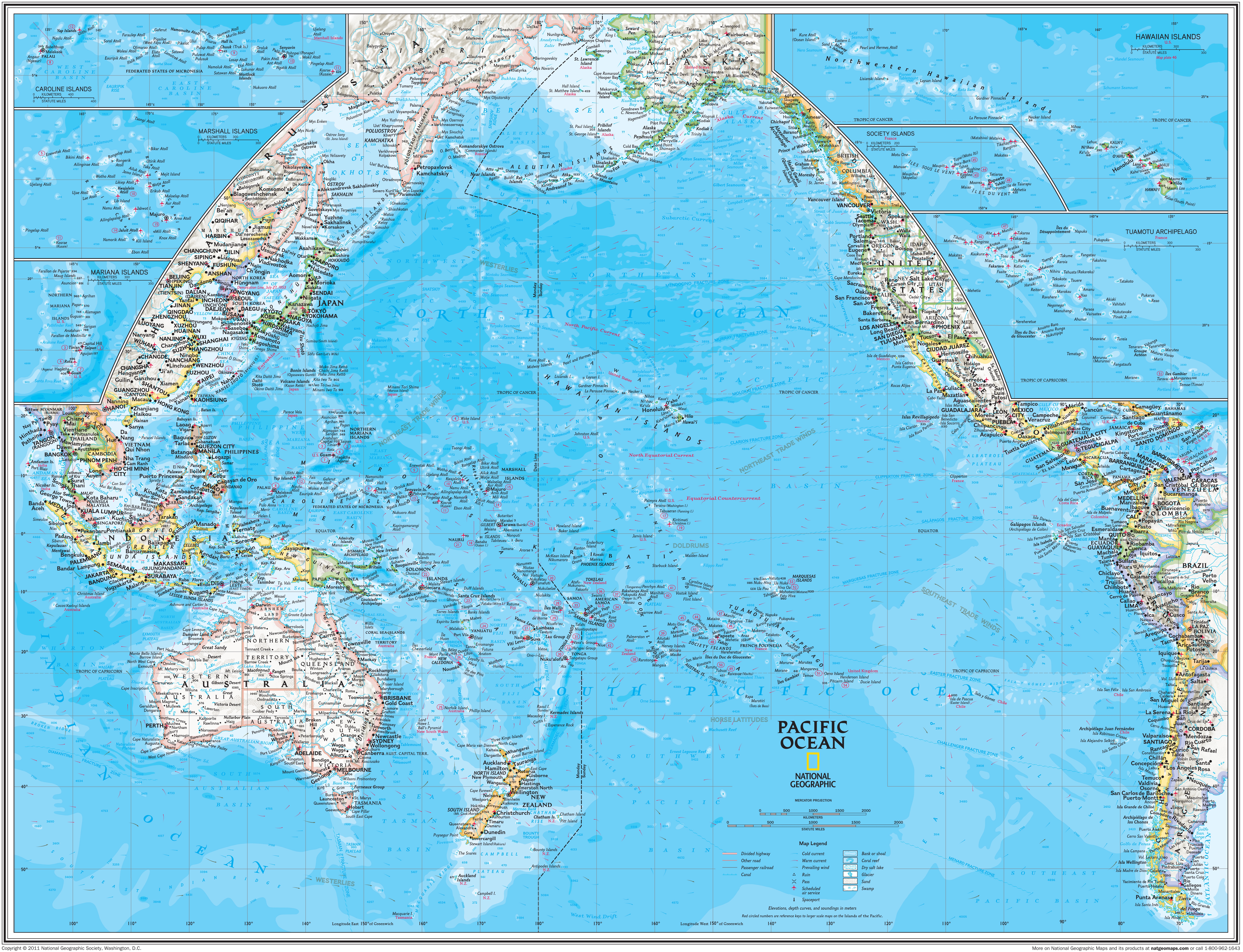 Mapa de los océanos del mundo (formato PDF). El relieve se muestra mediante sombreado. Las ...