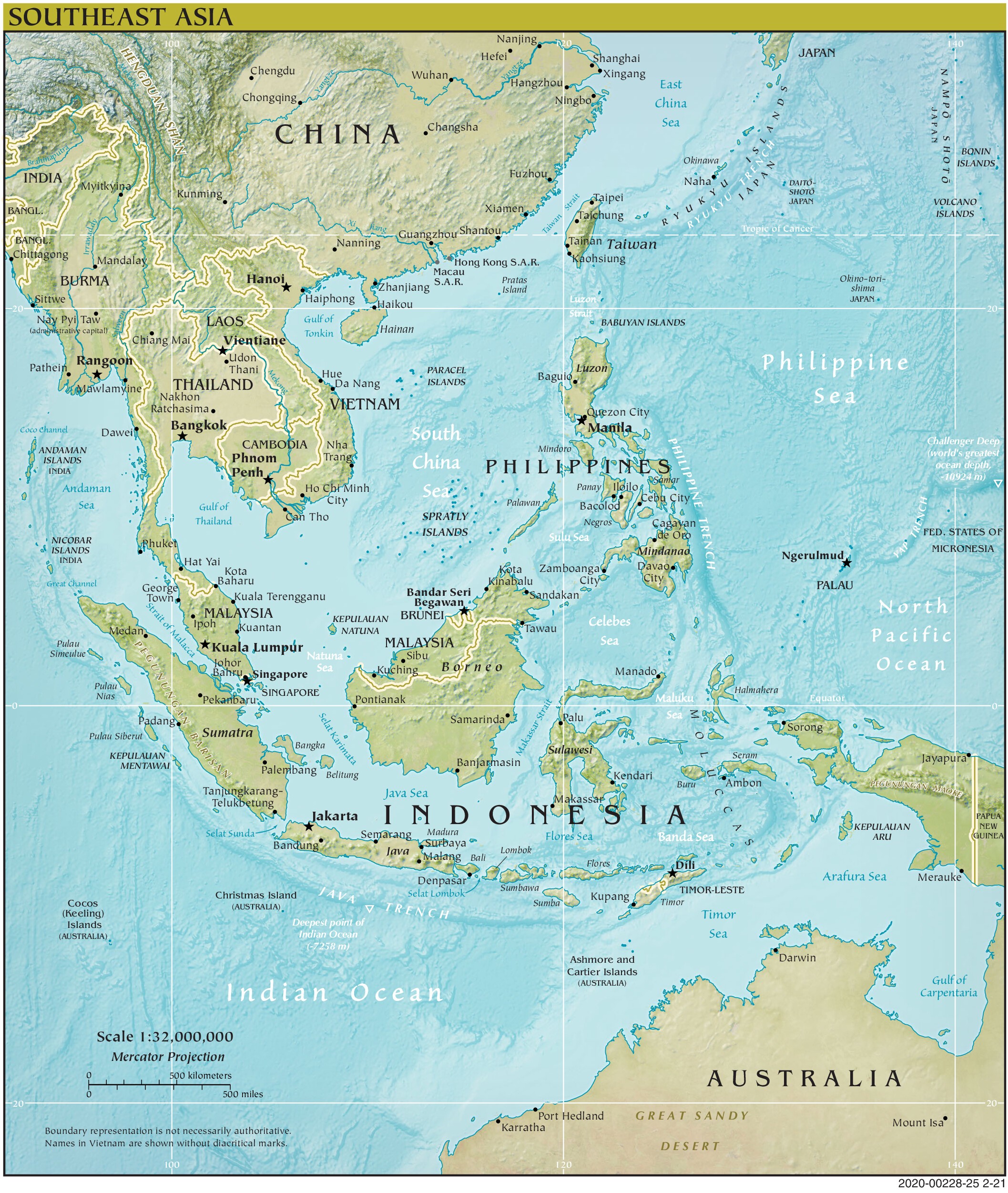 Mapa del Sudeste Asiático (formato PDF) que muestra las principales ciudades.