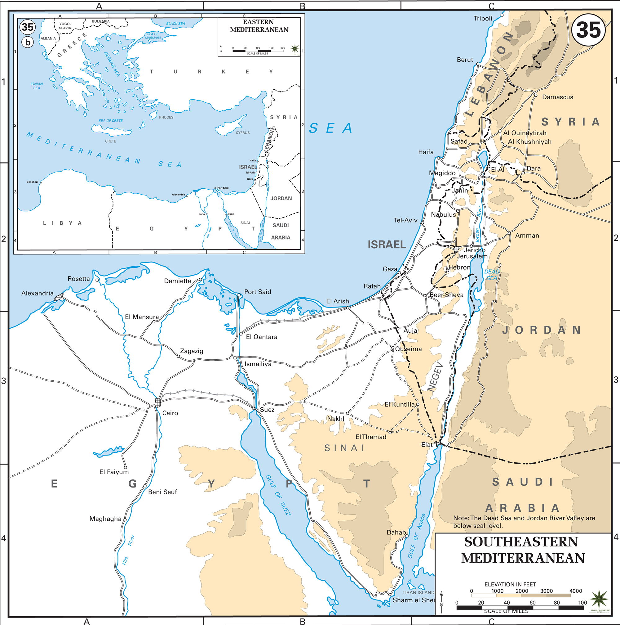 Región de transición entre el Mediterráneo, el mar Rojo y el Medio Oriente.