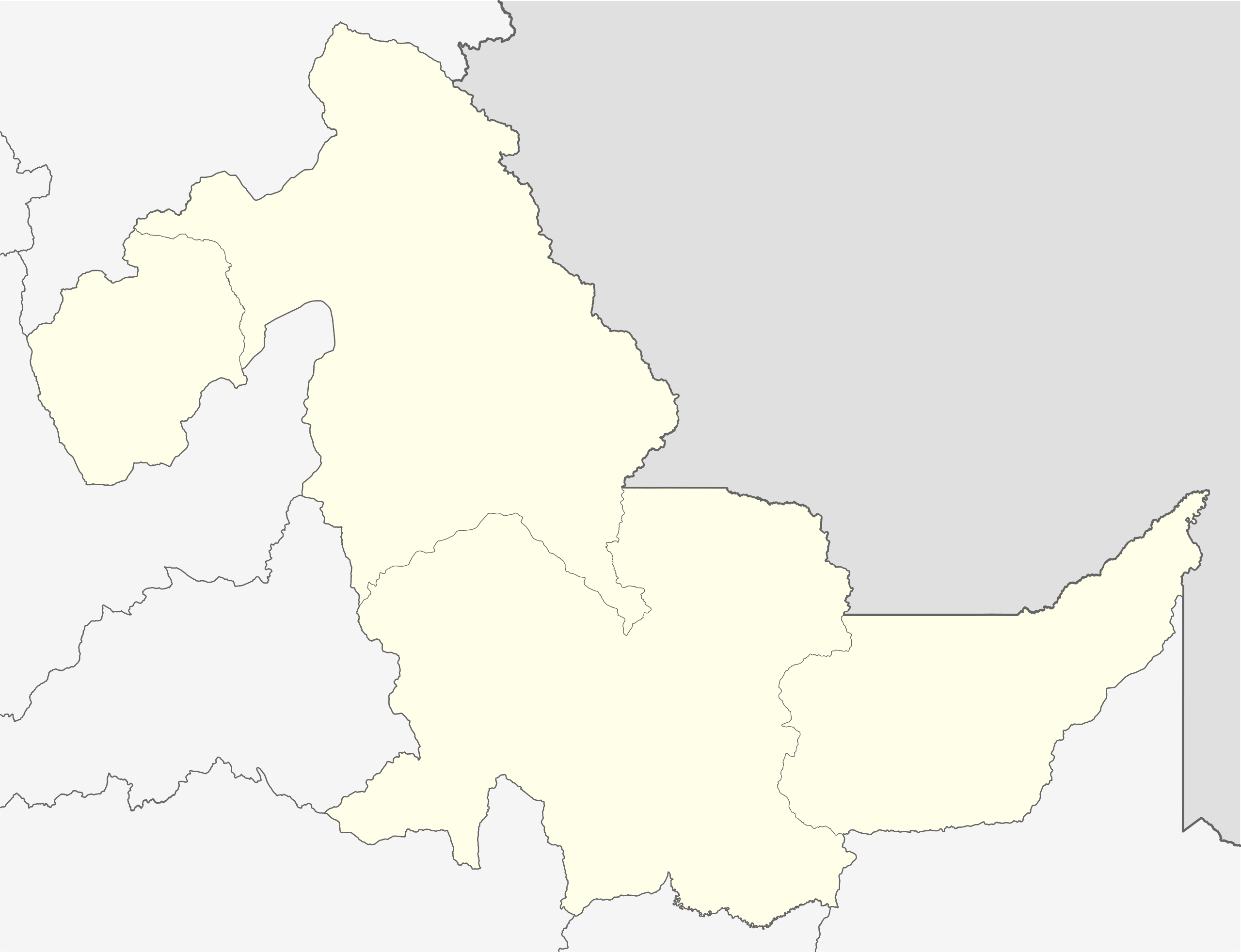 Este mapa mudo del departamento peruano de Ucayali muestra la cartografía del departamento, pero sin ningún tipo de etiquetado. Estos mapas en blanco se pueden utilizar, por ejemplo, en el campo de la educación. Puede servir como base para muchos mapas más elaborados. Estos modelos de mapas son más didácticos y educativos para los niños, son el instrumento perfecto para aprender geografía. Este mapa sin nombre: requiere que geolocalice provincias, distritos, ciudades, pueblos, puntos de referencia, montañas, cuerpos de agua, etc… y luego los identifique.