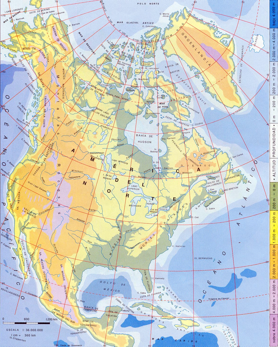 Otros documentos de interés geográfico : « Mapa físico de América del Norte »