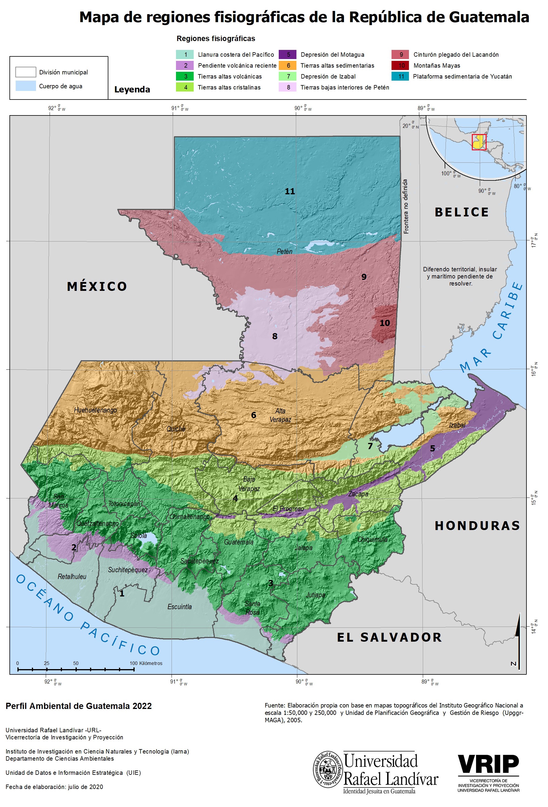 Guatemala se divide en tres grandes regiones físicas: