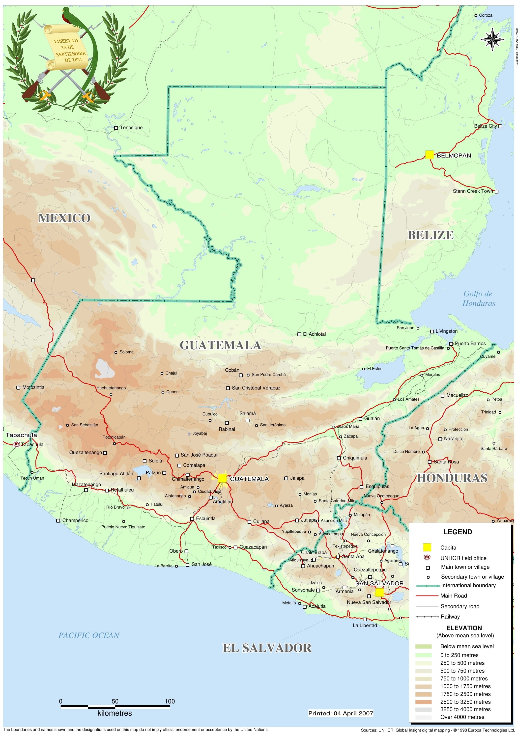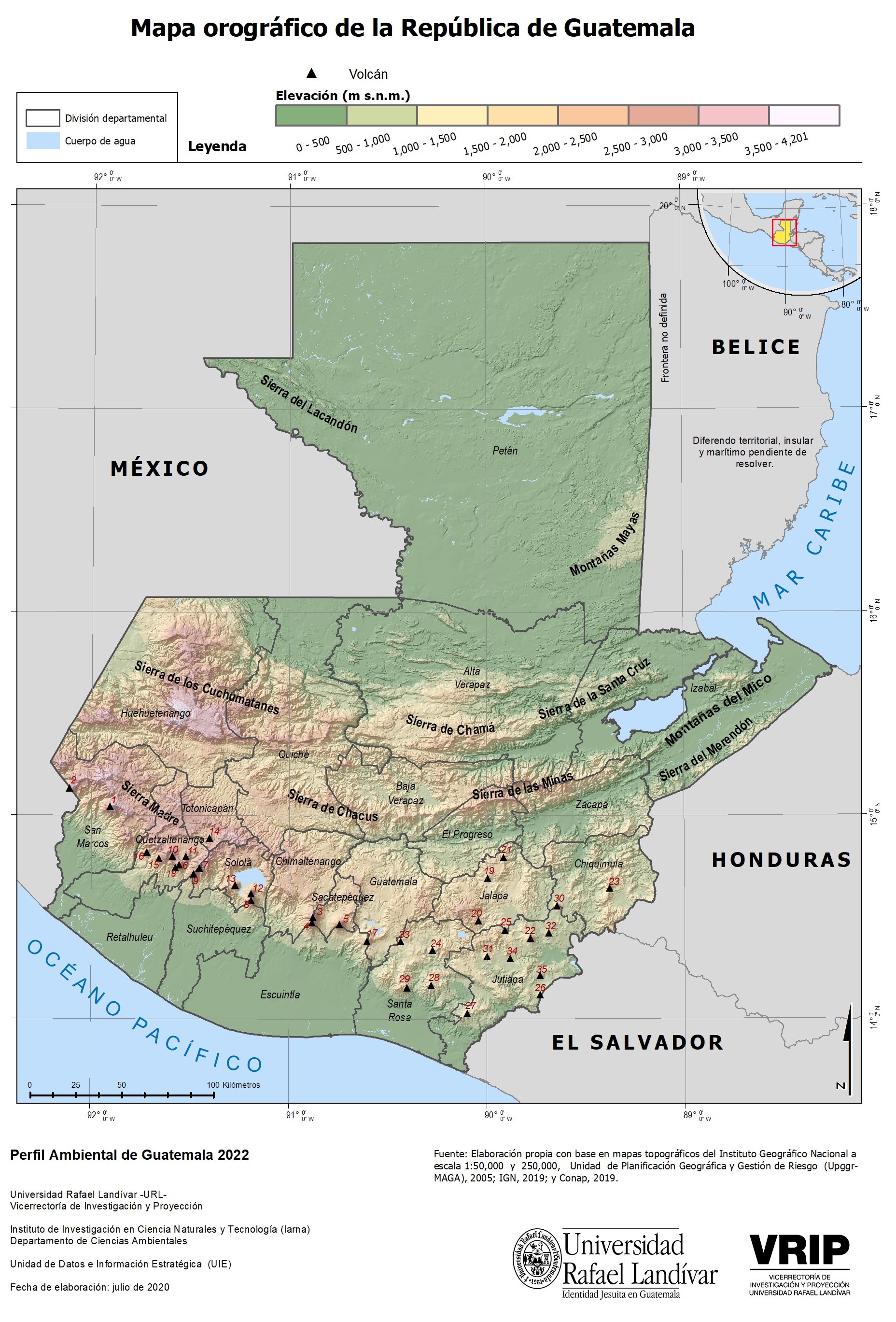 Otros documentos de interés geográfico : « Mapa físico de Guatemala »