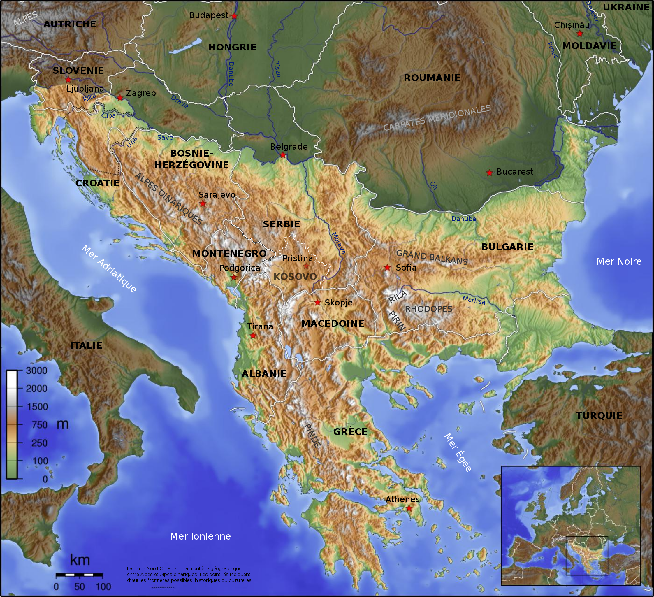 Otros documentos de interés geográfico : « Mapa físico de la península balcánica »