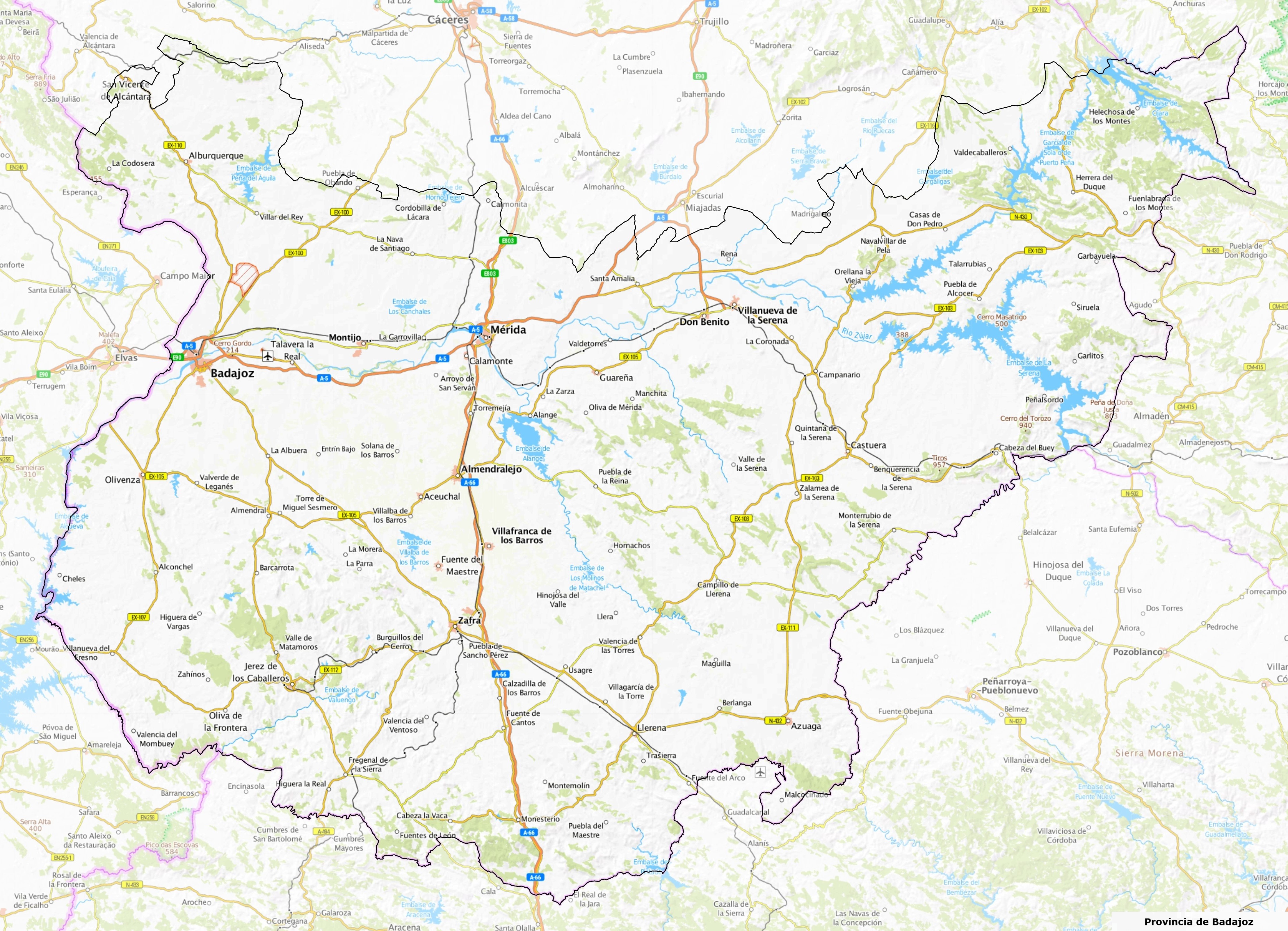 Otras elevaciones notables: Sierra de San Pedro (al oeste) y Sierra de Tentudía (al sur).
