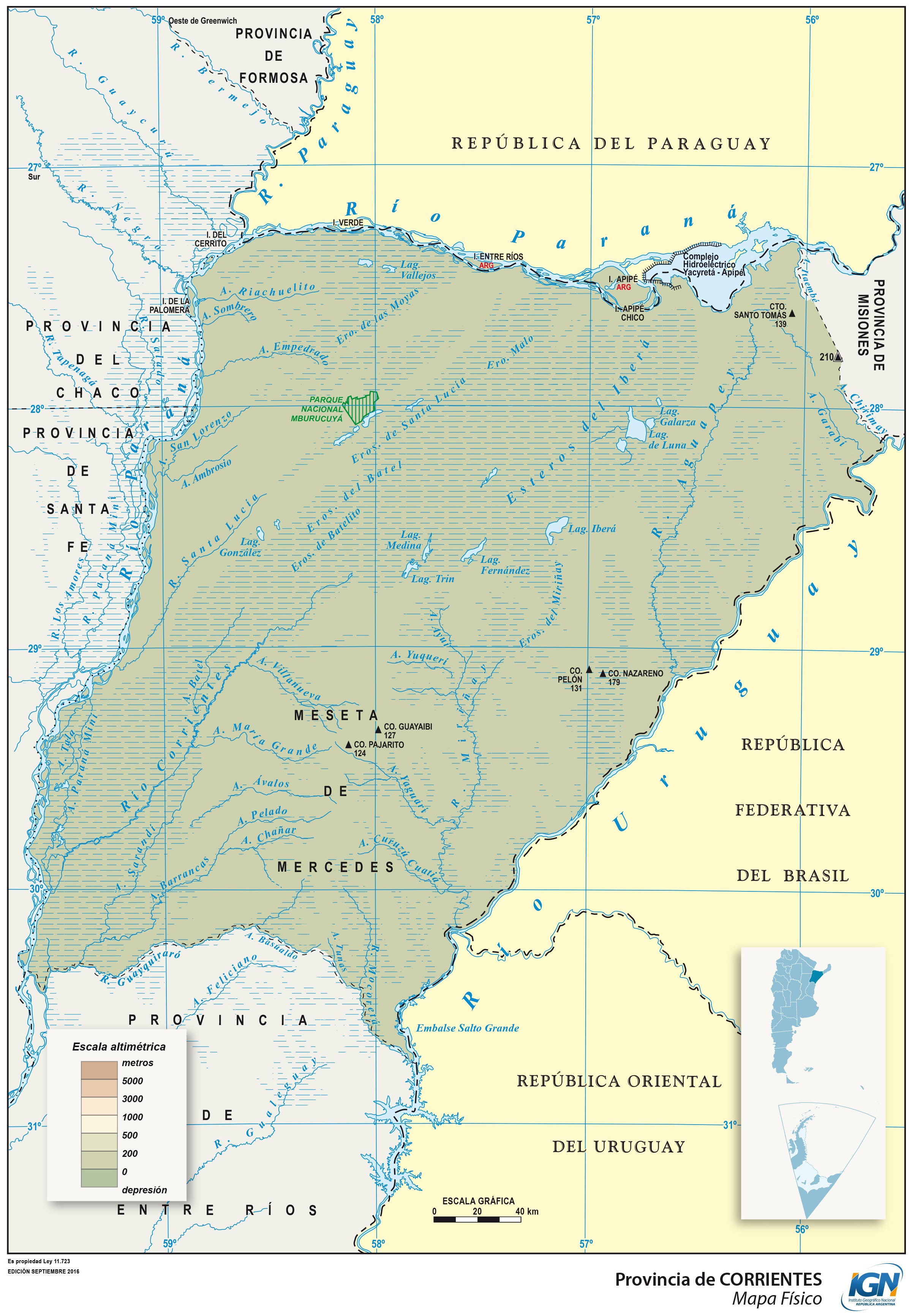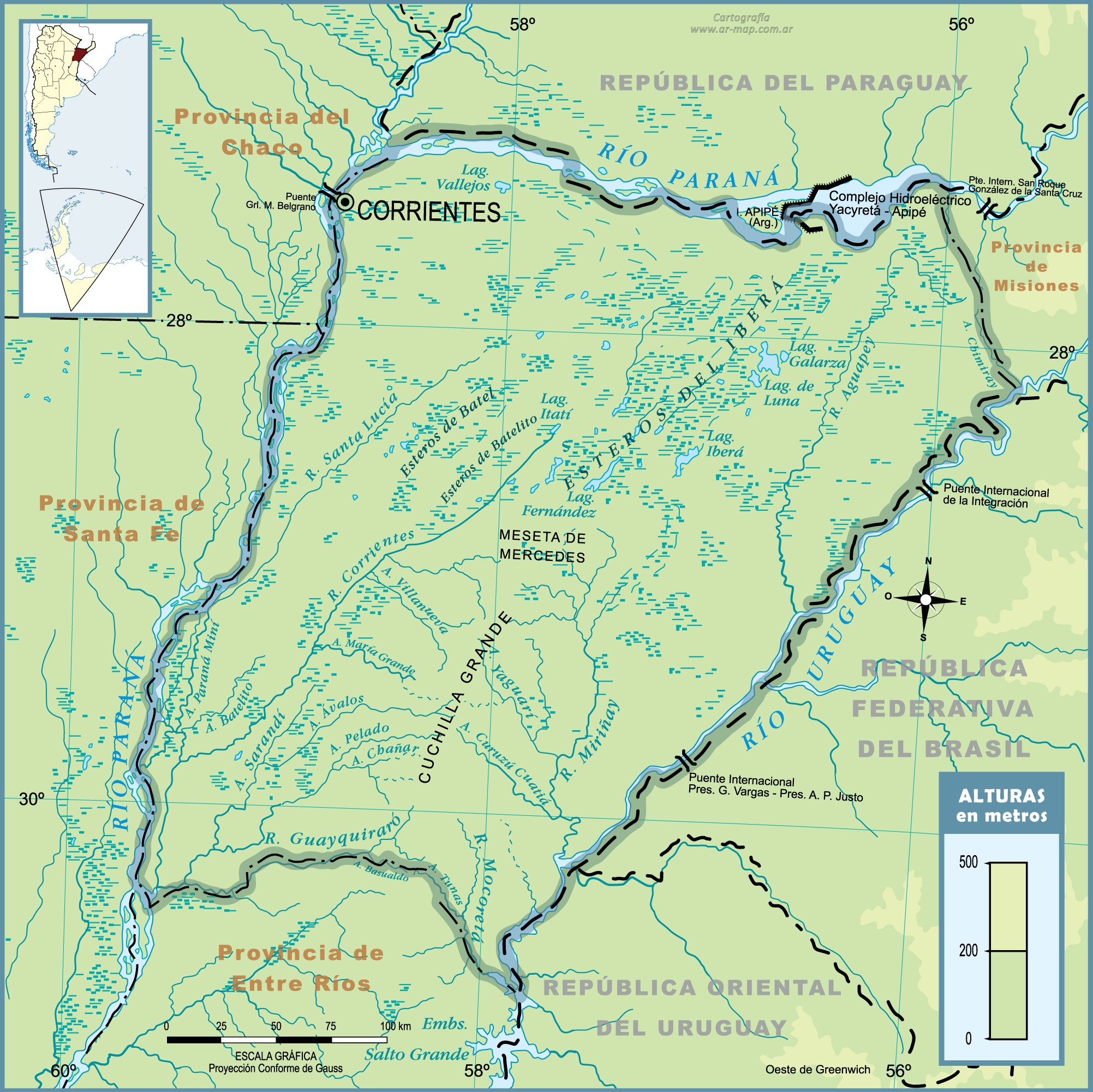 La provincia de Corrientes se caracteriza por un territorio de llanuras bajas, abundantes cursos de agua y extensos humedales, siendo una de las provincias más ricas en recursos hídricos de Argentina. Forma parte de la región del Litoral y del Nordeste Argentino.