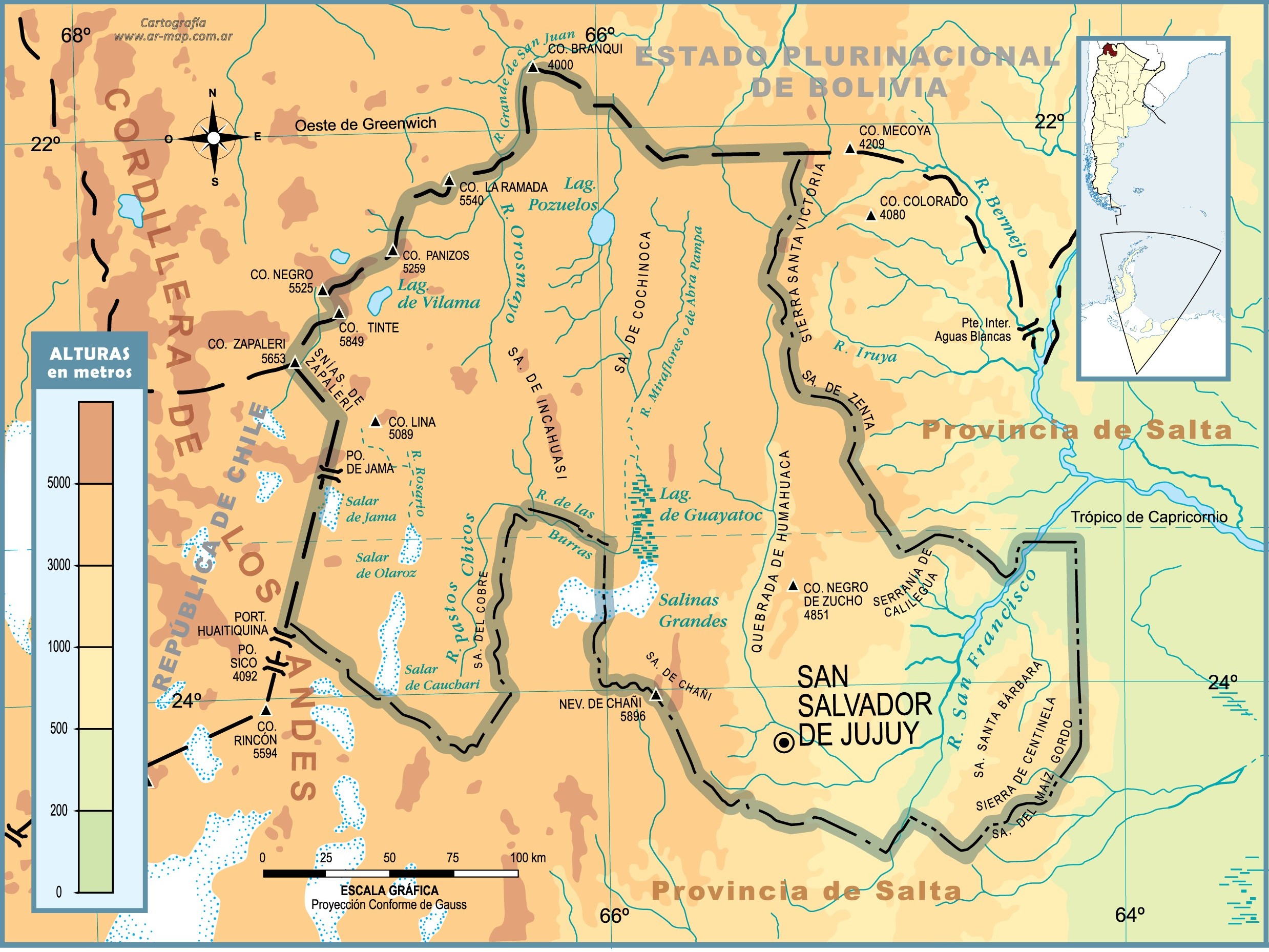 En la provincia existen cerros y nevados que superan ampliamente los 5.000 metros, especialmente en la región puneña.