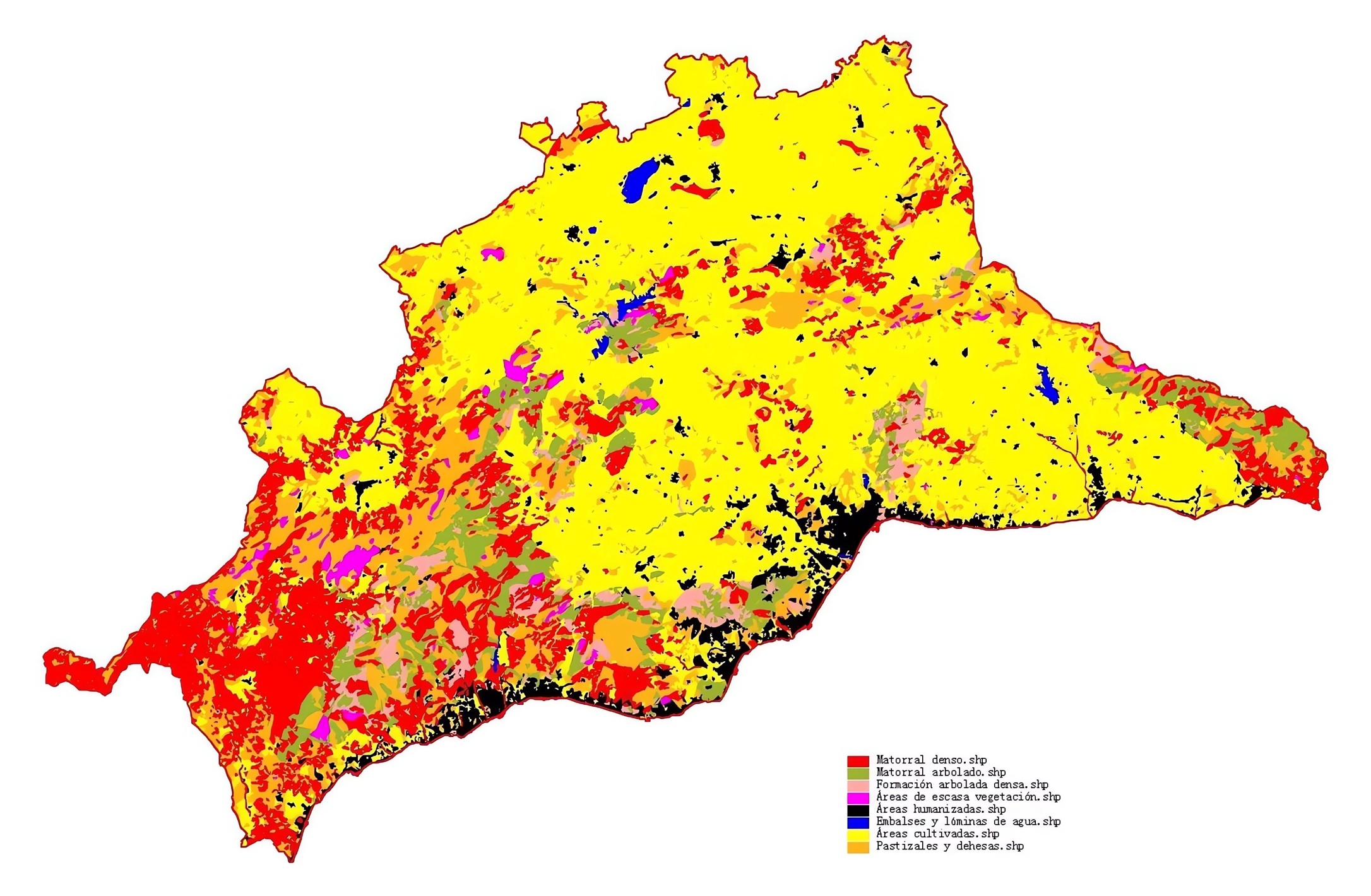 El territorio provincial se encuentra situado entre los paralelos 37°17′ y 36°18′ de latitud norte y los meridanos 3.º 47′ y 5.º 37′ de longitud oeste. El relieve es acusadamente montañoso, con altitudes máximas en torno a los 2000 m s. n. m. en las cumbres de La Maroma (2066 m s. n. m.) y el Torrecilla (1919 m s. n. m.). Aproximadamente, un tercio del territorio se encuentra entre los 0 y 400 m s. n. m. Otro tercio, entre los 400 y los 800 m s. n. m. Y el último tercio, entre los 800 y los 2000 m s. n. m.