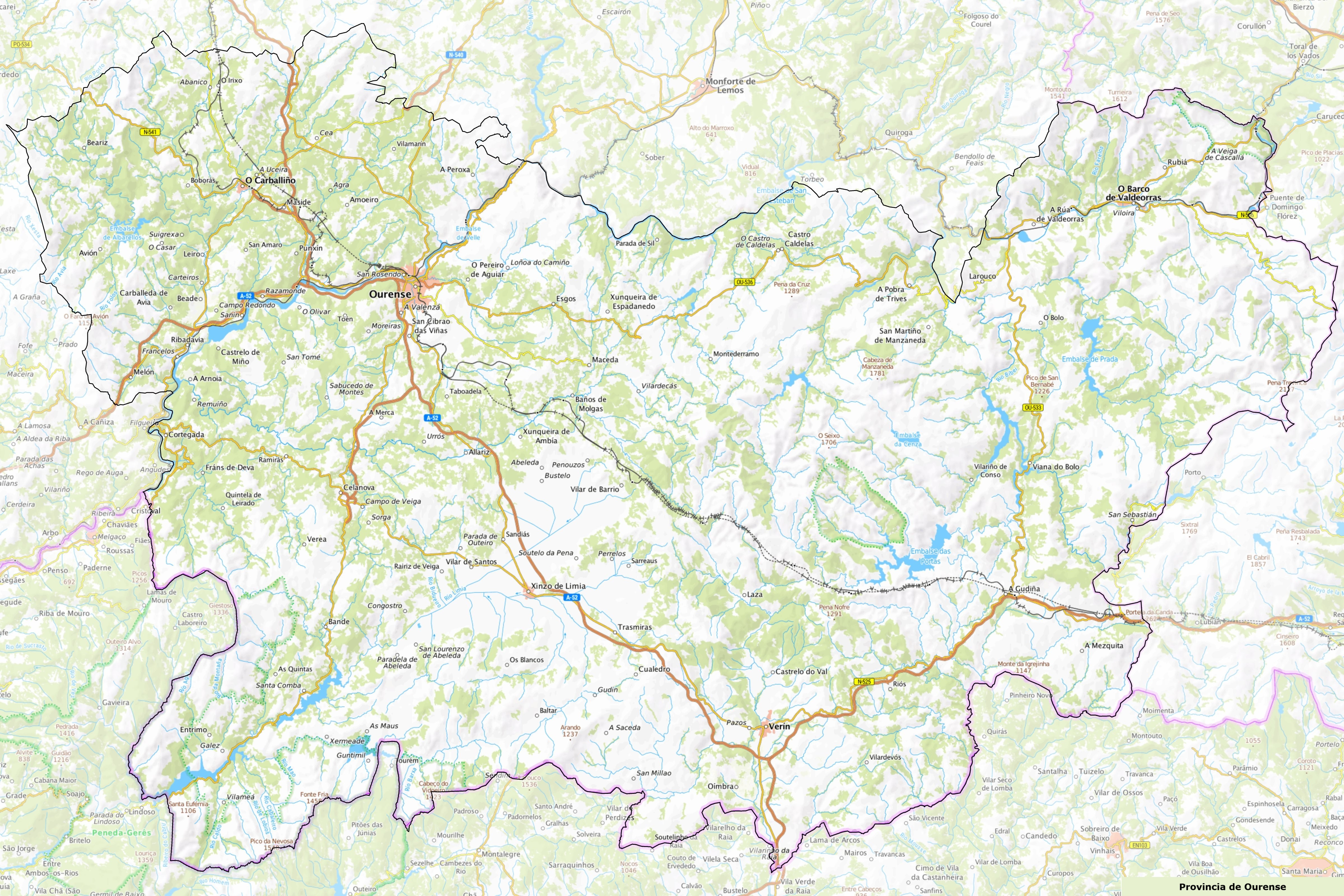 Macizo Central Orensano: ocupa gran parte del centro-este; zonas de altitud elevada y terreno áspero.