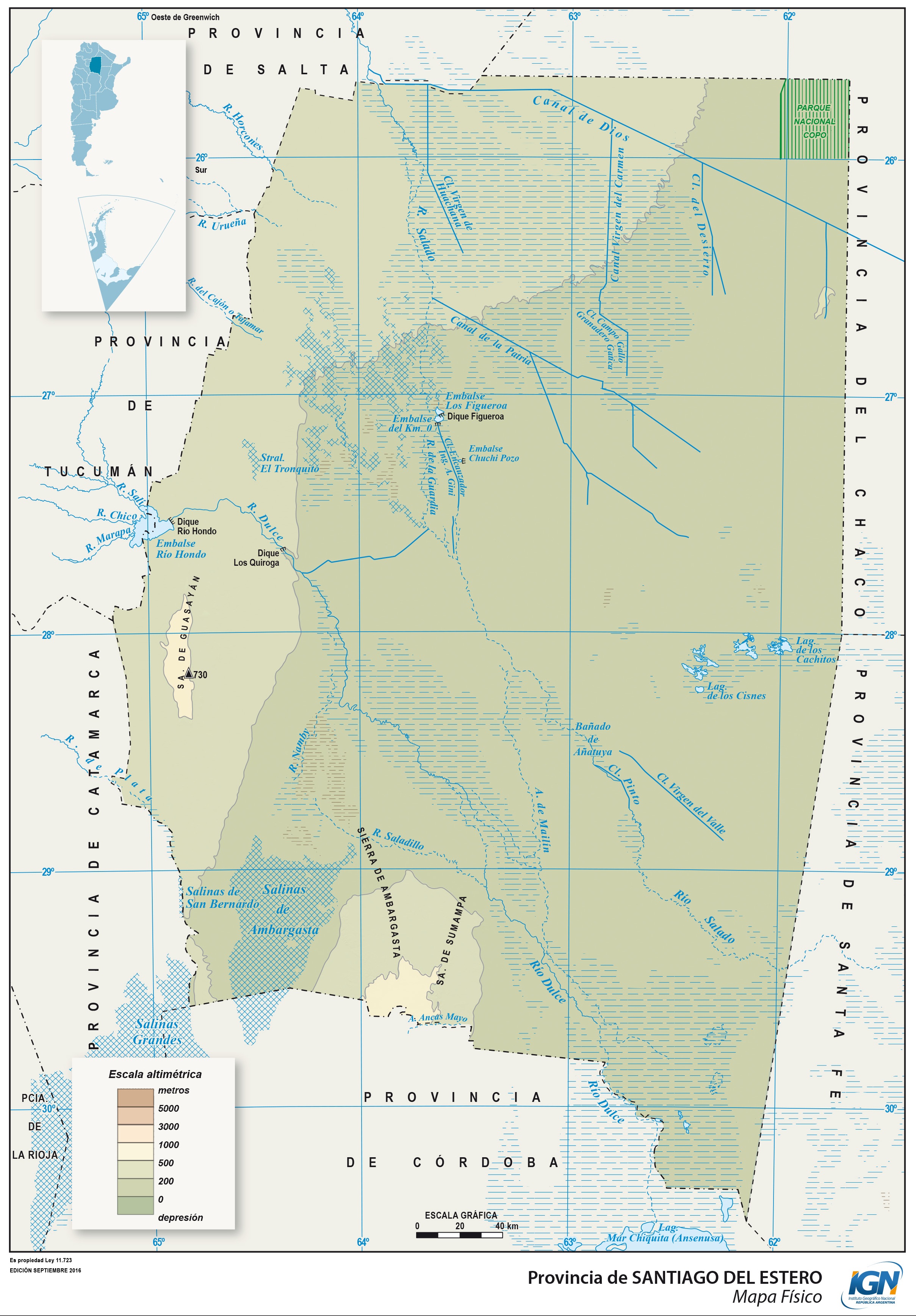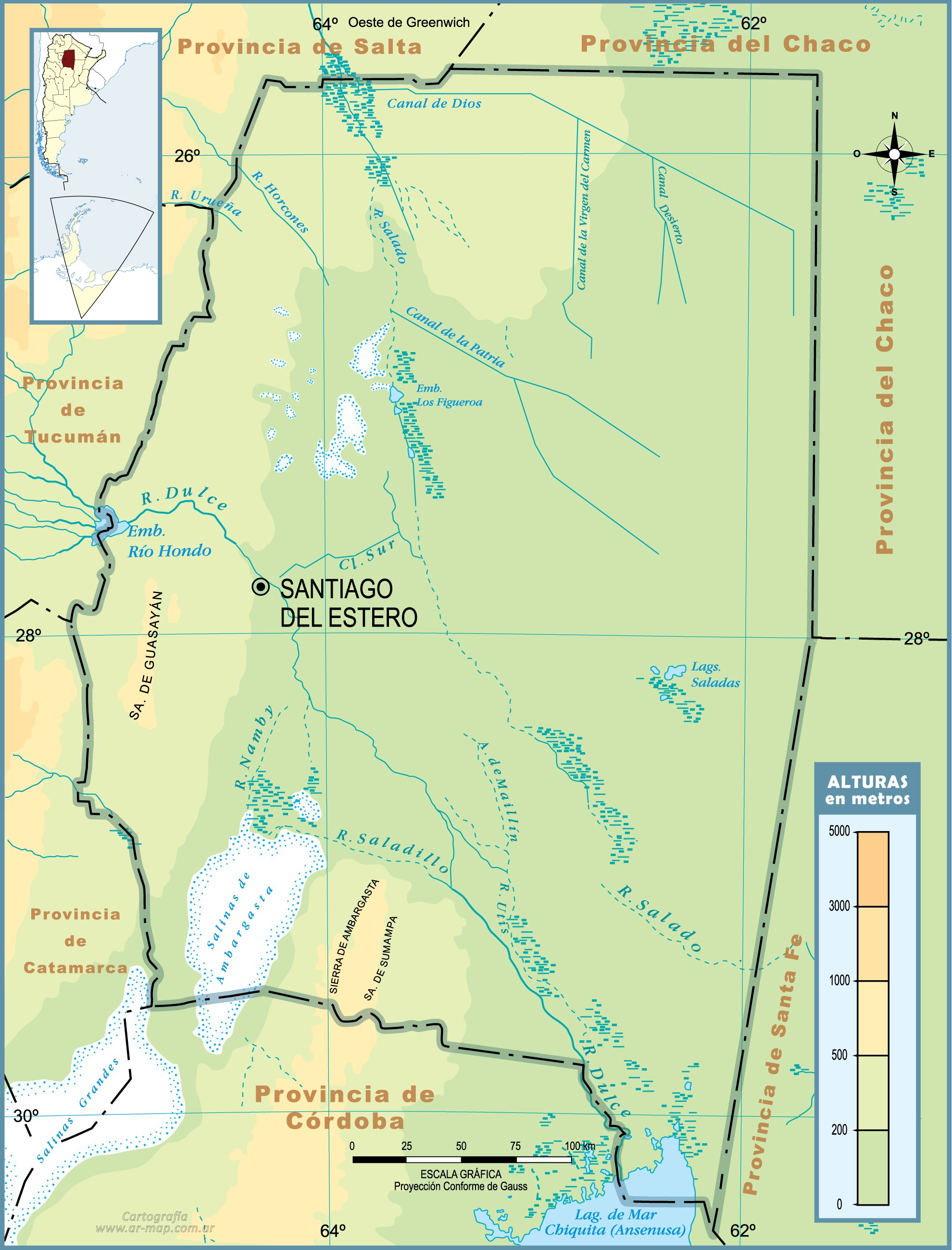 Mapa físico de la provincia de Santiago del Estero