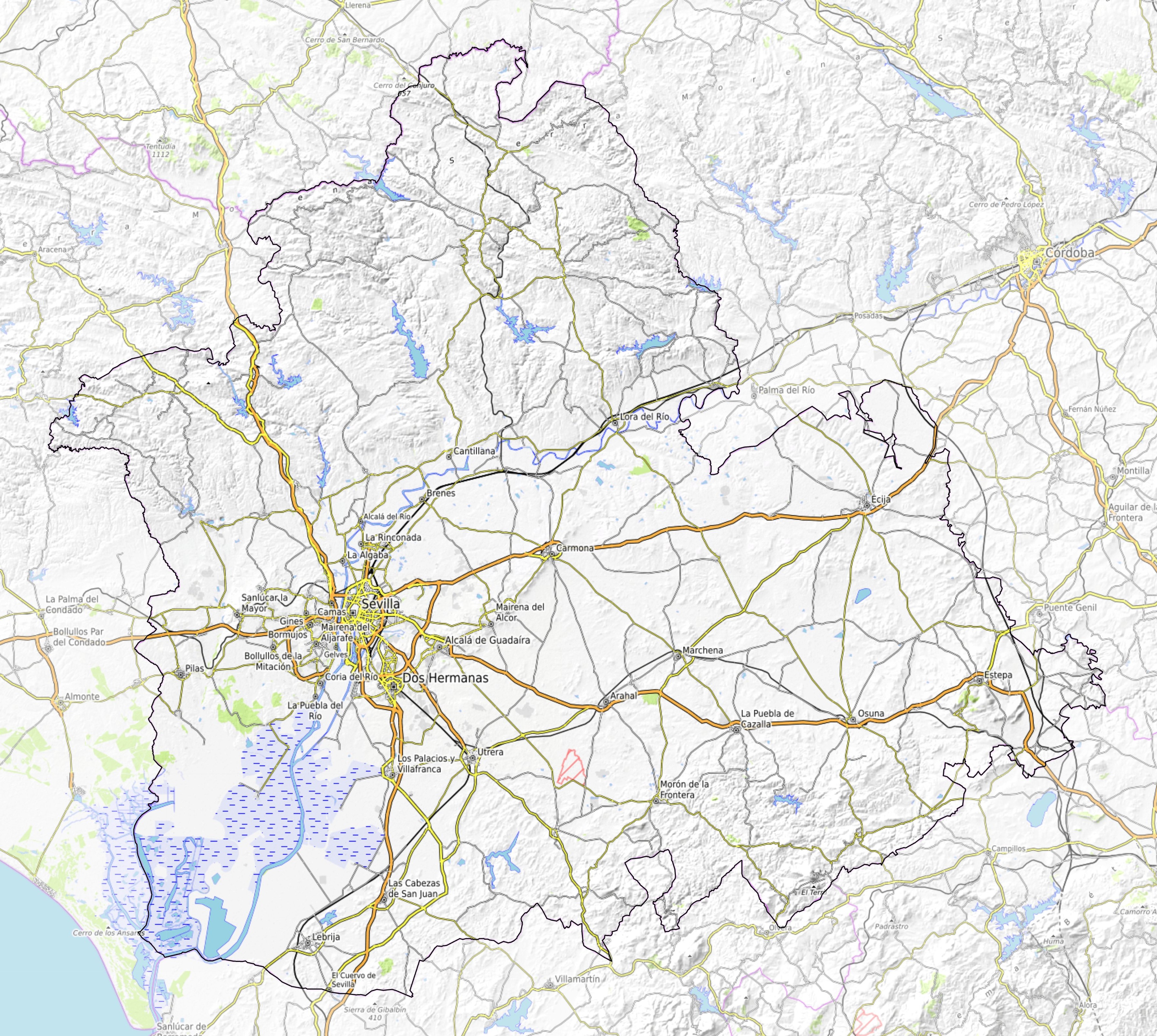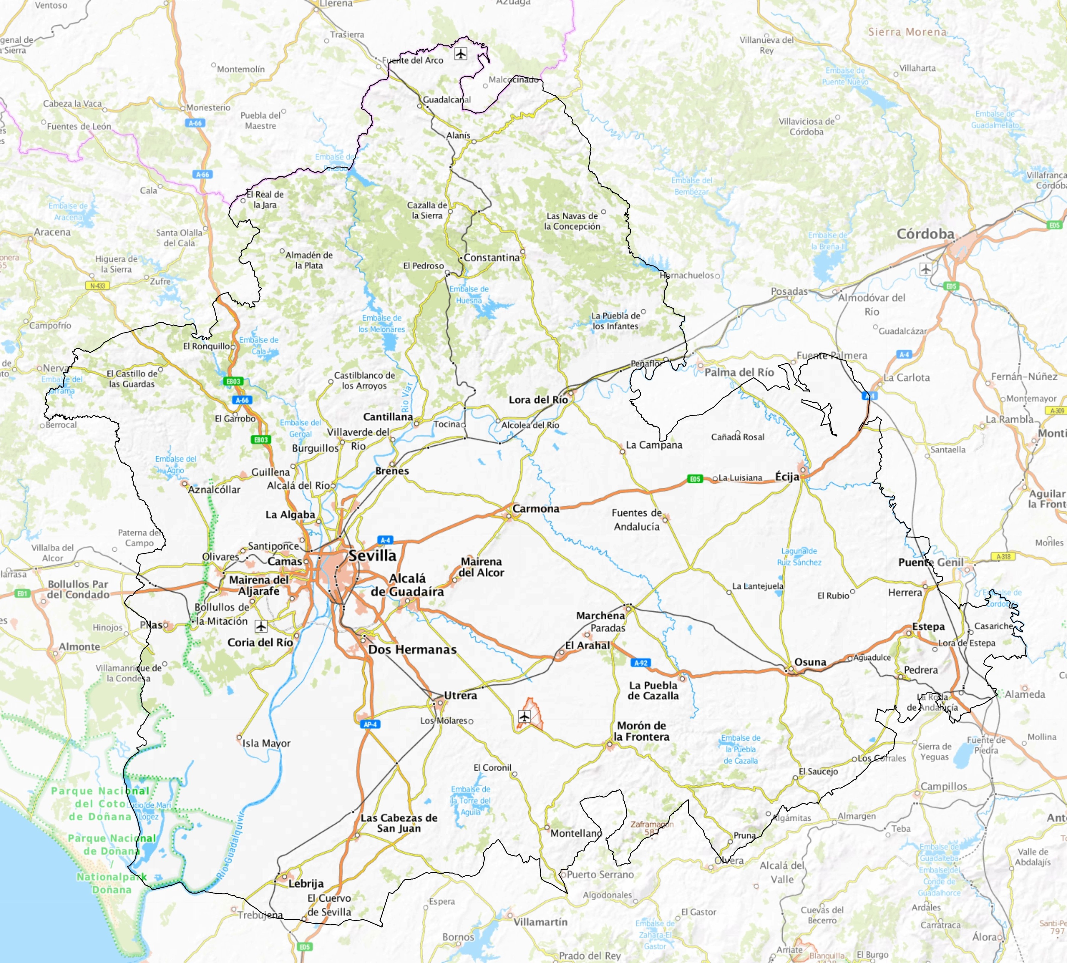 El principal río que atraviesa la provincia es el Guadalquivir (el río Betis romano), algunos de sus afluentes son el Genil, el Corbones, el Guadaíra, el Viar y el Rivera de Huelva.