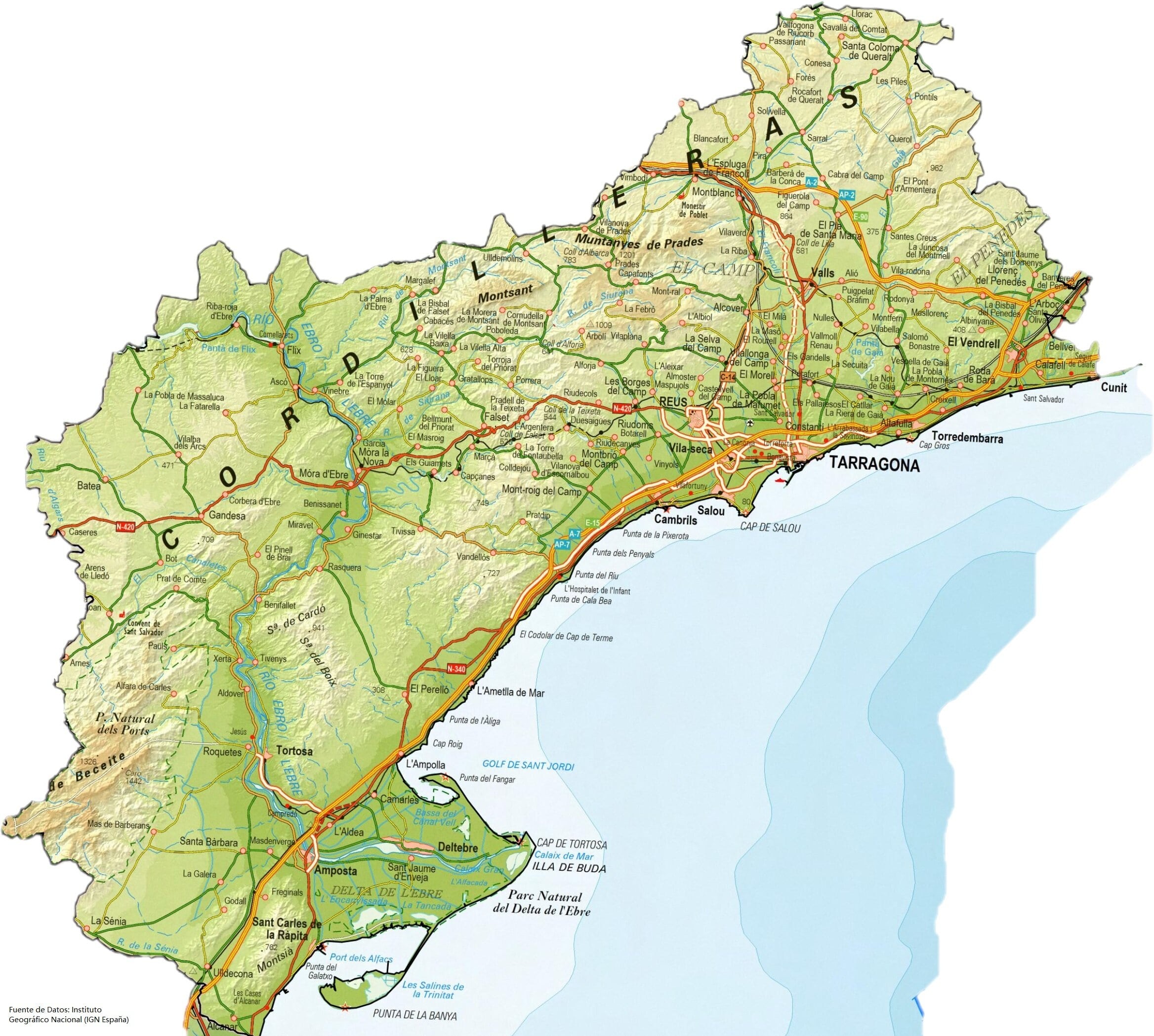 La provincia de Tarragona, situada en el noreste de España, forma parte de la comunidad autónoma de Cataluña. Su geografía es variada, con una combinación de costa mediterránea, llanuras agrícolas y sistemas montañosos. A continuación, se describen sus principales características geográficas: