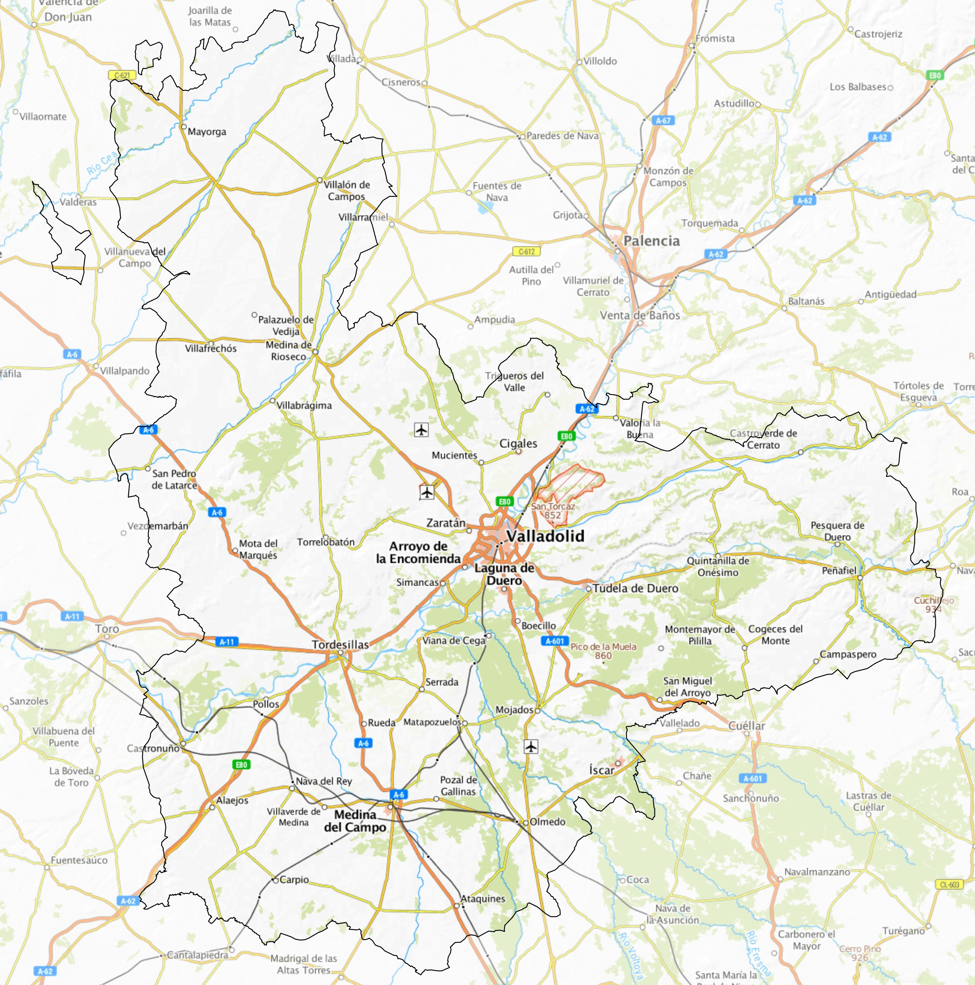 La provincia de Valladolid tiene una extensión de 8111 km², está situada en el centro de la Meseta Norte (mitad superior de la meseta Ibérica) y se caracteriza por la uniformidad de su orografía (777 m s. n. m. de media con un desnivel máximo de 300). convirtiéndose en la provincia más homogénea geográficamente hablando de España. El río Duero, que la atraviesa de este a oeste, se convierte en columna vertebral del territorio.