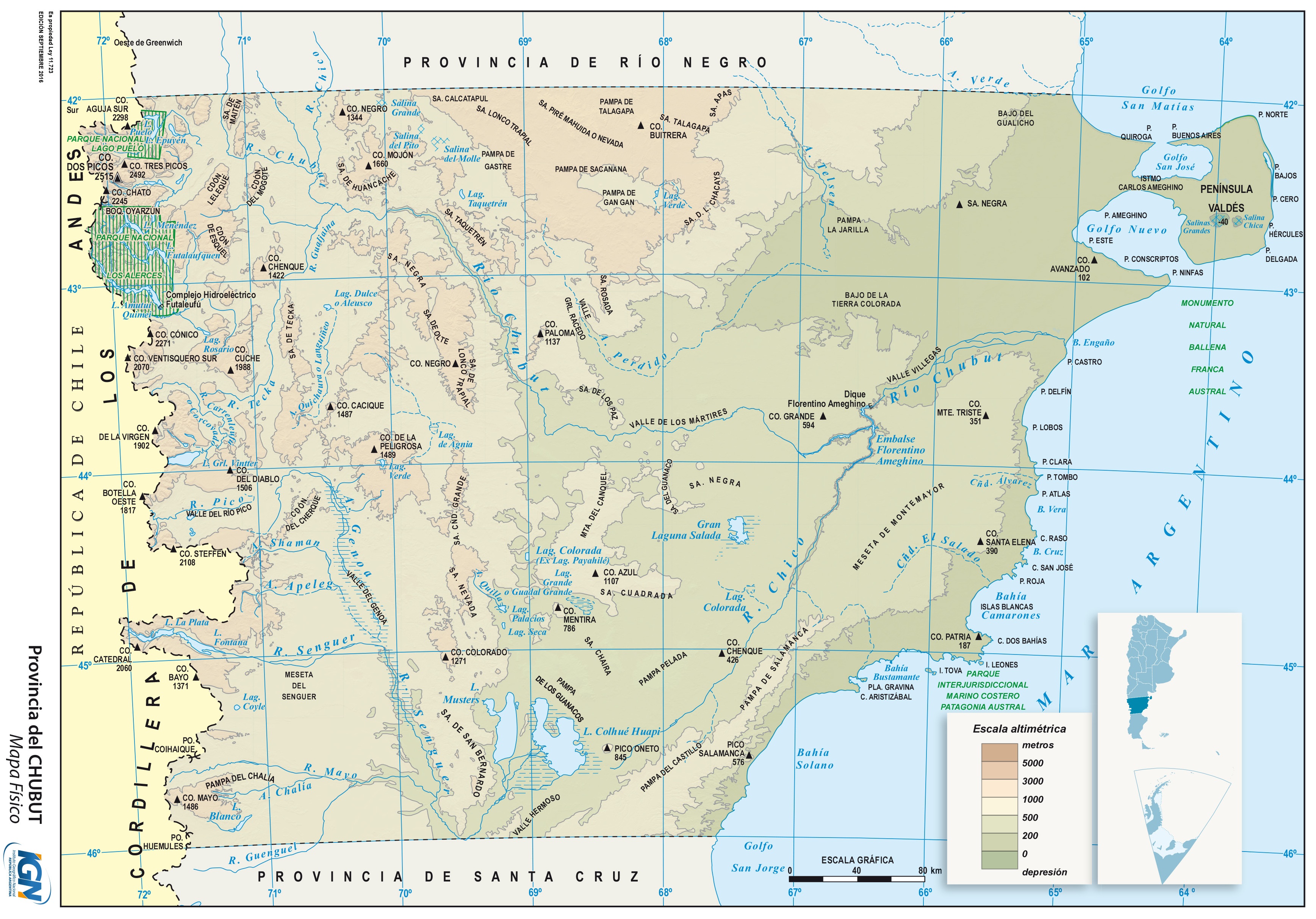 Otros documentos de interés geográfico : « Mapa físico de la provincia del Chubut »