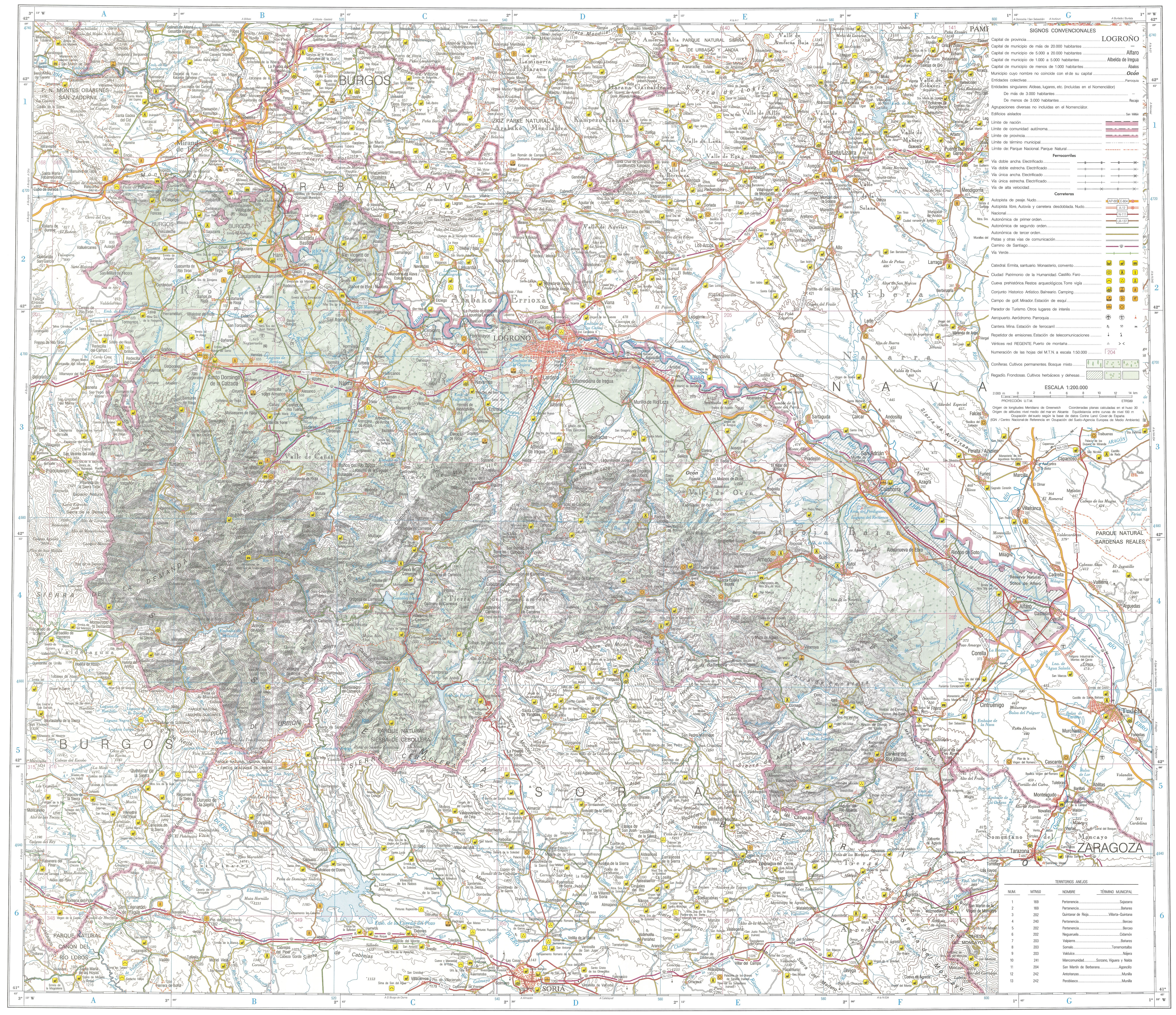 En las tierras altas crecen robles, hayas y pinos. Hay matorrales de enebros, boj, endrinas, acebos, jaras, y grandes laderas con finos pastos para ganados caballar, vacuno y lanar. Más abajo se encuentran encinas, olivos y almendros. Cerca del Ebro, en los llanos, las tierras son para cereal, remolacha y patata, en tanto que las colinas están cubiertas de inmensas viñas de las que manan literalmente los vinos que dan fama mundial a esta región.