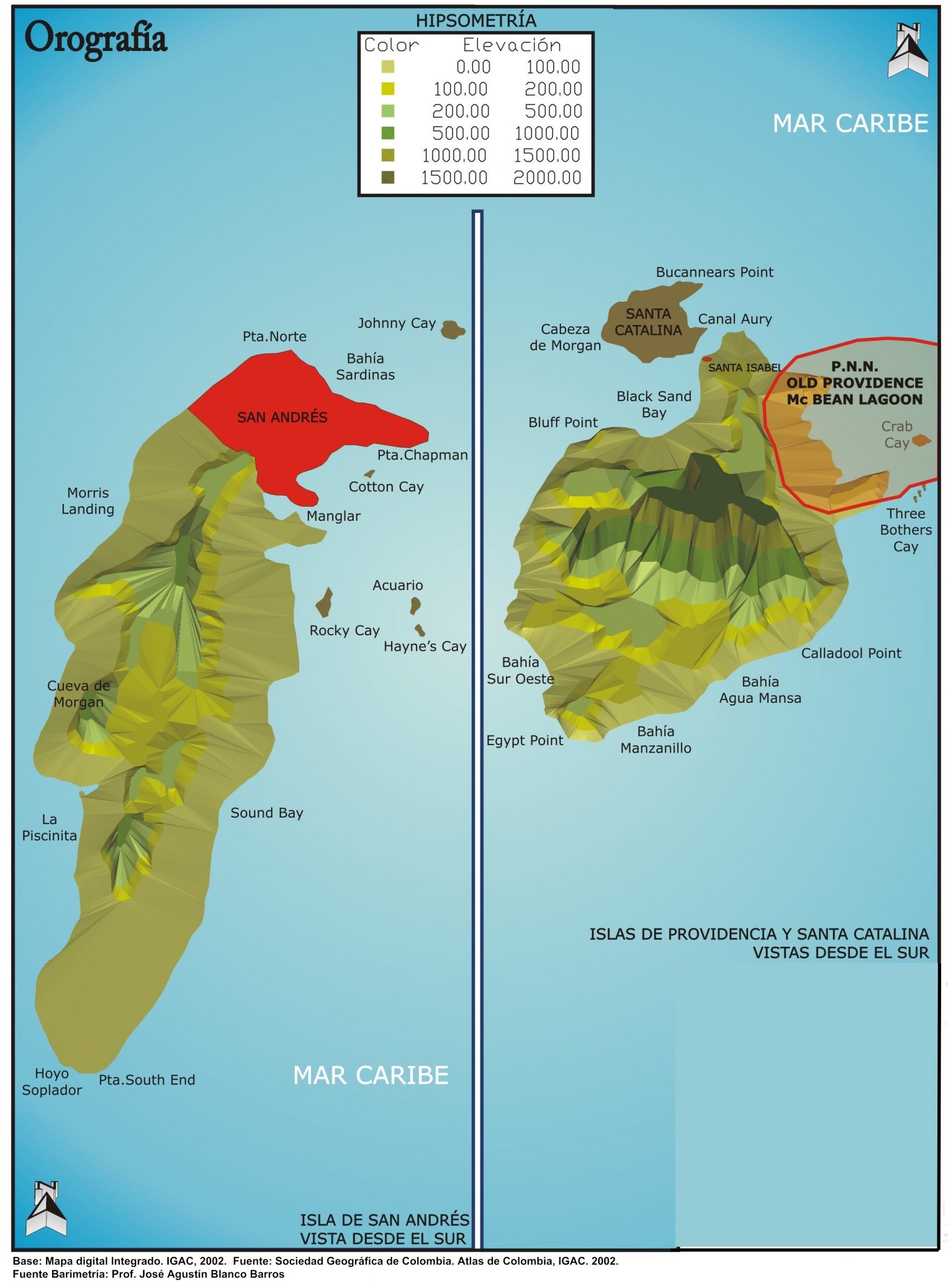 Mapa físico de San Andrés, Providencia y Santa Catalina