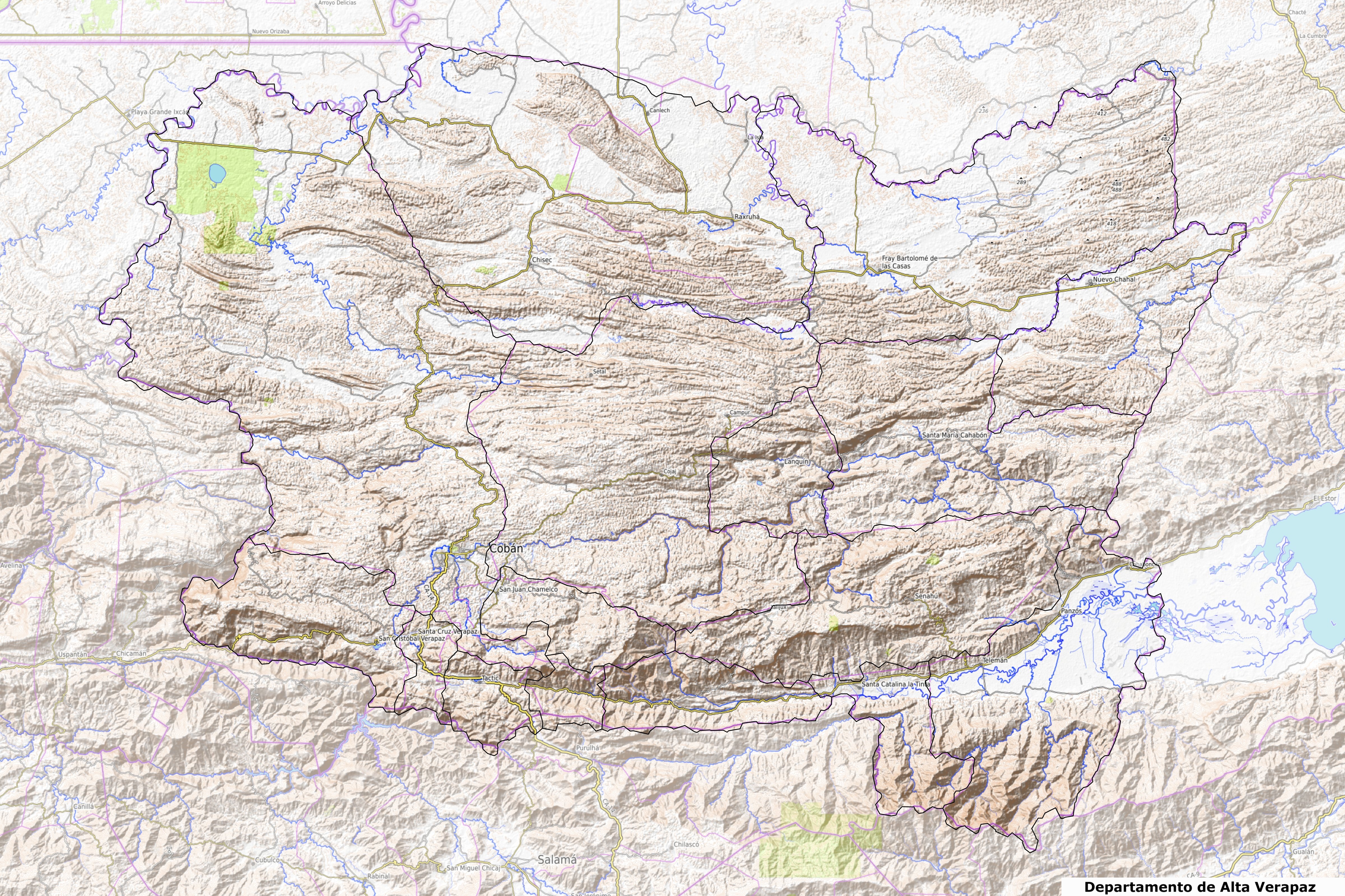 La geografía de Alta Verapaz está dominada por sistemas montañosos y formaciones kársticas.