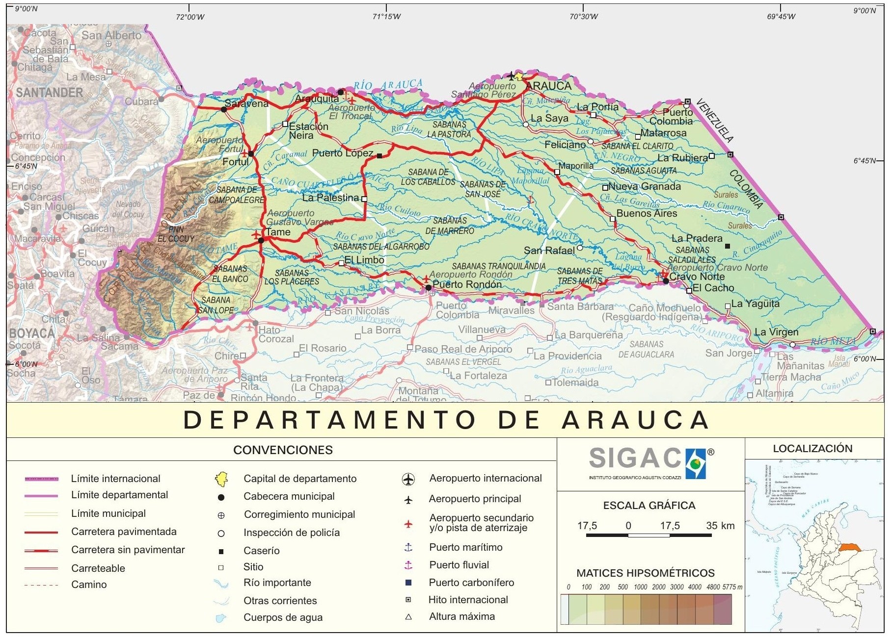 Otros documentos de interés geográfico : « Mapa físico del departamento de Arauca »