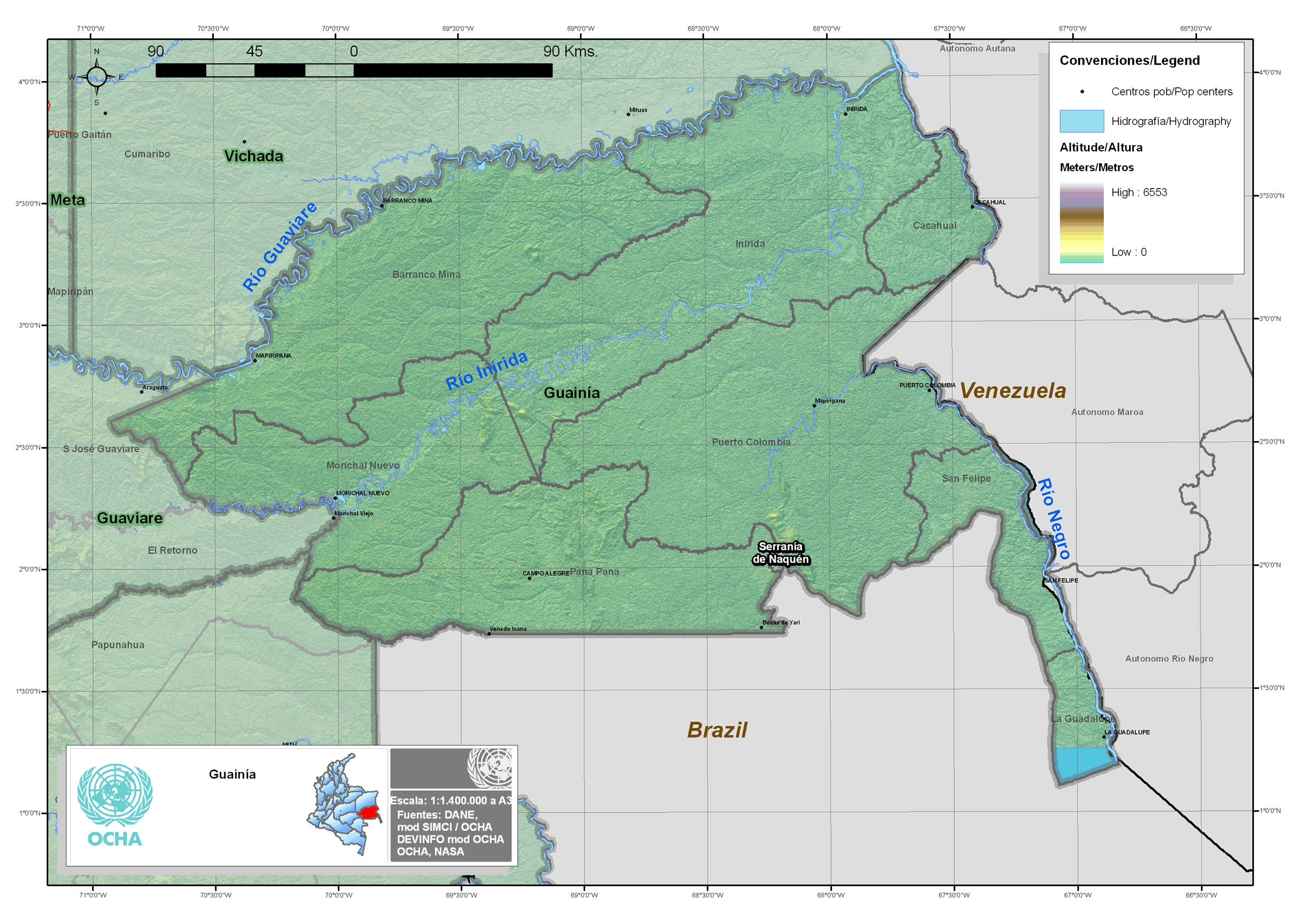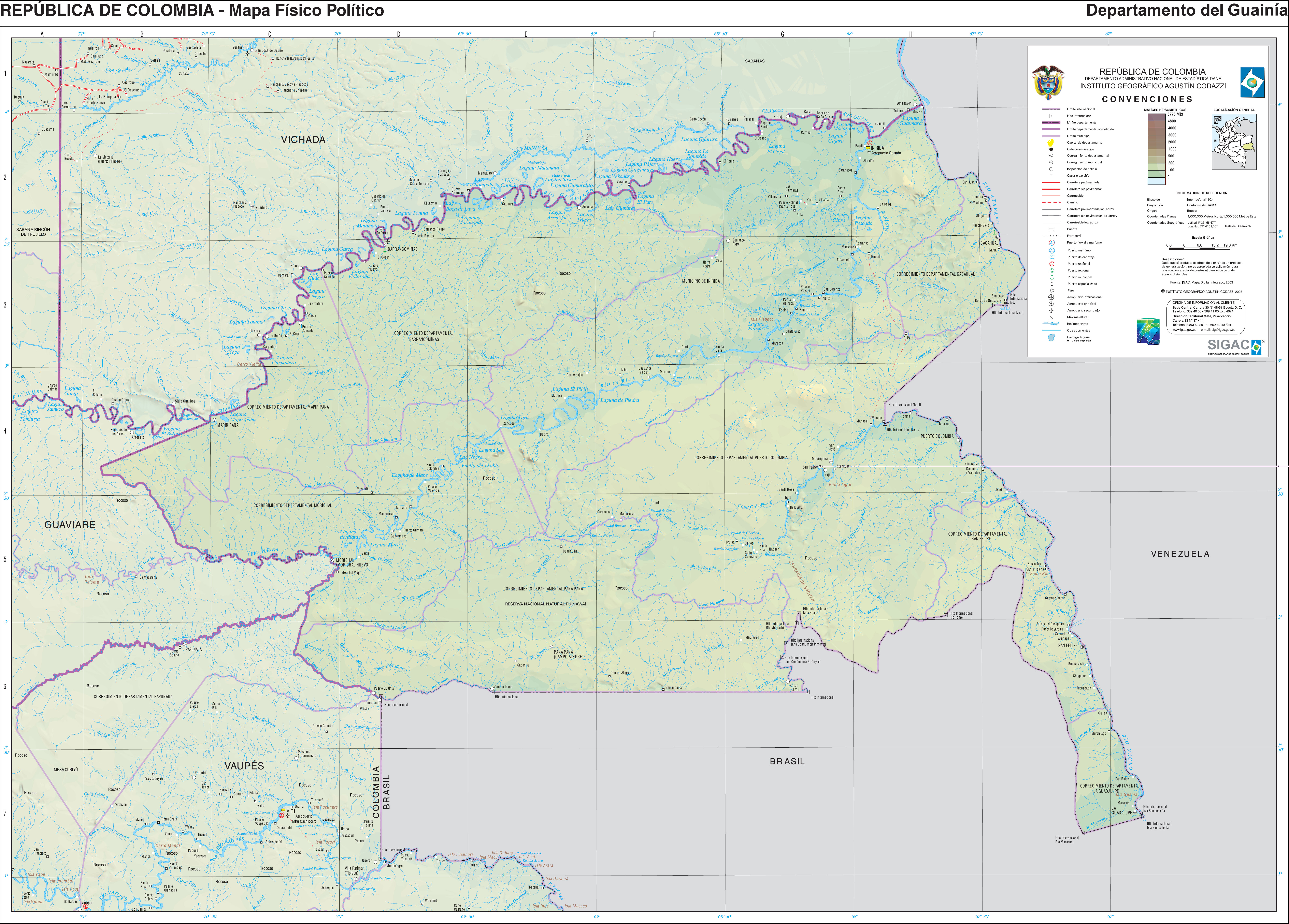 Otros documentos de interés geográfico : « Mapa físico del departamento de Guainía »