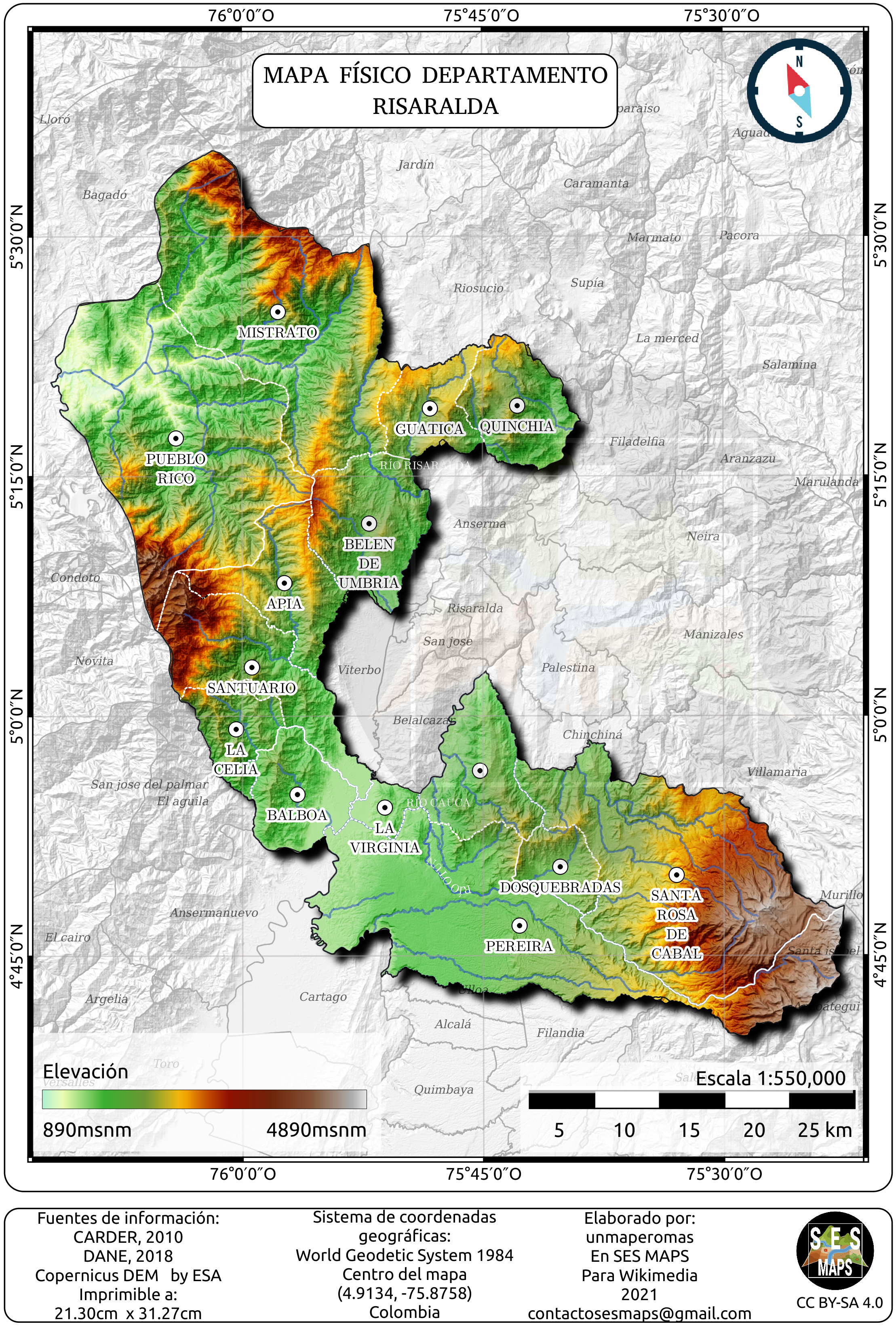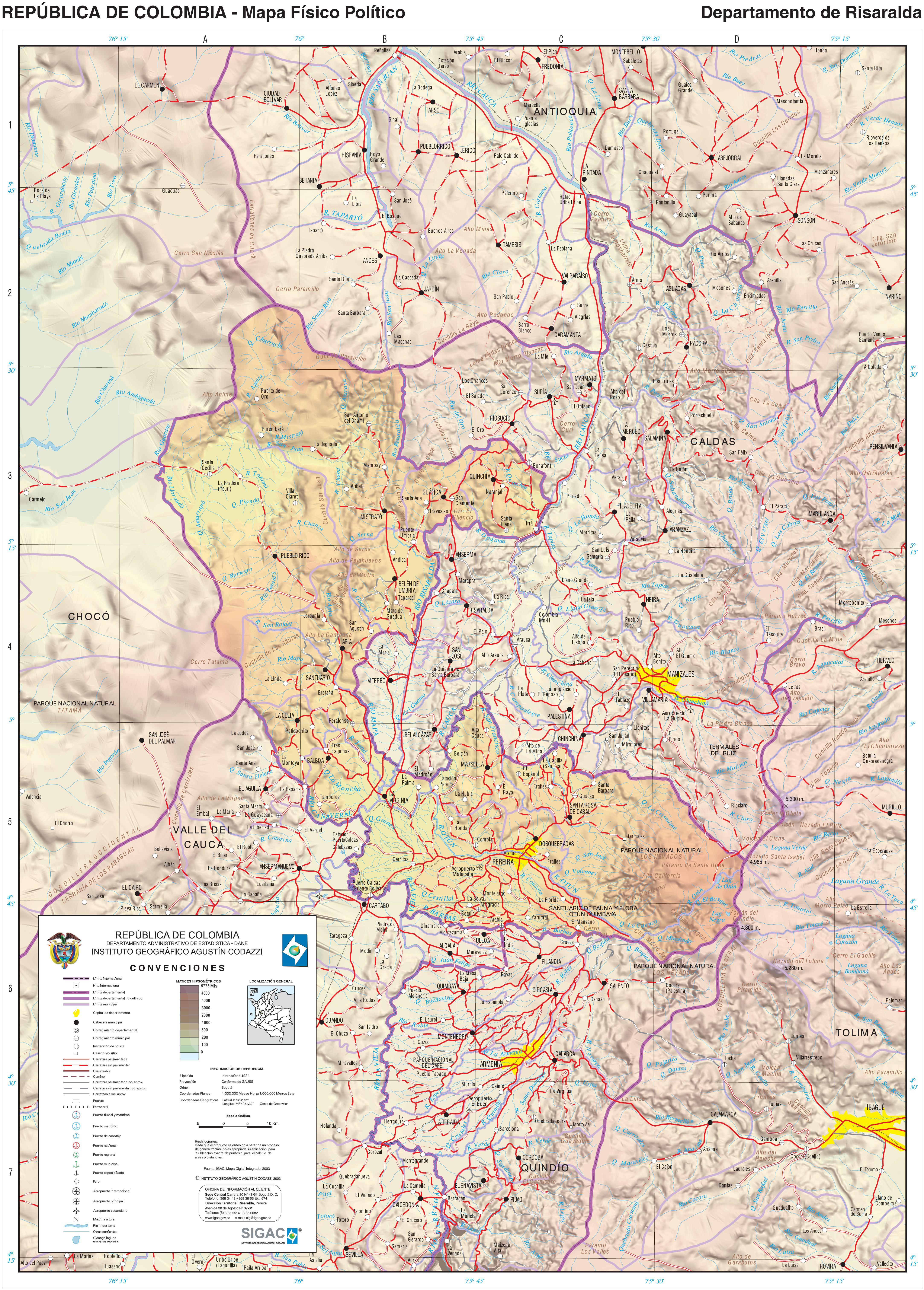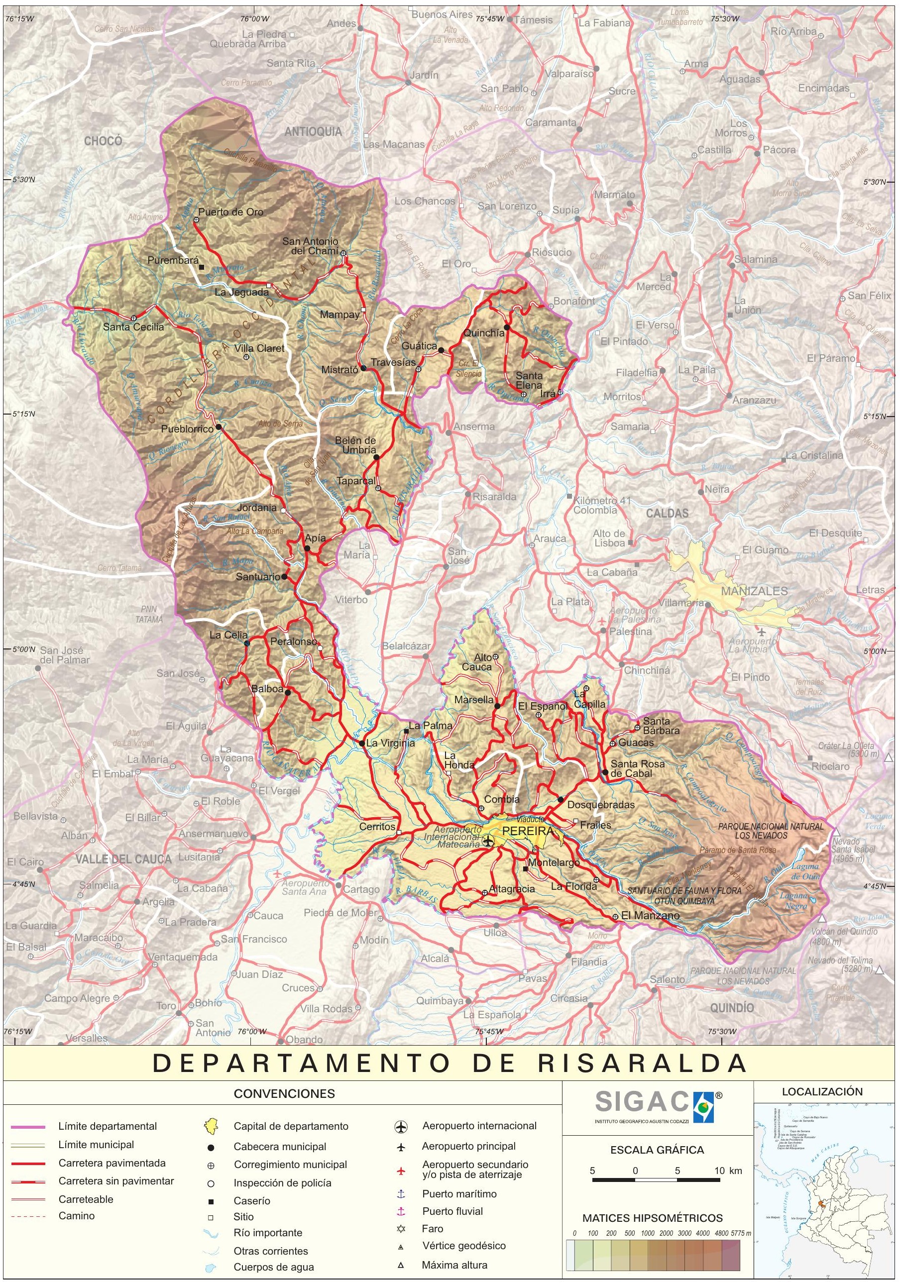 Otros documentos de interés geográfico : « Mapa físico del departamento de Risaralda »