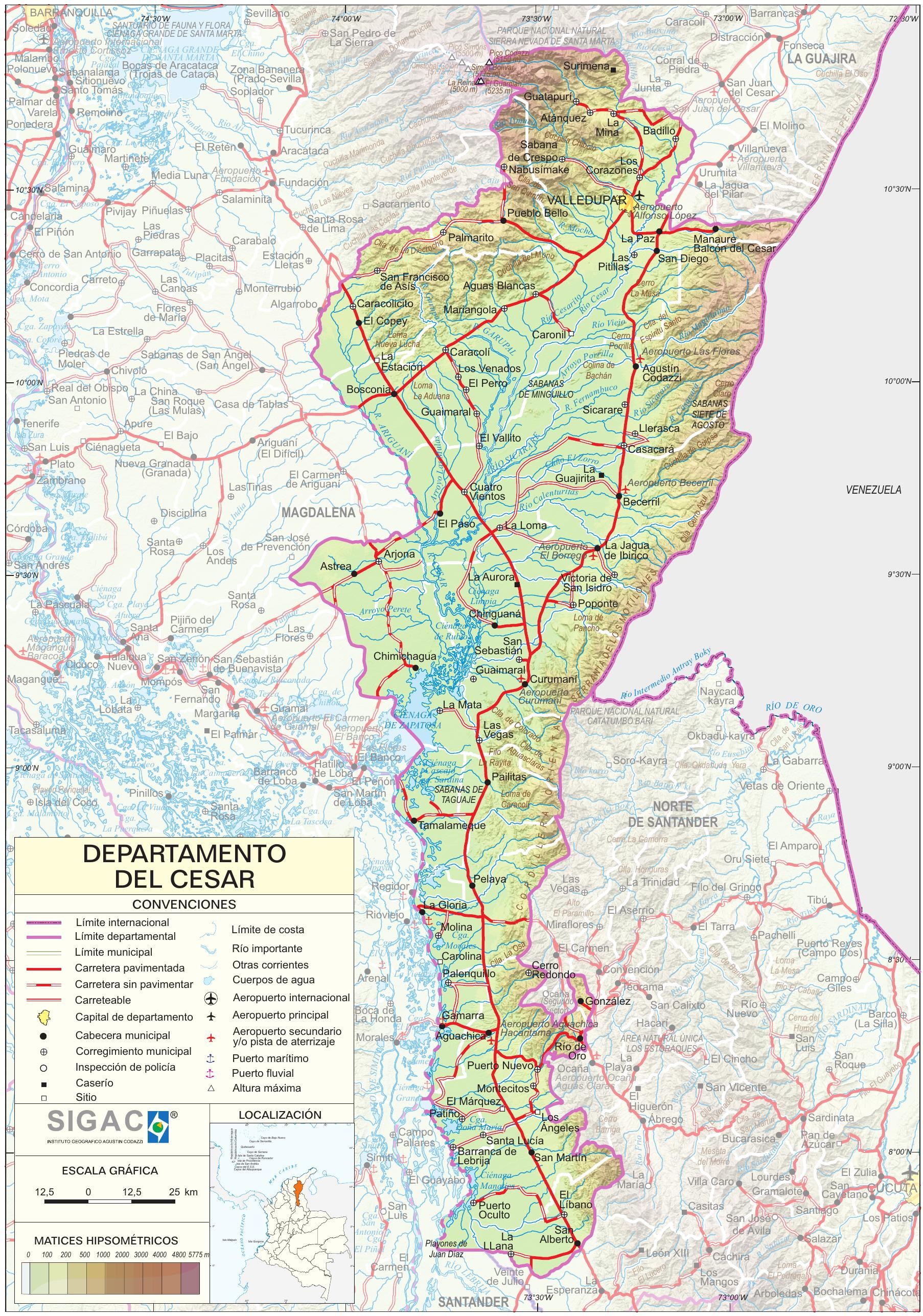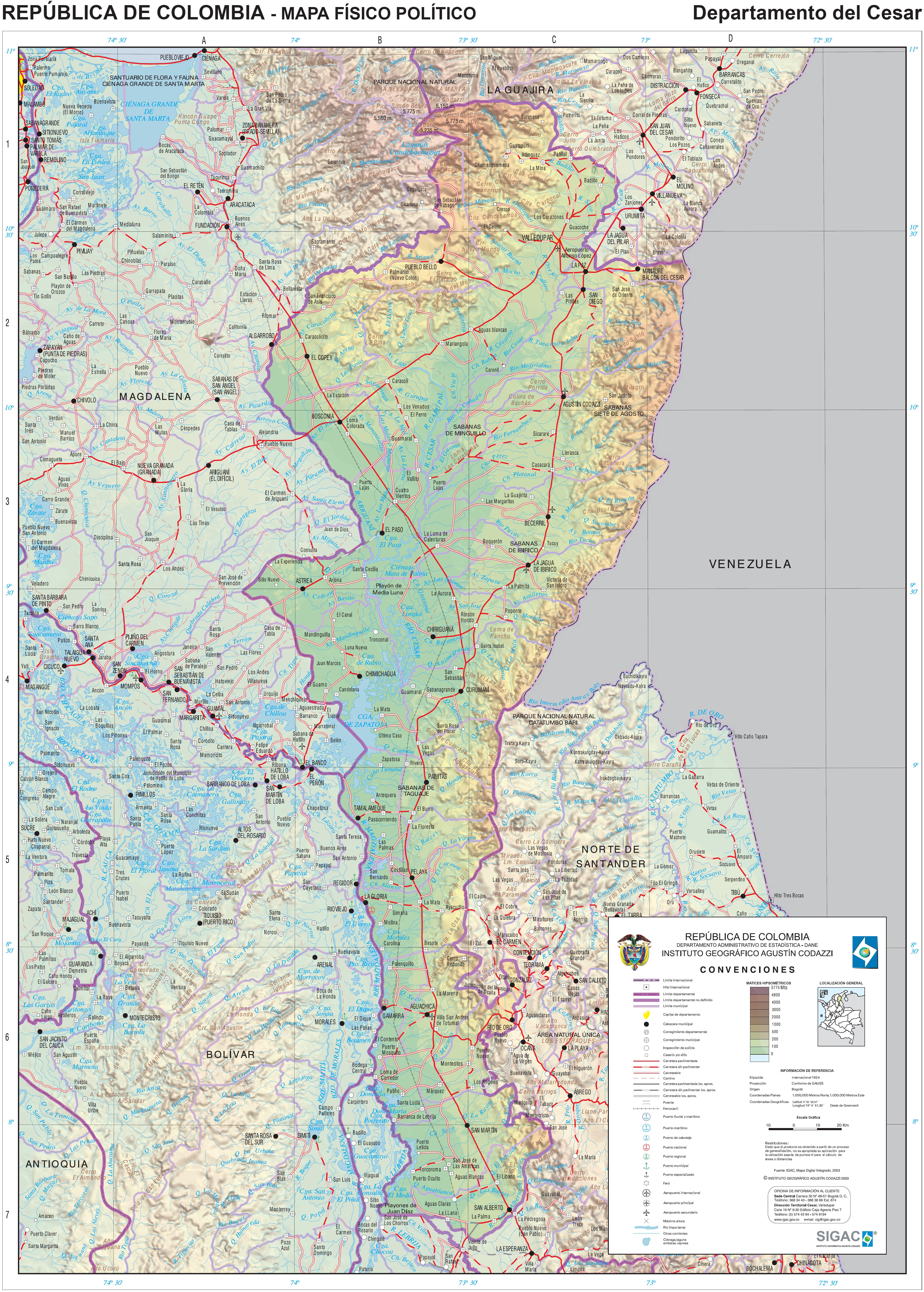 Otros documentos de interés geográfico : « Mapa físico del departamento del Cesar »