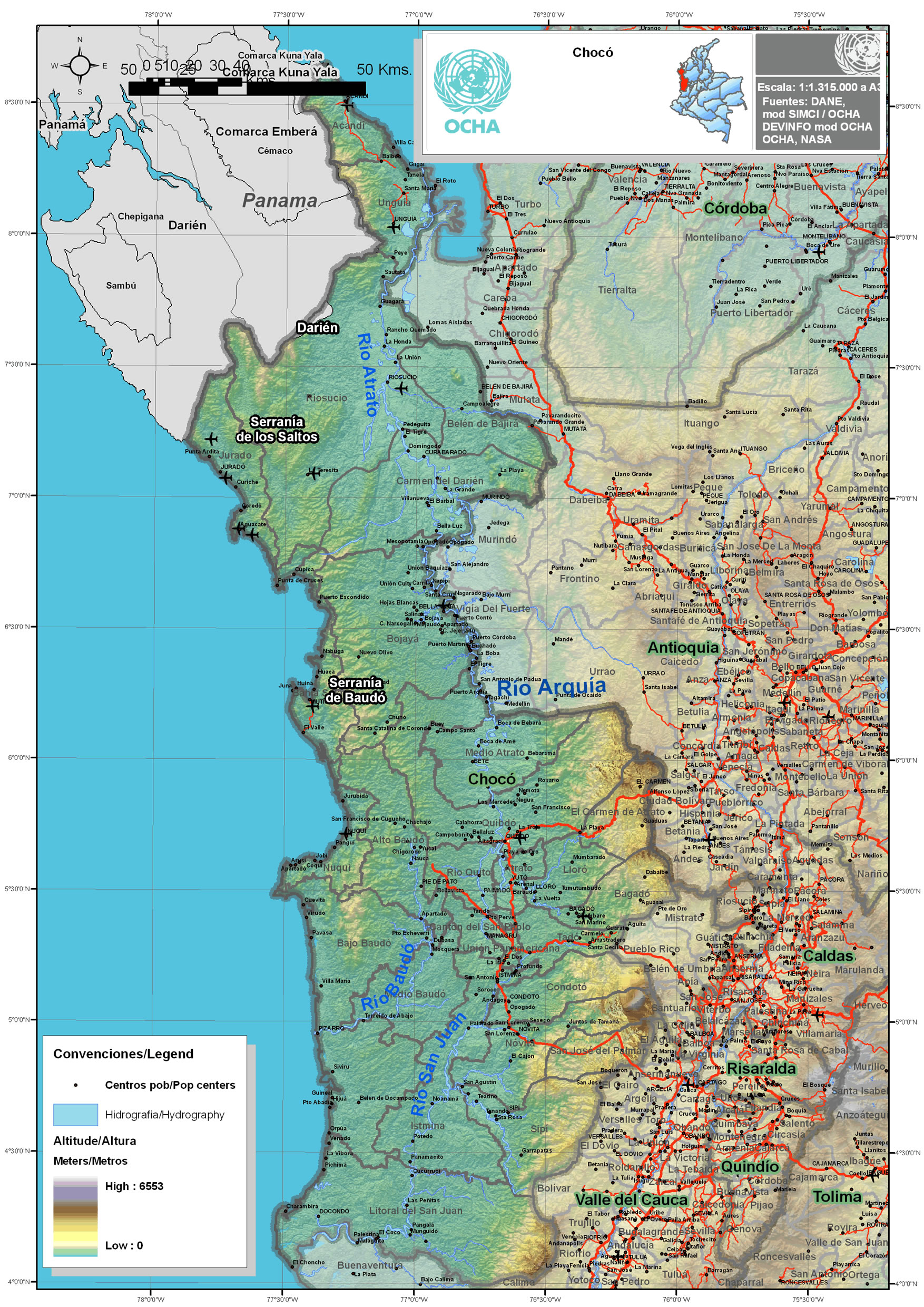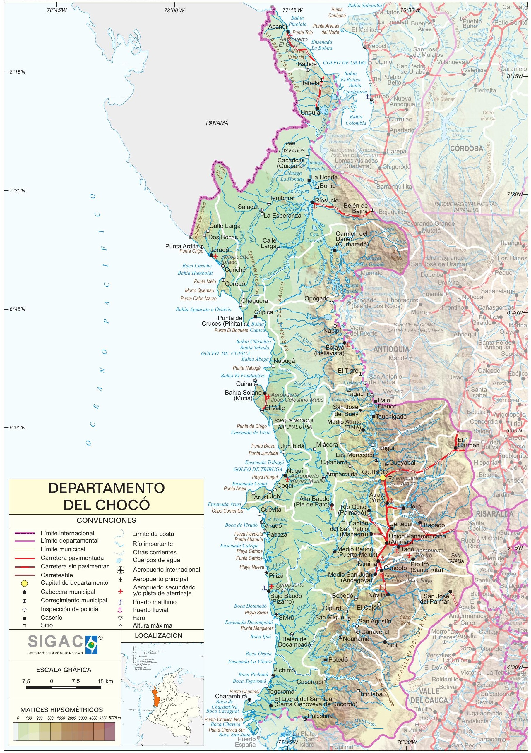 Otros documentos de interés geográfico : « Mapa físico del departamento del Chocó »