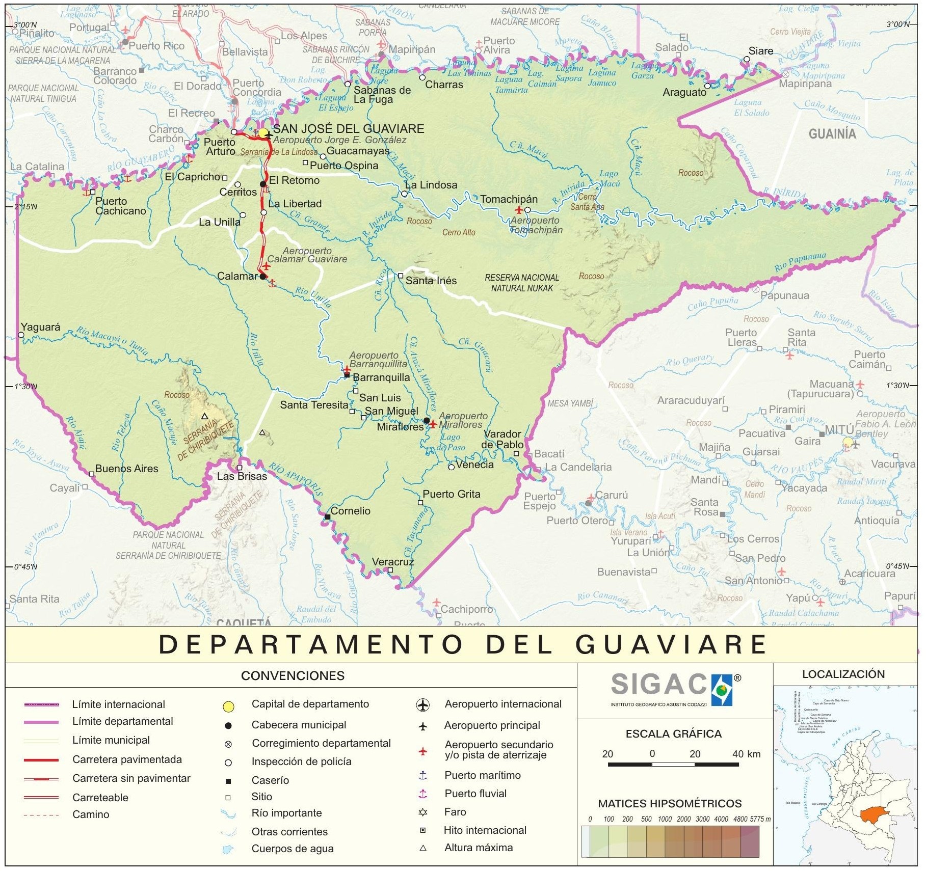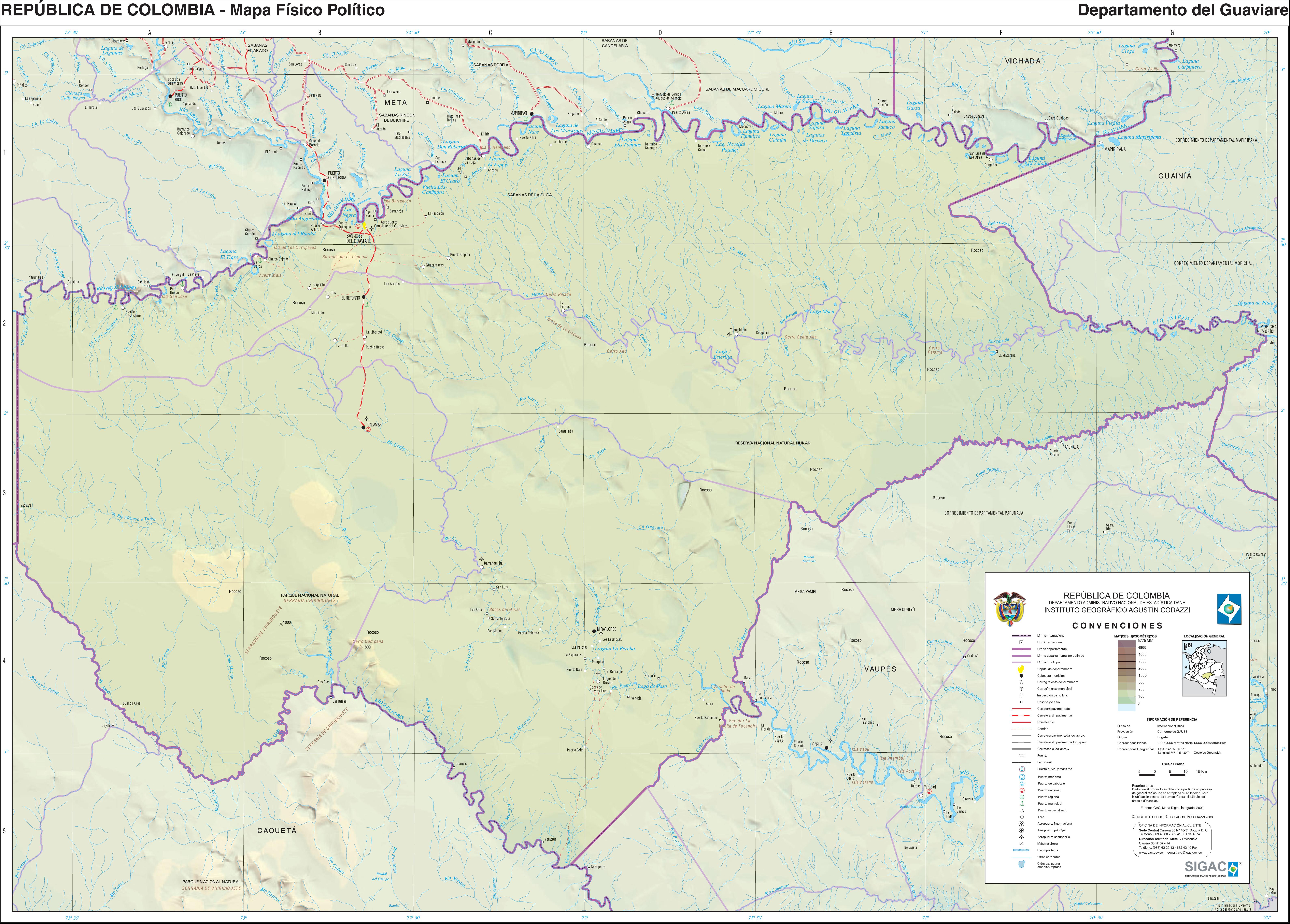 Otros documentos de interés geográfico : « Mapa físico del departamento del Guaviare »