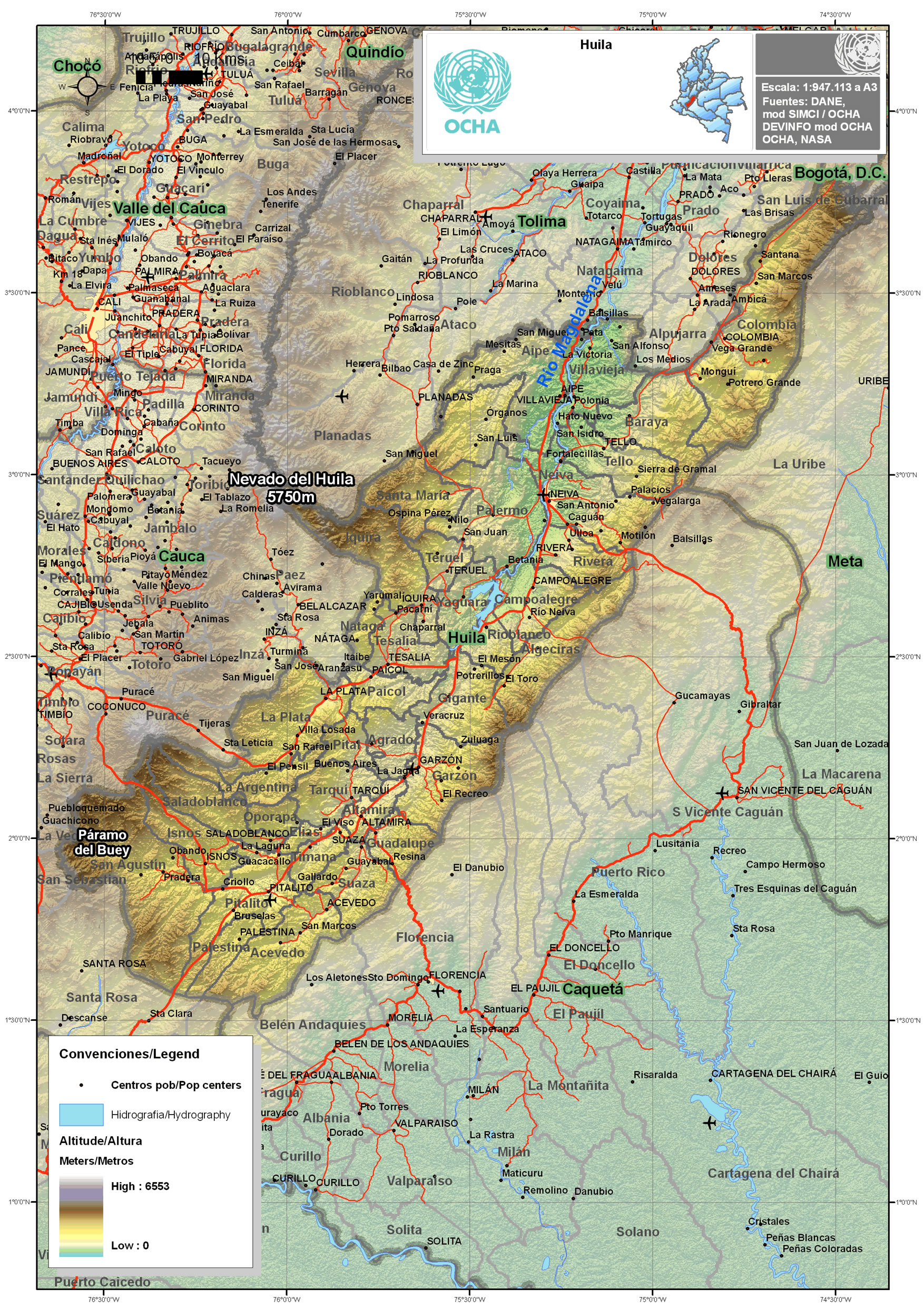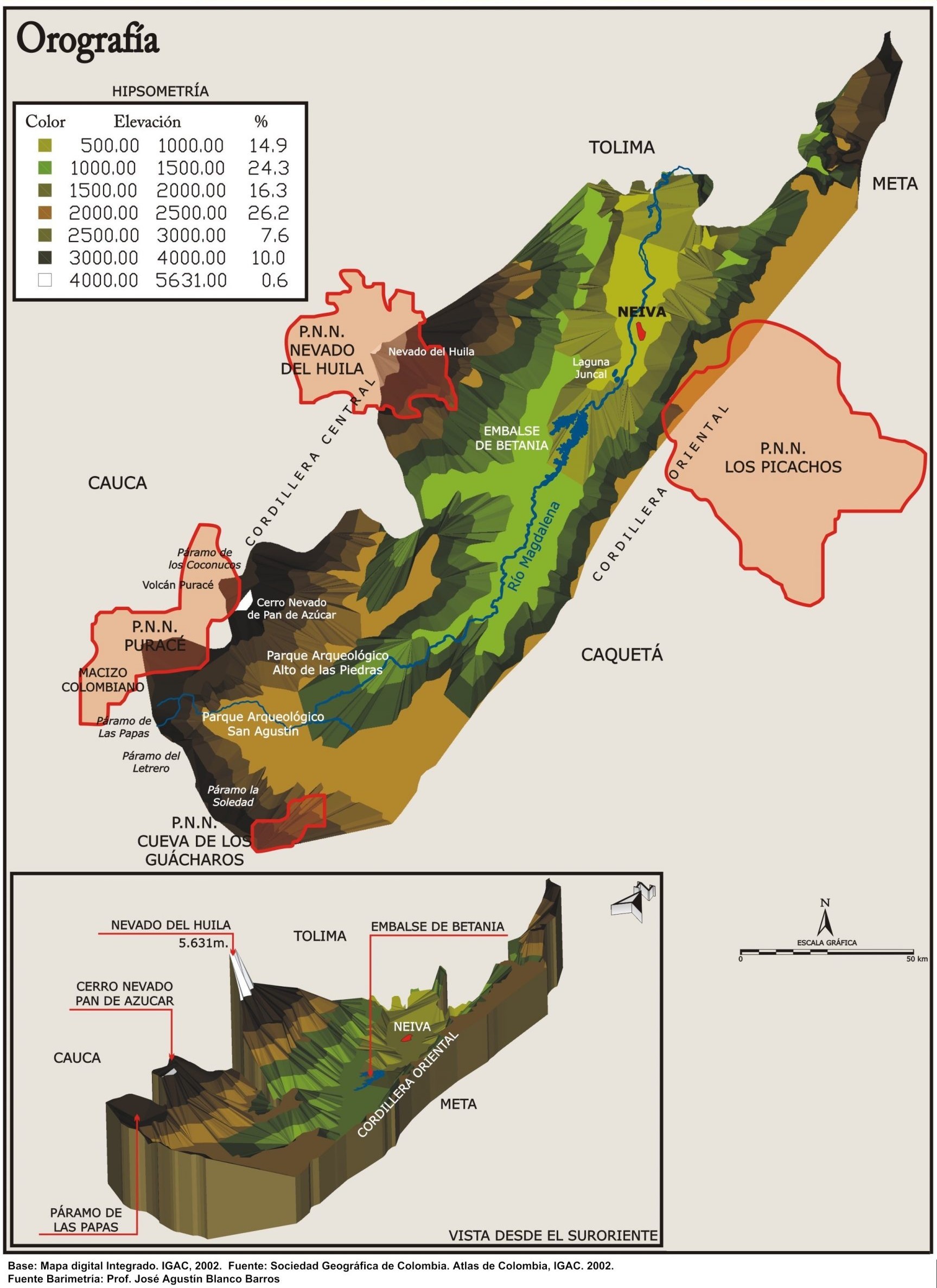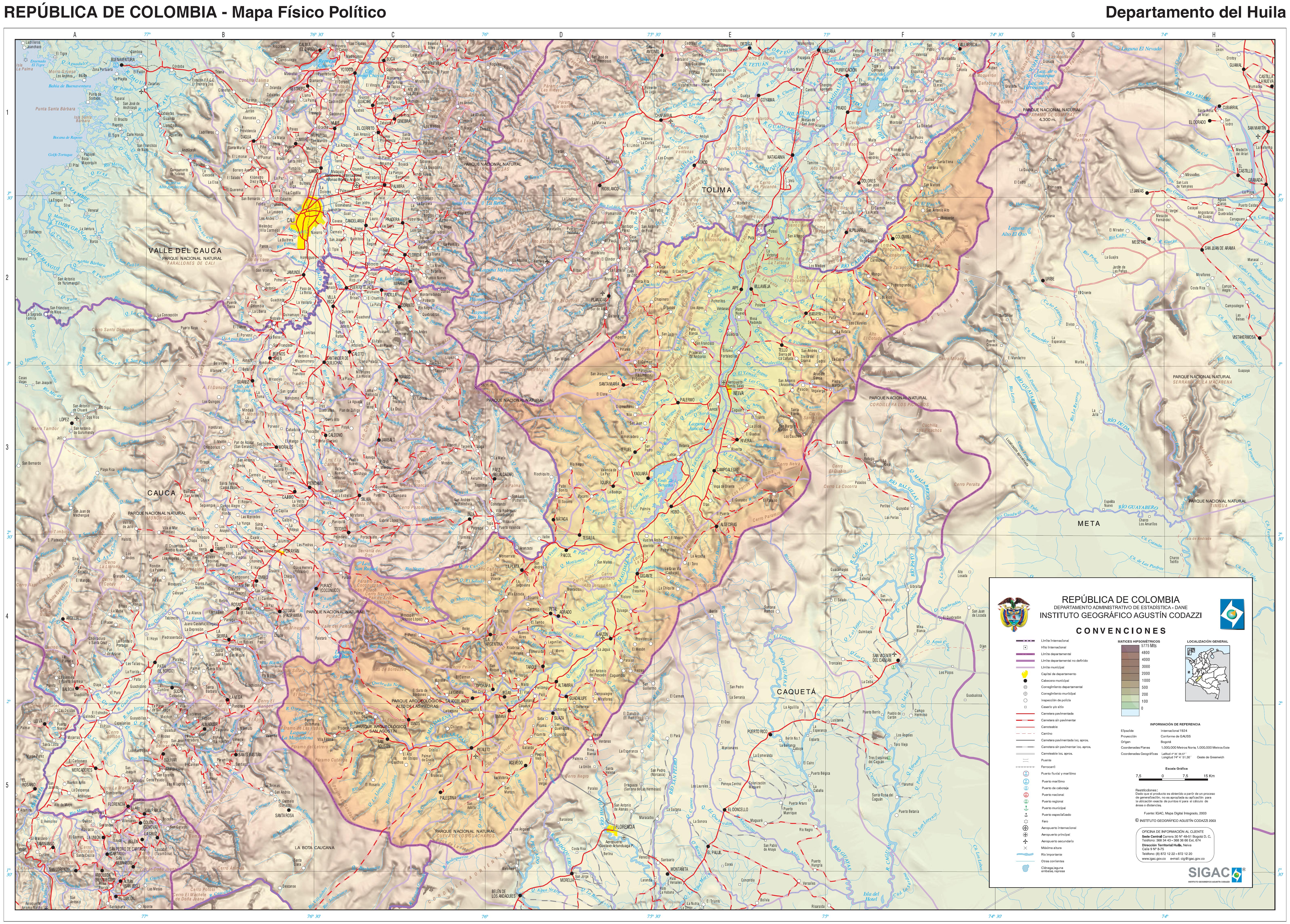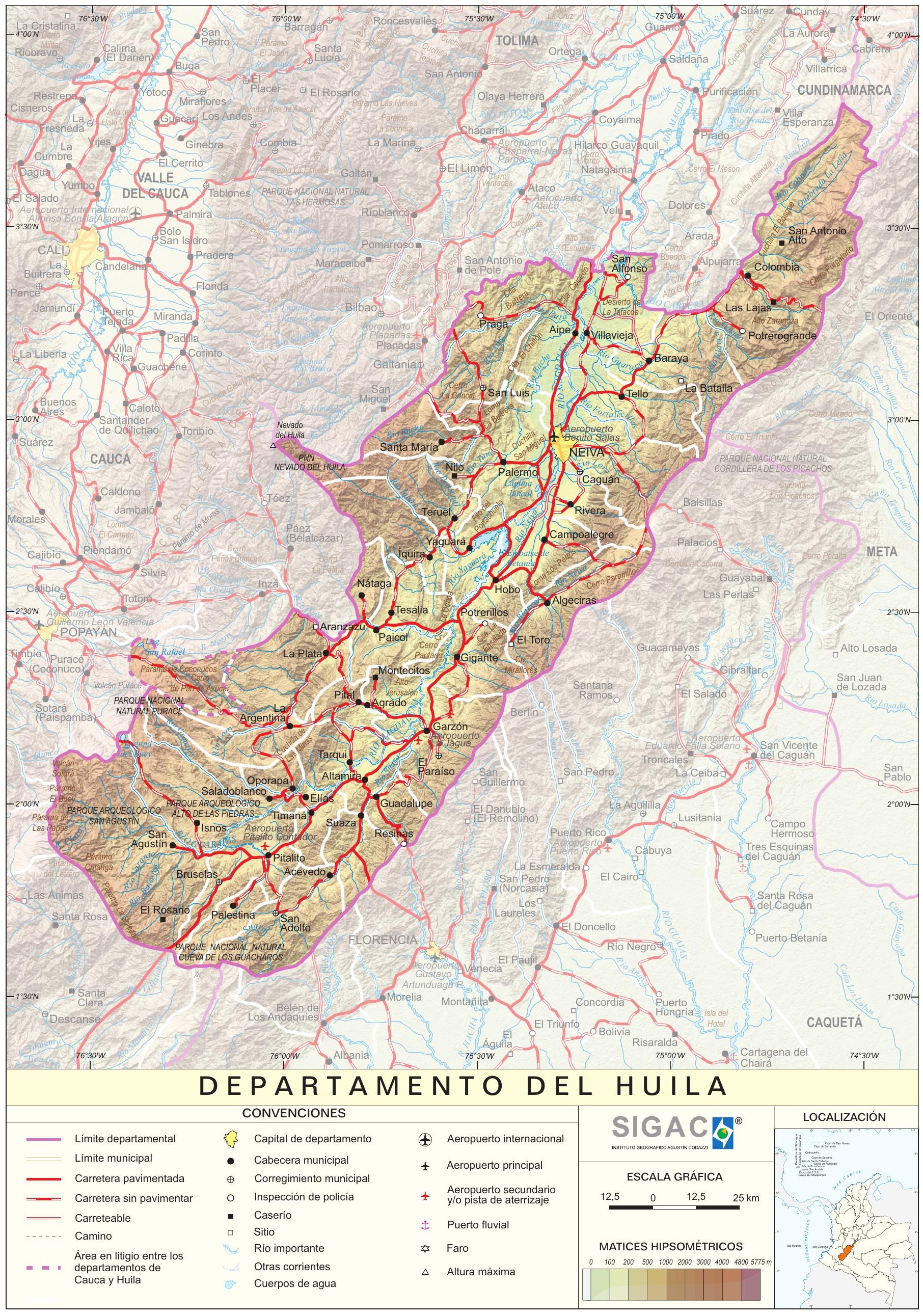 Otros documentos de interés geográfico : « Mapa físico del departamento del Huila »