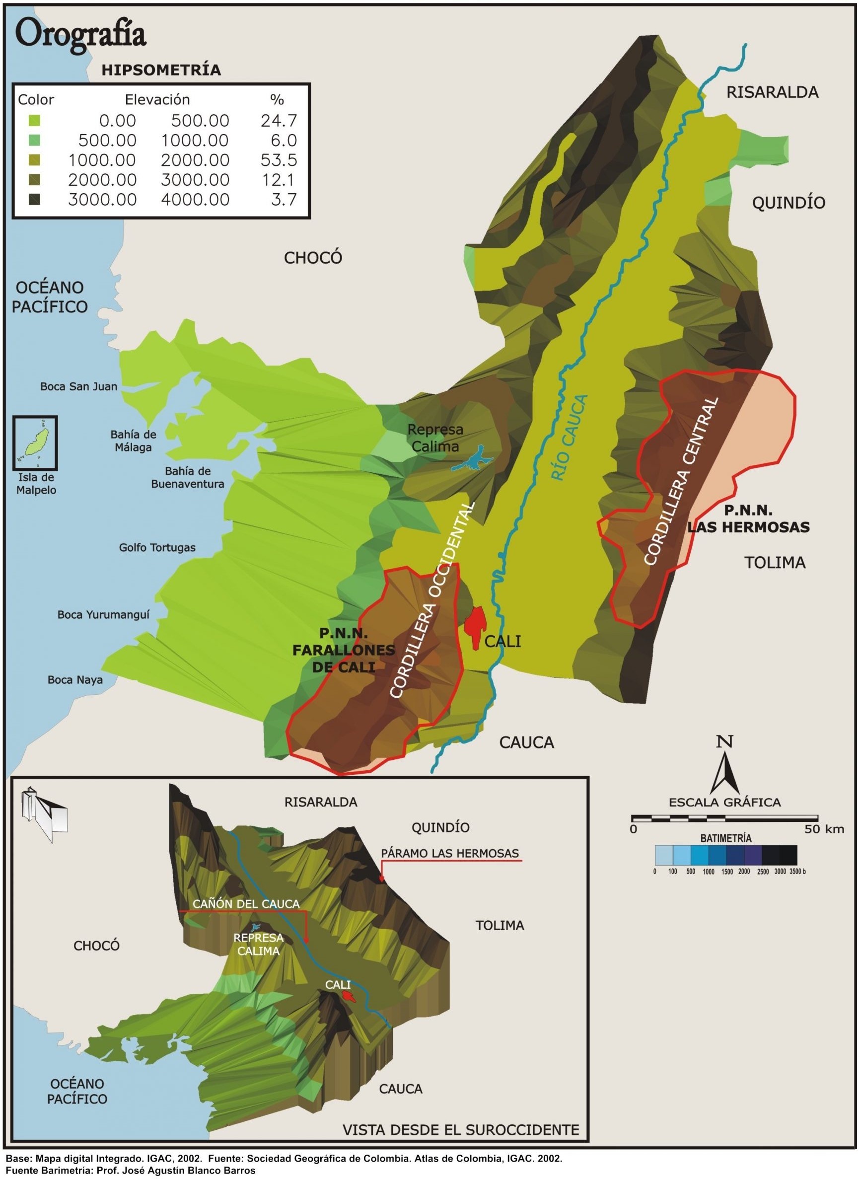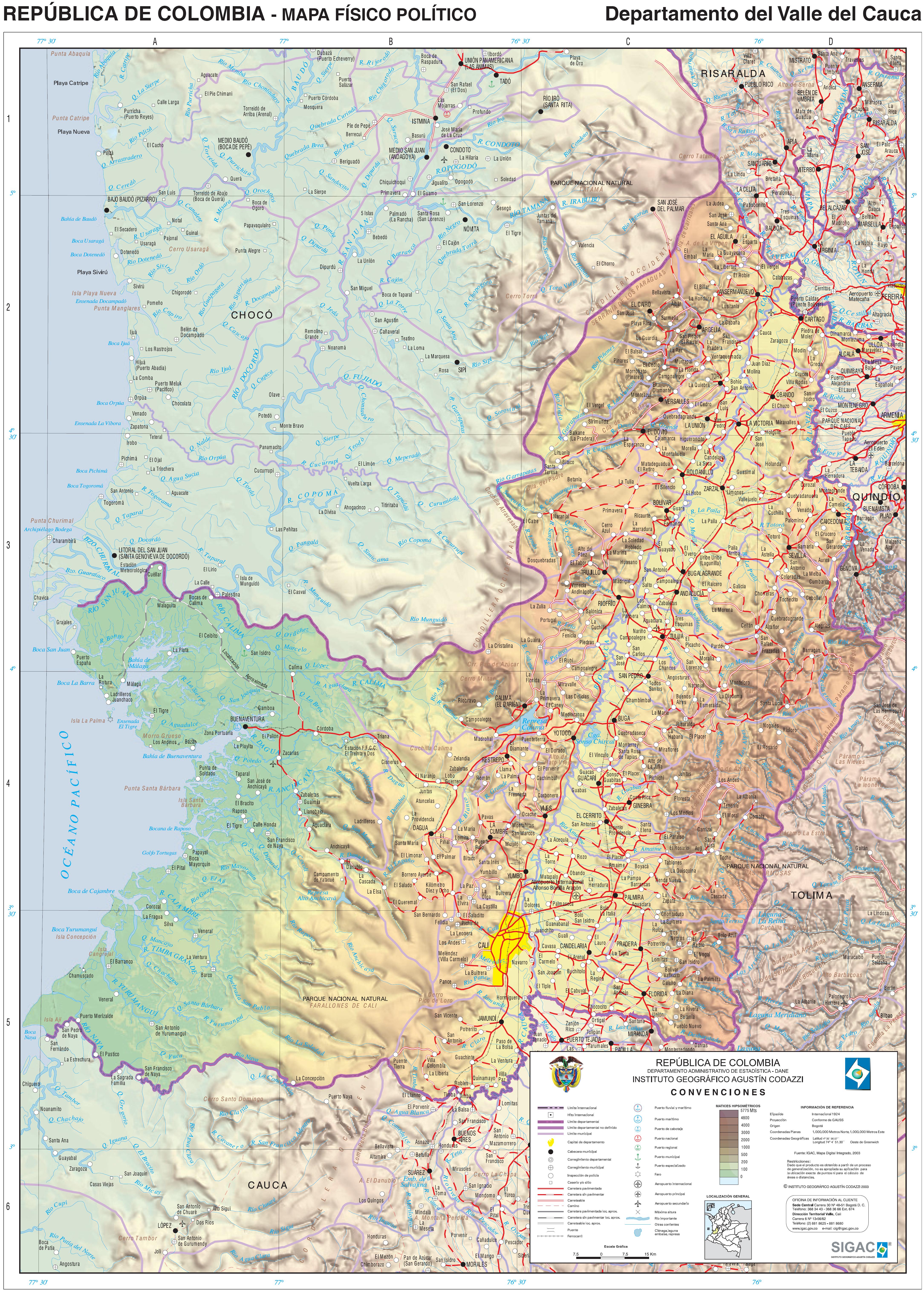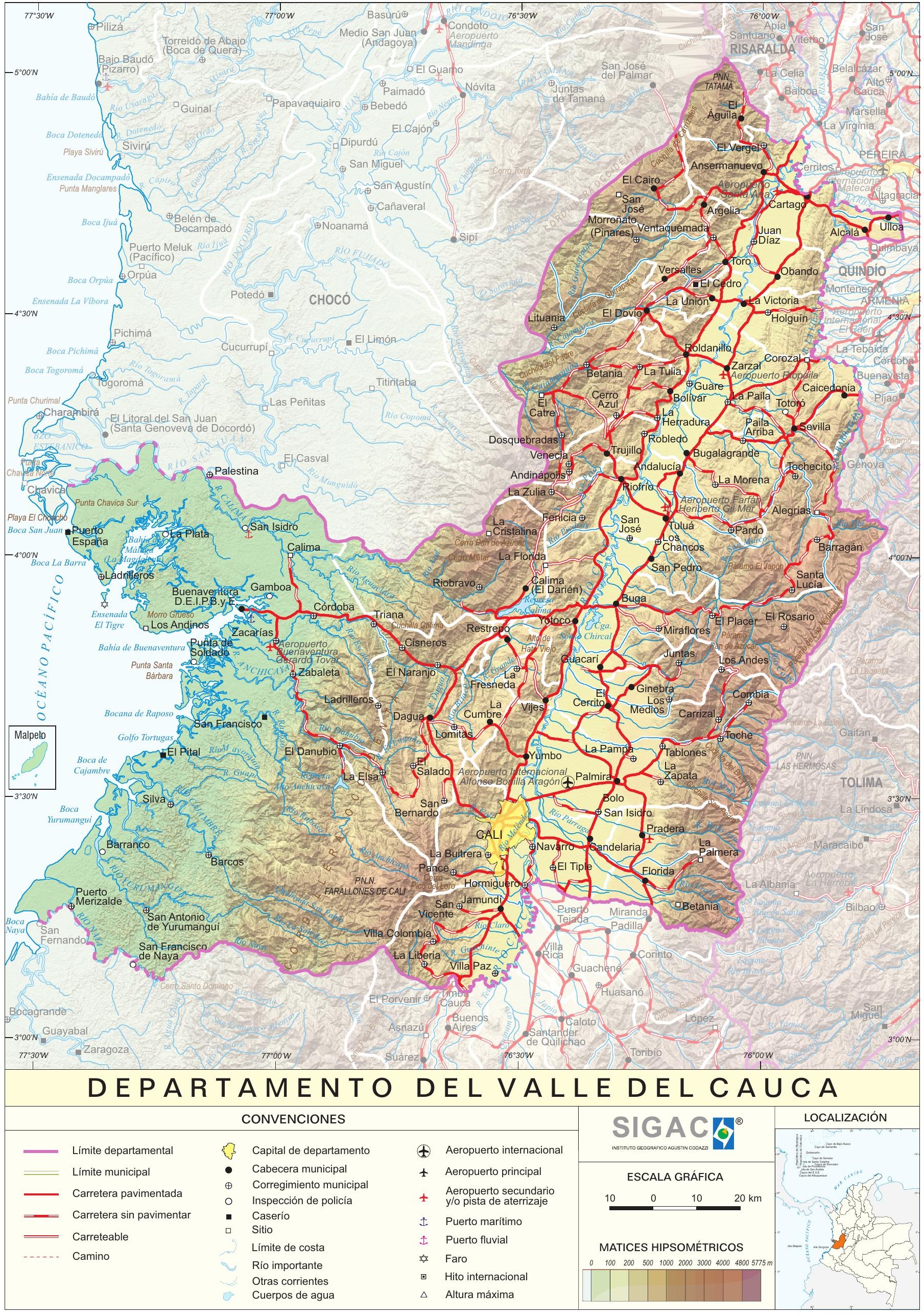 Otros documentos de interés geográfico : « Mapa físico del departamento del Valle del Cauca »