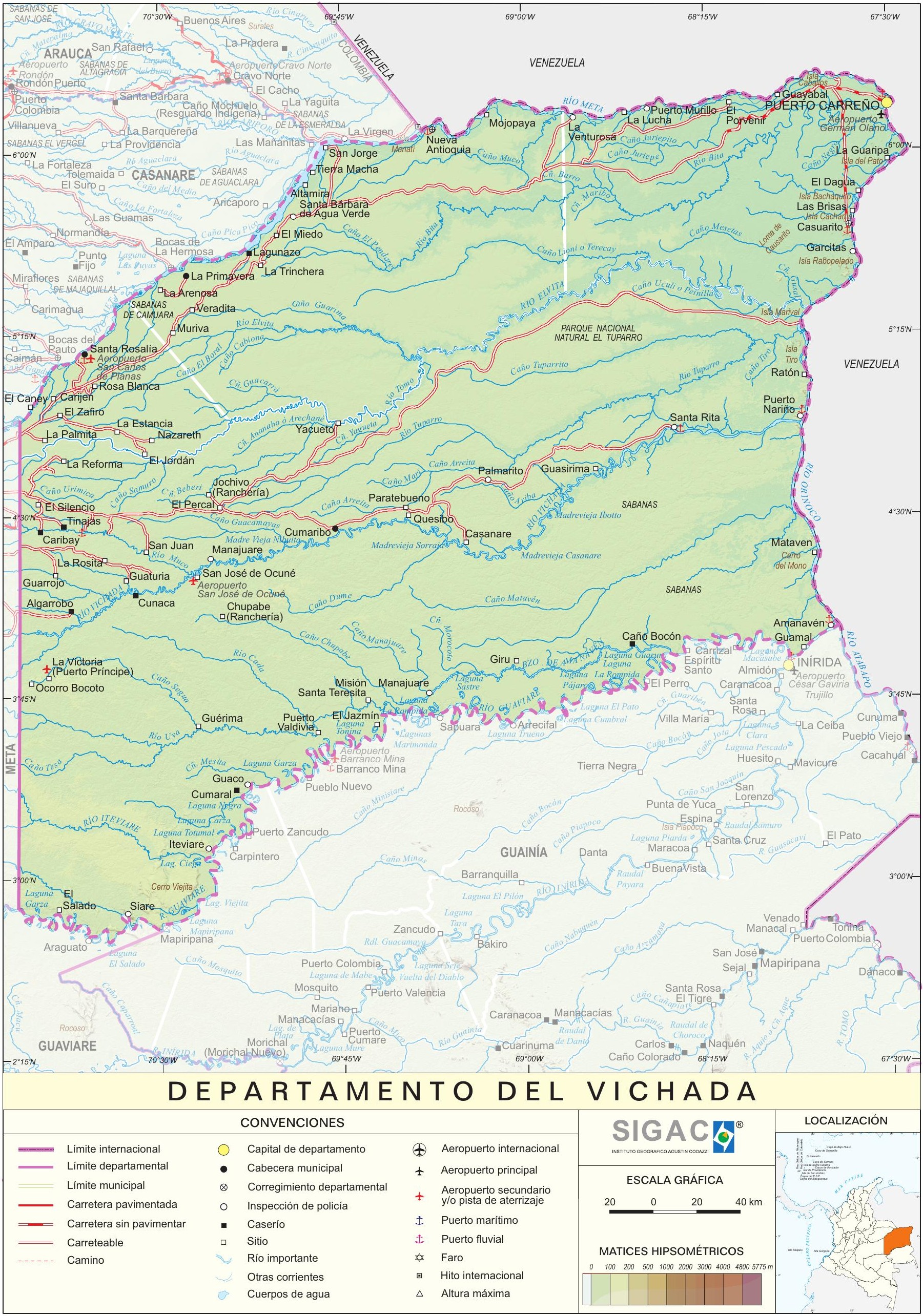 Otros documentos de interés geográfico : « Mapa físico del departamento del Vichada »