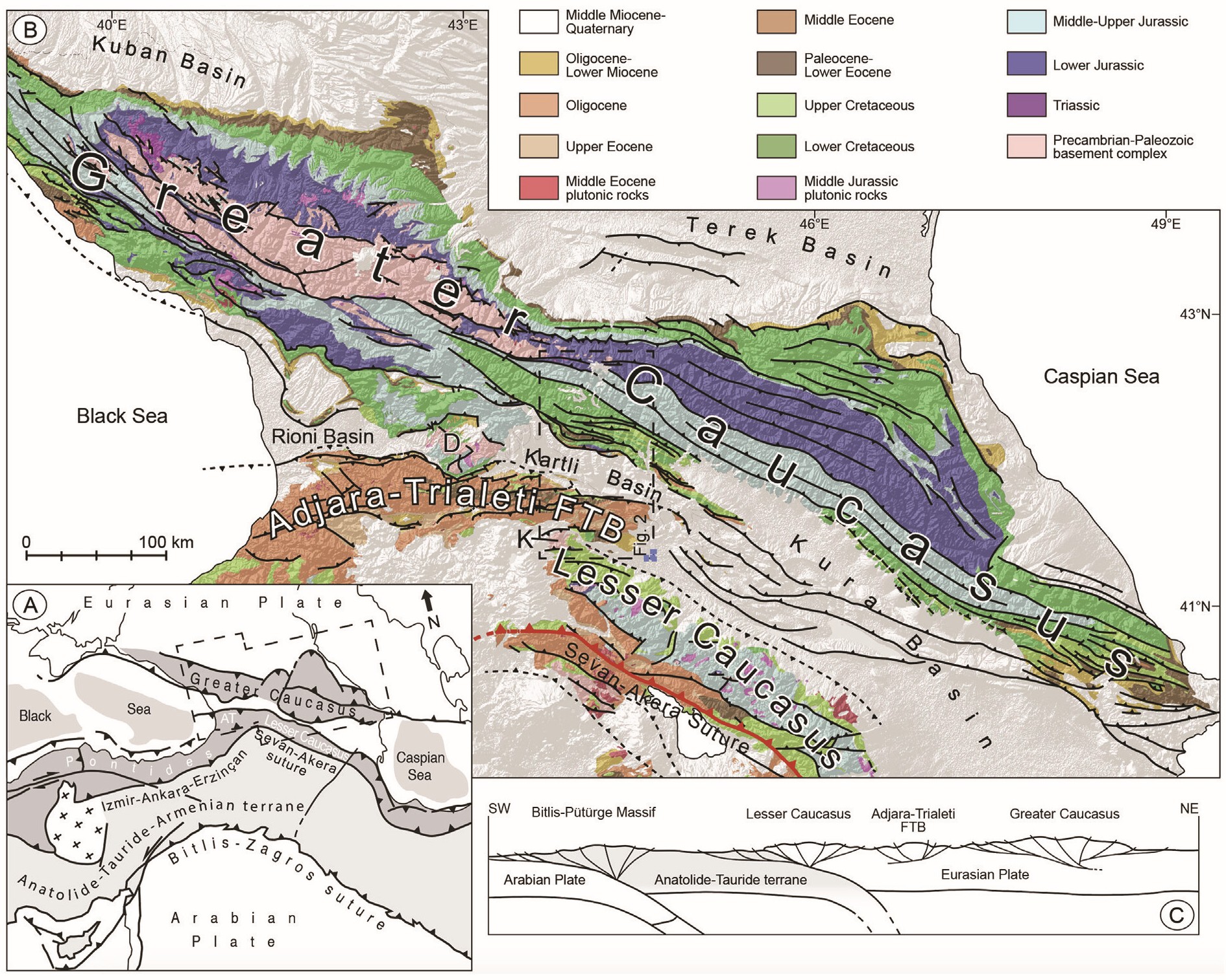 El Cáucaso es un orógeno alpino activo, con una geología marcada por la colisión de placas, una gran diversidad de rocas (sedimentarias, metamórficas y volcánicas), presencia de recursos minerales y energéticos, y una intensa actividad sísmica y volcánica.