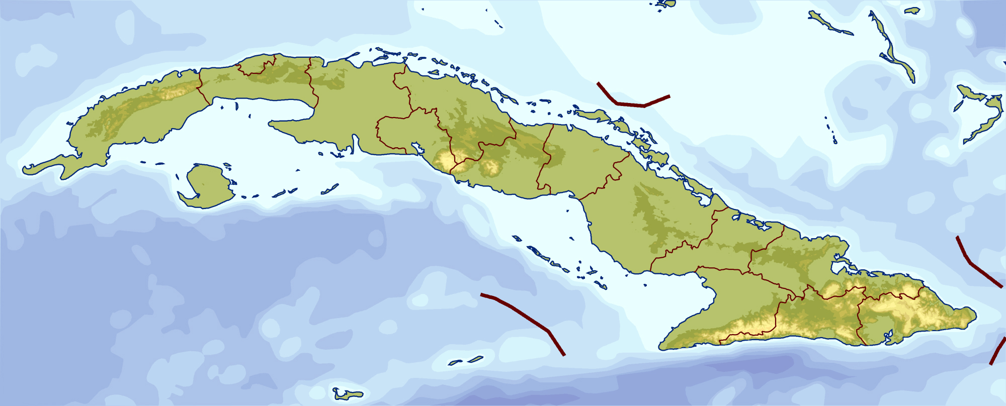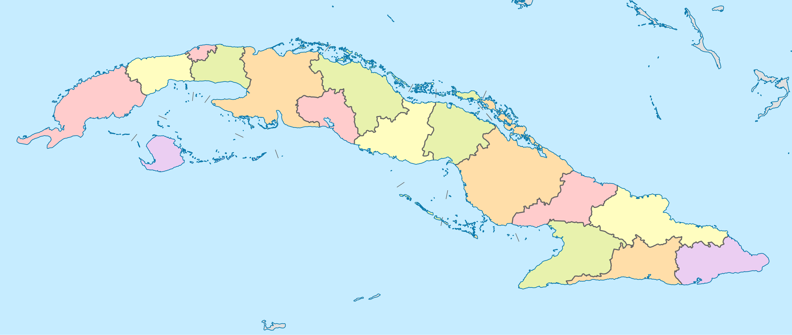 Estos mapas mudos de Cuba representan la cartografía del país, pero sin ningún tipo de etiquetado. Estos mapas en blanco se pueden utilizar, por ejemplo, en el ámbito de la educación. Pueden servir como base para muchos mapas más elaborados.