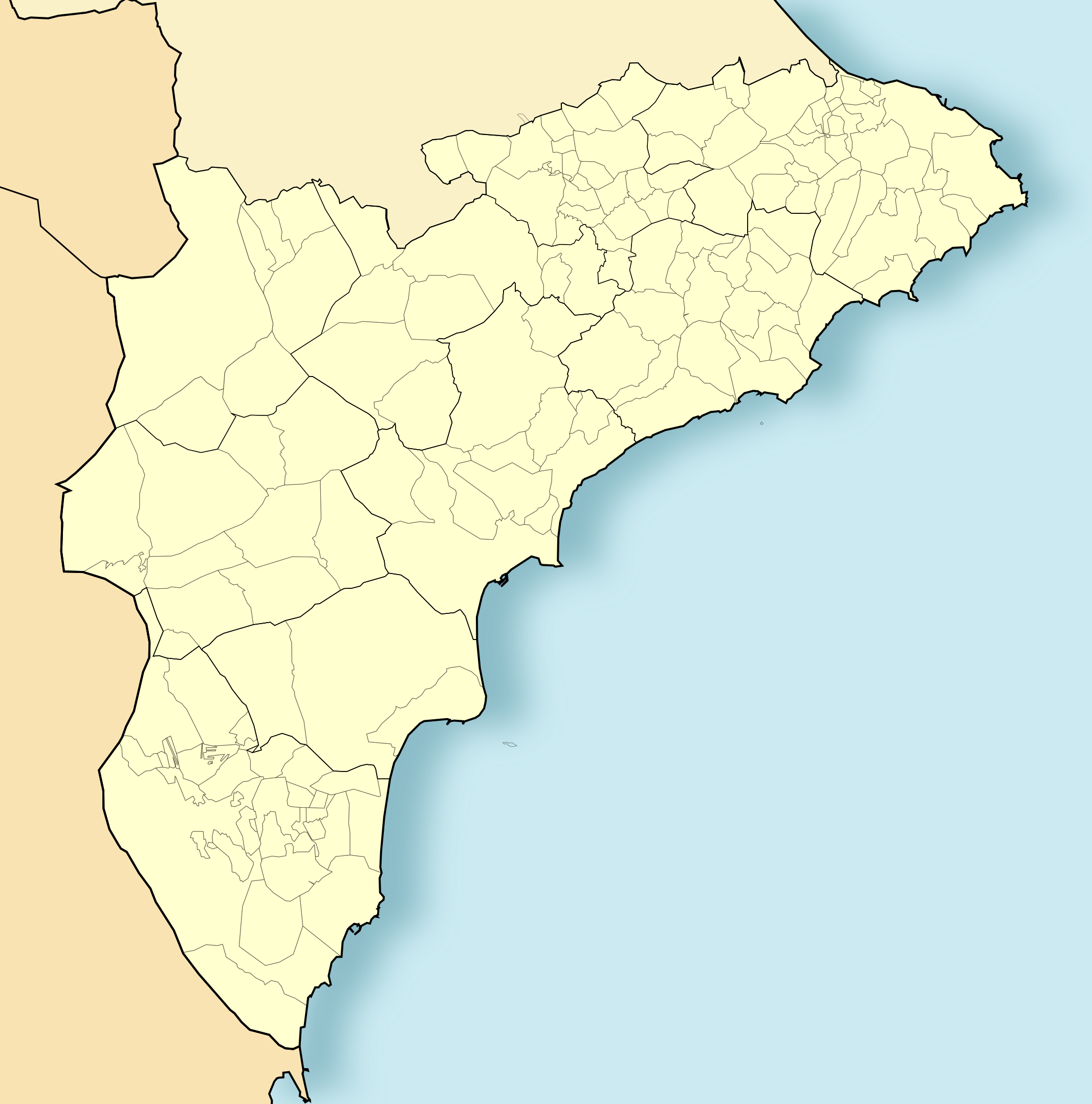 Estos mapas mudos de Alicante representan la cartografía de la provincia, pero sin ningún tipo de etiquetado. Estos mapas en blanco se pueden utilizar, por ejemplo, en el ámbito de la educación. Pueden servir como base para muchos mapas más elaborados.