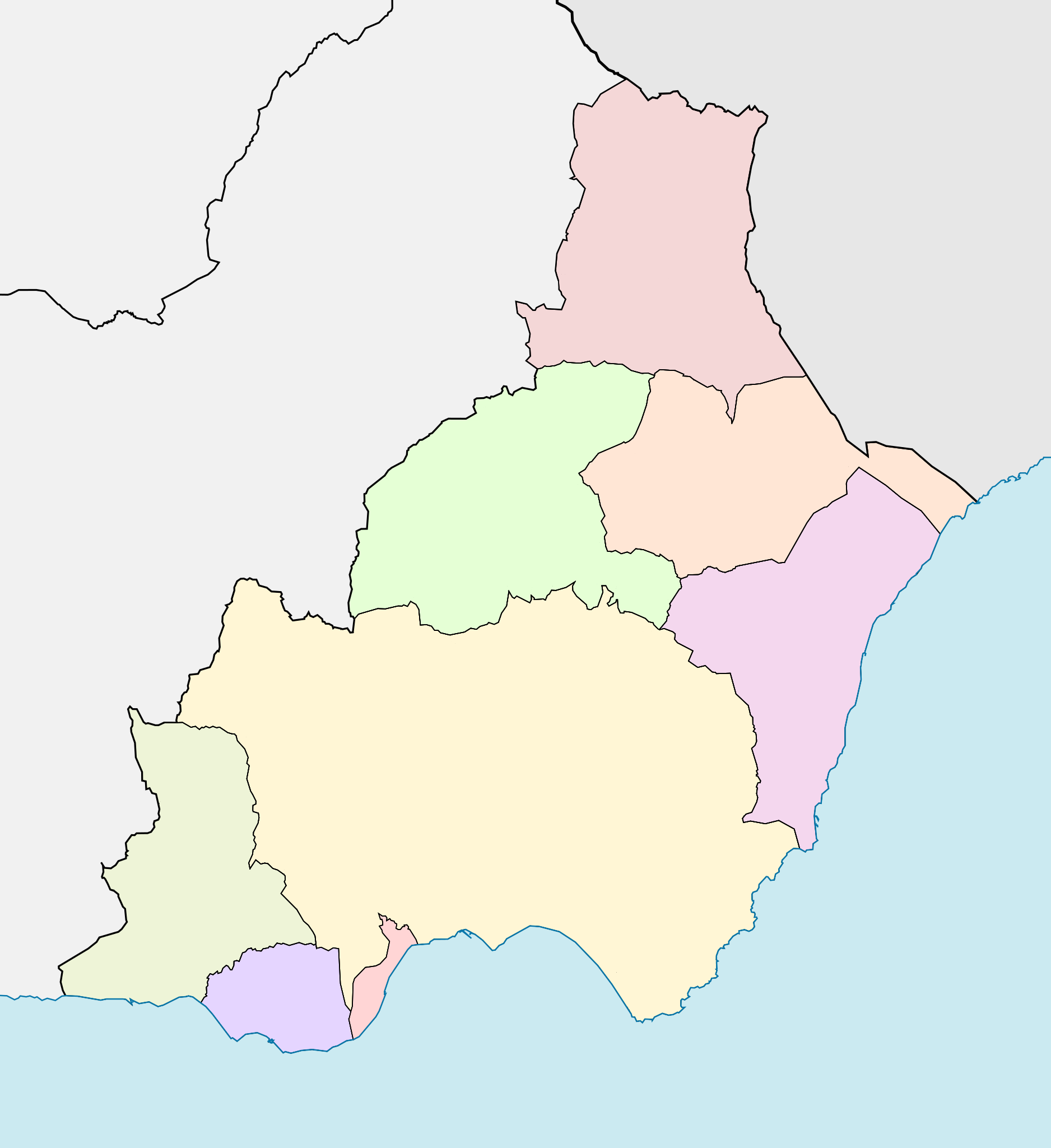 Estos mapas mudos de Almería representan la cartografía de la provincia, pero sin ningún tipo de etiquetado. Estos mapas en blanco se pueden utilizar, por ejemplo, en el ámbito de la educación. Pueden servir como base para muchos mapas más elaborados.