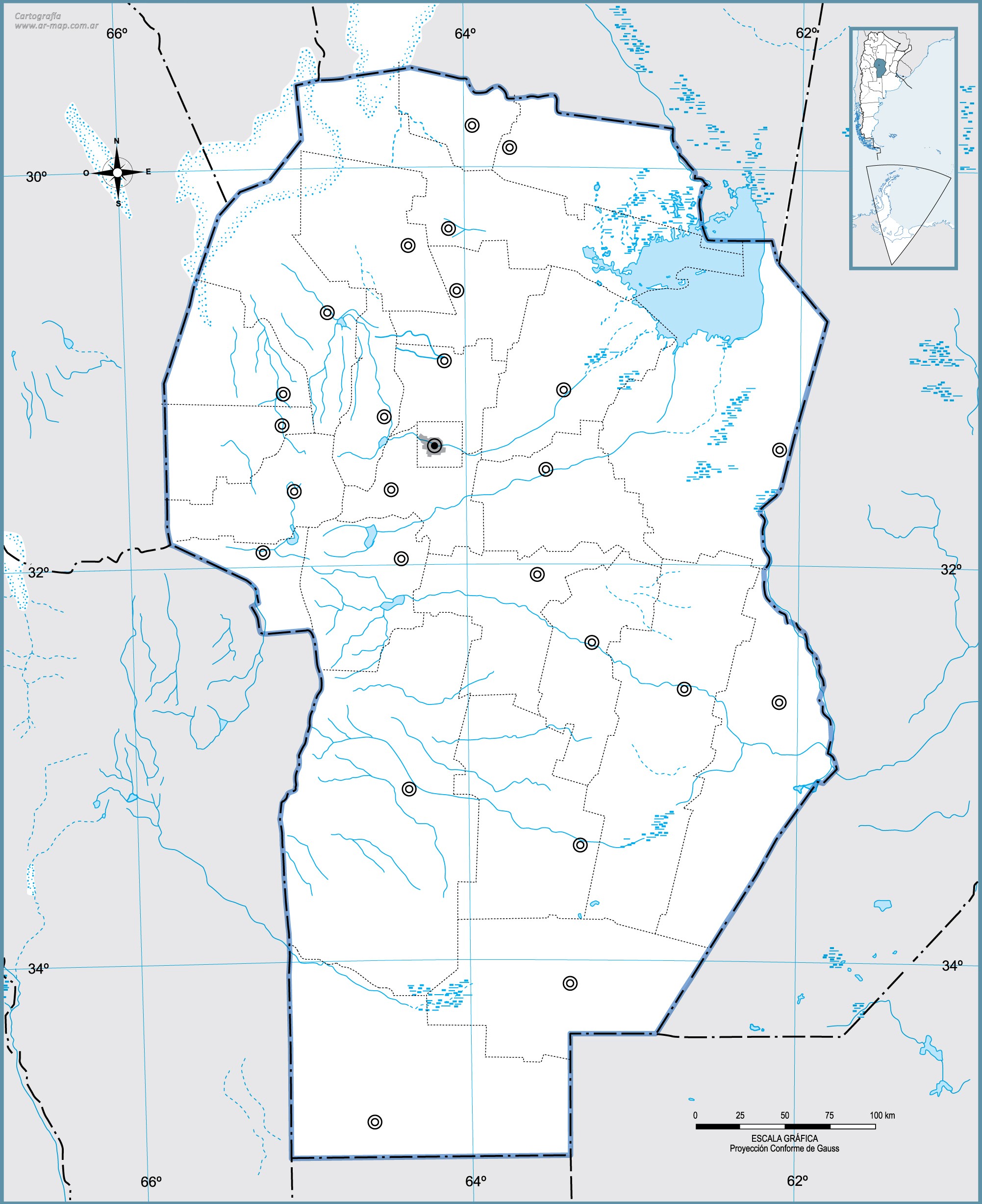 Estos mapas mudos de la provincia de Córdoba representan la cartografía de la provincia, pero sin ningún tipo de etiquetado. Estos mapas en blanco se pueden utilizar, por ejemplo, en el ámbito de la educación. Pueden servir como base para muchos mapas más elaborados.