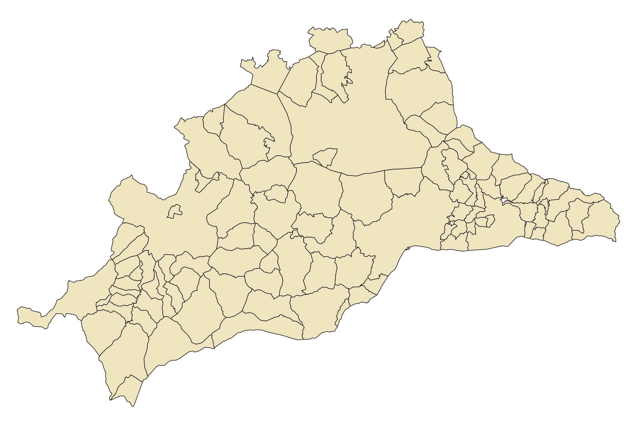 Estos mapas mudos de Málaga representan la cartografía de la provincia, pero sin ningún tipo de etiquetado. Estos mapas en blanco se pueden utilizar, por ejemplo, en el ámbito de la educación. Pueden servir como base para muchos mapas más elaborados.